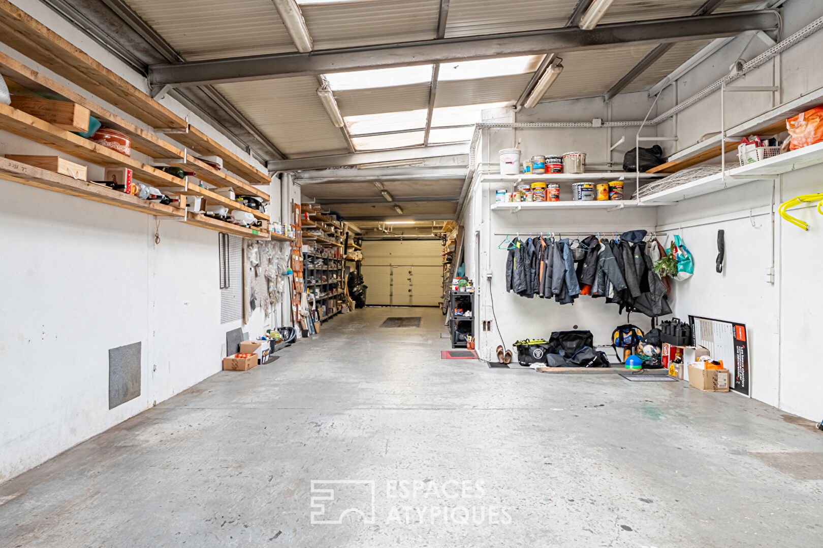 A Montesson, cette maison d'architecte agrandie en 2004 par Ivan Oddos développe une surface habitable de 257 m² et 344 m² au sol, implantée sur une parcelle de 554 m². Mariant volumes contemporains et fonctionnalité familiale, elle s'ouvre sur un jardin paysagé exposé avec soin, ainsi qu'un ensemble de surfaces annexes permettant une activité professionnelle : boutique, bureau et vaste atelier de 160 m² au sol. L'entrée distribue un rez-de-chaussée pensé pour la vie quotidienne, avec un WC indépendant, une cuisine aménagée et équipée, ainsi qu'un séjour bénéficiant d'une hauteur sous plafond de 4 mètres. Une cheminée accompagne cet espace lumineux prolongé par une véranda ouverte sur le jardin, offrant une continuité intérieure/extérieure très agréable. A l'étage, l'espace nuit accueille cinq chambres dotées d'un parquet massif, deux salles de bains comprenant baignoire, douche et WC, ainsi qu'un dressing. Le dernier niveau propose des combles aménagés totalisant 131 m² au sol, offrant un potentiel de transformation apprécié. Un sous-sol avec rangements et chaufferie complète l'ensemble, tout comme un garage. A l'extérieur, le jardin paysagé sans vis-à-vis avec un poulailler et une serre constituent un véritable atout. L'arrosage possible grâce à un puits renforce la praticité de cet espace parfaitement entretenu. Les abords immédiats disposent également d'une boutique avec vitrine sur rue, d'un bureau et d'un grand hangar/atelier permettant d'exercer une activité professionnelle ou artisanale directement depuis la propriété. Le quartier bénéficie de la proximité des commerces, des écoles et de deux lignes de bus reliant rapidement les gares RER A de Le Vésinet/Le Pecq et Houilles-Carrières. Ce bien rare, conjuguant architecture, volumes, surfaces annexes et jardin préservé, se distingue par son caractère atypique et son potentiel d'usages multiples. A 2 min à pied arrêt bus : Ligne A vers gare RER A Le Vésinet/Le Pecq (21 min de trajet) Ligne B vers Gare SNCF / RER A Houilles -Carrières (14 min de trajet ) DPE : Classe Énergie D / Classe Climat C. Prix moyens des énergies indexés au 1 er janvier 2021(abonnements compris): entre 2860 euros et 3950 euros. Contact : Oliver 06 34 44 46 09 RSAC n°949 267 140 - Versailles Oliver HECK (EI) Agent Commercial - Numéro RSAC : 949 267 140 - Versailles.