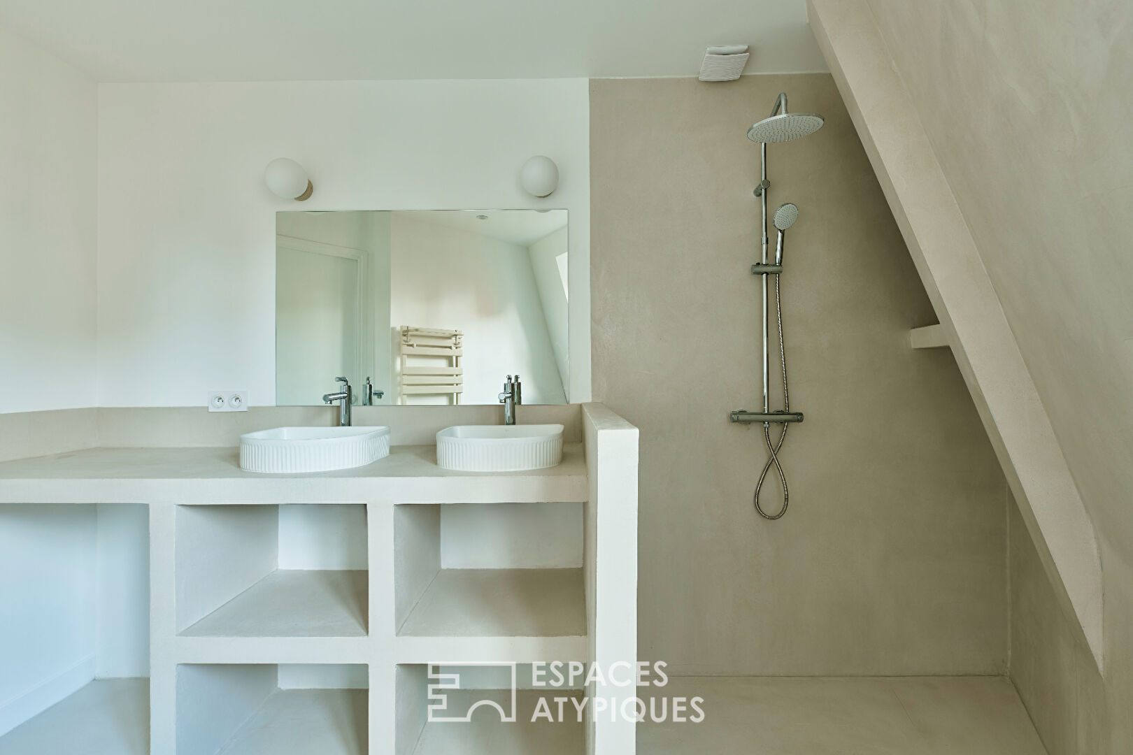 A l'abri de l'effervescence citadine, dans le quartier recherché de Bel-Air, prisé pour ses rues paisibles, la proximité immédiate du Parc de Vincennes, de la Coulée Verte et de la Petite Ceinture, cet appartement rare se déploie au dernier étage d'un immeuble de 1870. Accessible par un escalier privatif en bois, l'appartement développe 52,54 m² Carrez (54,48 m² au sol) au 4ème et dernier étage. Dès l'entrée, un espace avec un WC indépendant qui dévoile progressivement la beauté des volumes de la pièce de vie. Le séjour d'une surface 25,17m² offre une triple exposition avec son oeil-de-boeuf, et une vue apaisante sur la petite ceinture. Dans le prolongement, la cuisine américaine sur mesure, réalisée en bois massif, s'intègre avec finesse au séjour. Elle allie lignes épurées, fonctionnalités optimales et esprit naturel, renforçant l'identité de l'appartement. La chambre, d'une surface généreuse de 16,37 m² propose de grands rangements sur mesure composant un véritable dressing intégré et exploitant intelligemment chaque volume sous pentes. La salle d'eau, pensée comme une pièce de caractère, se distingue par une réalisation intégrale en béton ciré haut de gamme Marius Aurenti, du sol aux murs. Elle accueille une douche à l'italienne, une niche intégrée et des finitions minérales raffinées. Les matériaux, les choix esthétiques et la qualité d'exécution témoignent d'une rénovation complète, maîtrisée et soignée, permettant une prise de possession immédiate sans aucun travaux. Une cave située en sous-sol complète les prestations de ce lieu rare. Bien soumis au statut de la copropriété. Metro : Porte de Vincennes et Picpus CLASSE ENERGIE : C / CLASSE CLIMAT : B Montant moyen estimé des dépenses annuelles d'énergie pour un usage standard, établi à partir des prix de l'énergie de l'année 2023 : entre 910 euros et 1280 euros par an Les informations sur les risques auxquels ce bien est exposés sont disponibles sur le site Géorgiques : https://www.géoriques.gouv.fr Contact : Thomas 07 67 40 13 65 RSAC : 893 991 273 Paris Copropriété de 32 lots - dont 13 lots habitation. Charges annuelles : 1978 euros. Thomas Lelong (EI) Agent Commercial - Numéro RSAC : 893991273 - Paris.