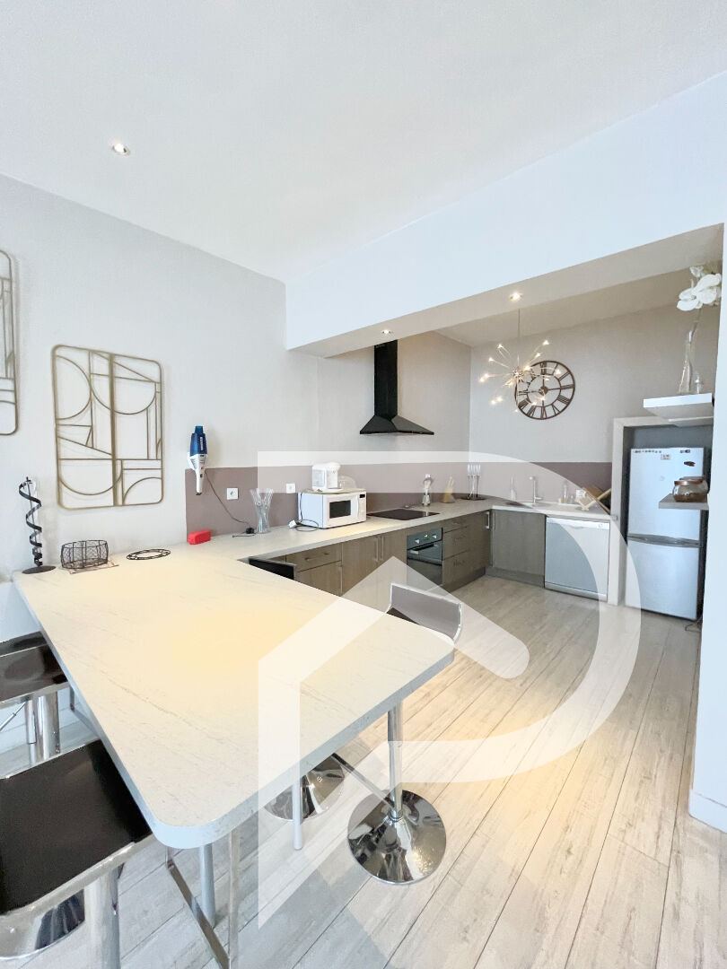 Appartement loué meublé Nous vous proposons à la location cet appartement 2 pièces spacieux de 83m2, il est situé au 1er étage d'un petit immeuble à coté du centre ville. Il se compose d'une entrée avec placards de rangement, un grand salon séjour, une cuisine entièrement équipée, une chambre avec placard de rangements, une salle de bain comprenant une douche ainsi qu'une baignoire et un Wc séparé. Chauffage individuel électrique, climatisation réversible Pour plus de renseignements veuillez nous contacter au 0664983070