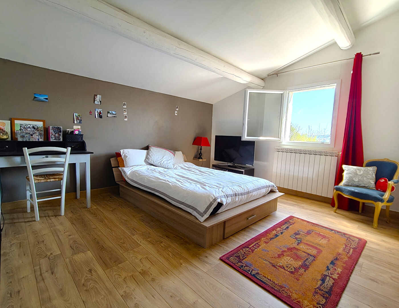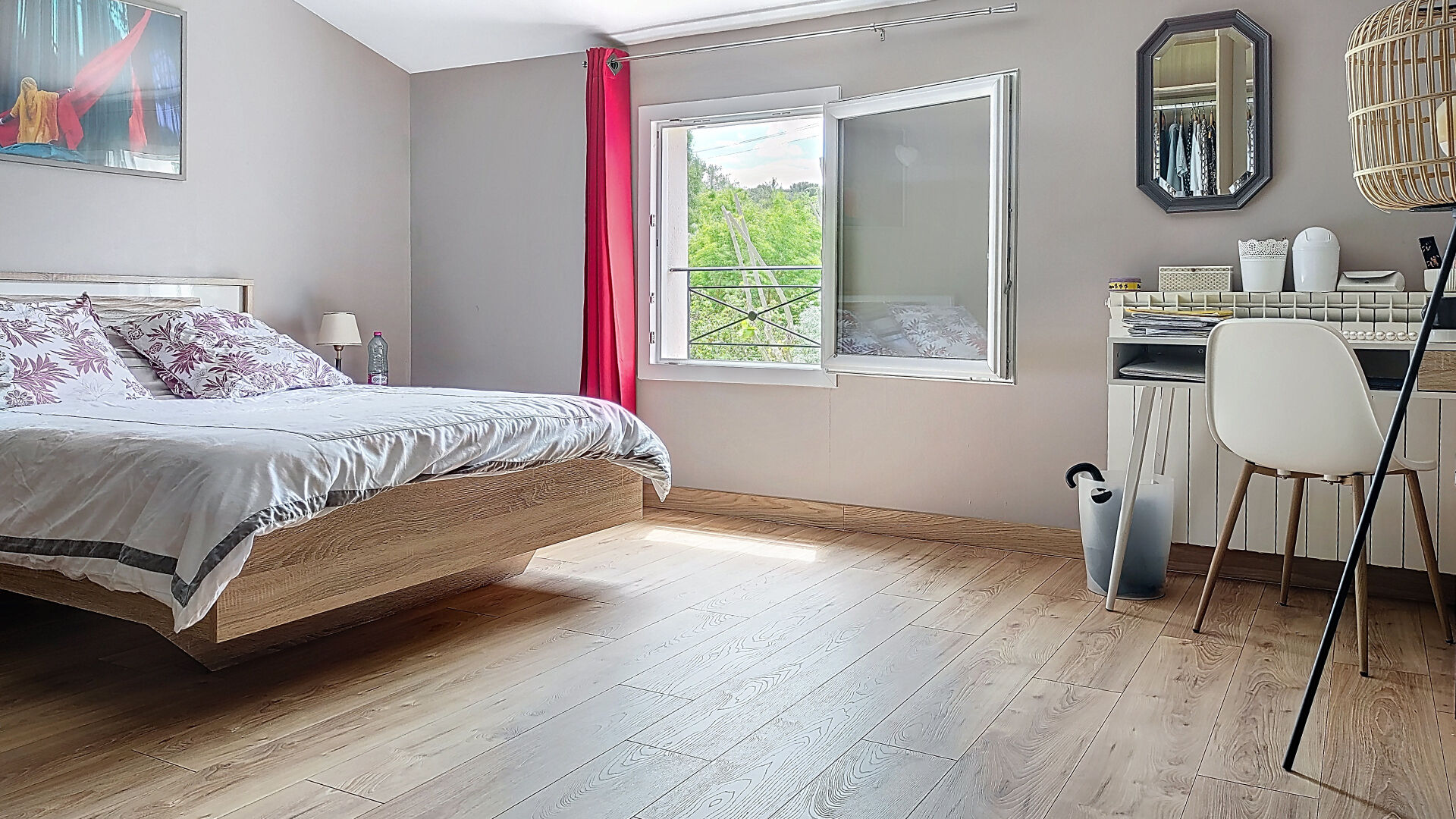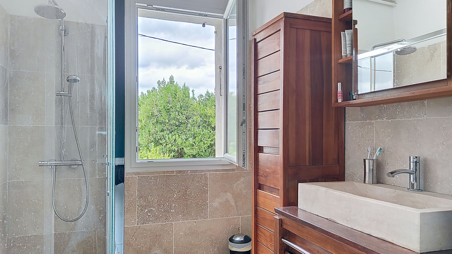 AIXTY vous propose de découvrir sur le secteur de Cabriès-Calas, cette magnifique maison familiale de 200m2, nichée au coeur de la campagne sur une parcelle arborée de 3900m2. Située au calme absolu, elle offre une qualité de vie rare avec une vue imprenable sur la Sainte Victoire et le village de Cabriès. A seulement 15 min d'Aix-en-Provence, 20 min de Marseille, gare TGV à 10 min et aéroport à 15 min, cette maison conjugue tranquillité et accessibilité. Idéale pour une famille, la maison propose 2 salles d'eau (une par niveau), 5 chambres avec rangements, dont 3 de plain-pied, parfaites pour un confort de vie optimal et pour préserver l'intimité de chacun. Le vaste salon, baigné de lumière grâce à ses multiples ouvertures, se démarque par sa hauteur sous plafond, offrant une agréable sensation d'espace et de volume. Un grand espace surplombe l'espace de vie, idéal pour aménager un espace home office ou un coin détente avec une vue imprenable sur la Sainte victoire. La cuisine indépendante, récemment rénovée allie modernité et charme grâce à sa verrière qui apporte luminosité et cachet, elle s'ouvre sur une terrasse à l'ombre des platanes, parfaite pour recevoir amis et famille. A l'extérieur, le terrain plat et verdoyant est arboré. Vous y trouverez une belle piscine récente avec un pool house aménagé et équipé. Un garage communiquant avec la maison et une vaste cave viennent compléter les prestations. Eau du canal, fosse septique aux normes. Coût annuel eau (jardin et consommation) 750 euros. Coût annuel chauffage et eau chaude 1700 euros Si vous cherchez un cadre de vie privilégié au coeur de la nature et proche des commodités, cette propriété est faite pour vous. Bien proposé au prix FAI de 1 250 000 euros (frais d'agence inclus) « Les informations sur les risques auxquels ce bien est exposé sont disponibles sur le site Géorisques : www.georisques.gouv.fr » DPE en D et GES en D RCS Aix 814 576 997 00021 Bénéficiez d'un accès complet à toutes les photos et un descriptif détaillé ou encore informations sur le quartier directement sur notre site internet www.aixty.com AIXTY Immobilier est l'agence N°1 sur AIX-EN-PROVENCE depuis 2019 en terme de reconnaissance client et de vente réalisées, n'hésitez pas à nous contacter pour votre projet ou pour l'expertise de votre bien immobilier.