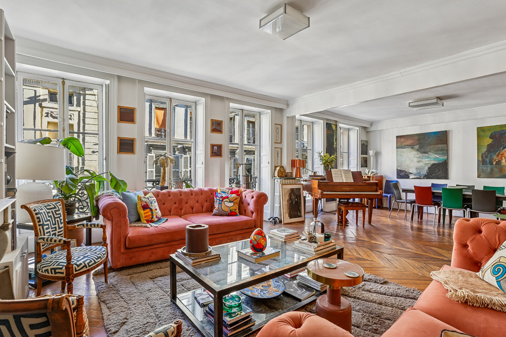 Entre les quartiers Saint-Georges et South Pigalle, découvrez ce charmant bien d'une superficie de 104m2 par ascenseur d'un immeuble édifié en 1850 et tout juste ravalé. Il se compose d'une entrée, d'une cuisine indépendante équipée, d'un double-séjour avec 5 fenêtres, de trois grandes chambres dont deux au calme absolu sur cour, d'une salle de bains et de toilettes invités. On y retrouve tout le charme de l'ancien avec notamment le parquet en point de Hongrie, les moulures et une cheminée fonctionnelle dans le séjour. Face à un immeuble de seulement deux étages, ce bien capte toute la lumière grâce à ses nombreuses fenêtres. Sectorisation Chaptal - Condorcet Un local vélo est disponible dans l'immeuble et une cave complète cette offre. Copropriété de 15 lots - dont 13 lots habitation. Charges annuelles : 3480 euros.