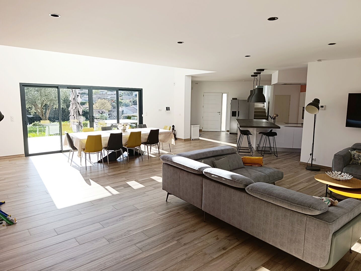 Sur les hauteurs de la ville, dans un quartier résidentiel recherché, cette propriété d'exception de 199 m² offre un cadre de vie privilégié sur un magnifique terrain de 1 130 m². Dès l'entrée, la maison offre de beaux volumes avec une pièce de vie d'environ 100 m², lumineuse et ouverte. Cet espace comprend une cuisine contemporaine entièrement aménagée et equipée ouverte sur le salon/salle à manger. Au même niveau, vous trouverez également une suite avec un accès direct à la terrasse. A l'étage, se trouvent quatre chambres, dont une seconde suite avec balcon, ainsi qu'une salle de bains et une buanderie. A l'extérieur, les prestations se prolongent : une piscine à débordement offrant une vue panoramique imprenable, accompagnée d'un charmant pool house avec terrasse couverte et jacuzzi. Une propriété rare sur le marché, alliant élégance, modernité et prestations haut de gamme, à découvrir sans tarder. (5.00 % honoraires TTC à la charge de l'acquéreur.)