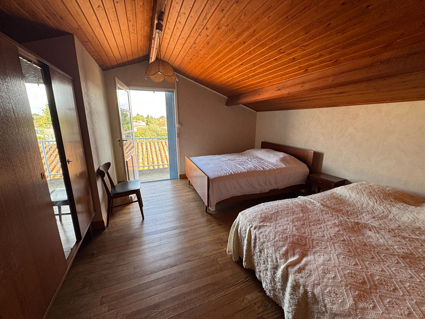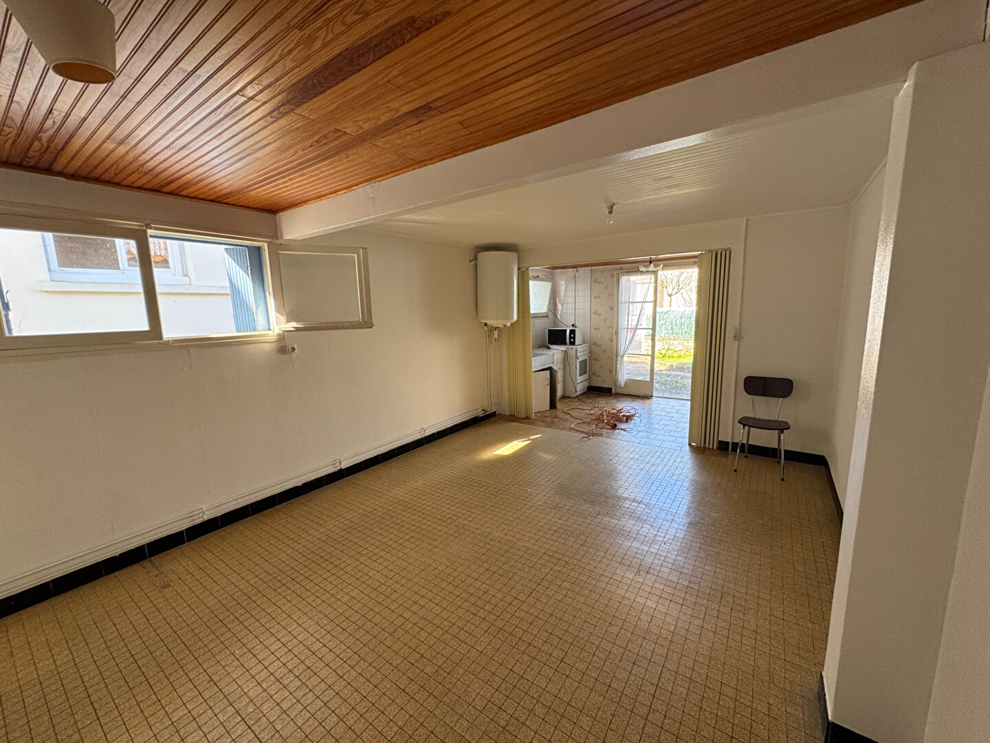 A proximité immédiate des commerces, maison des années 60 sur un terrain de 694 m2, offrant : Entrée, séjour de 35 m2 avec cheminée, cuisine, arrière cuisine, dégagement, deux chambres, salle de bains, WC, A l'étage (escalier extérieur) ; Deux belles chambres mansardées, sde avec WC, grenier. + Deux STUDIOS indépendant de 28 m2 et 20 m2 (non compris dans la surface habitable). + Garage indépendant de 44 m2 (4.97 % honoraires TTC à la charge de l'acquéreur.)