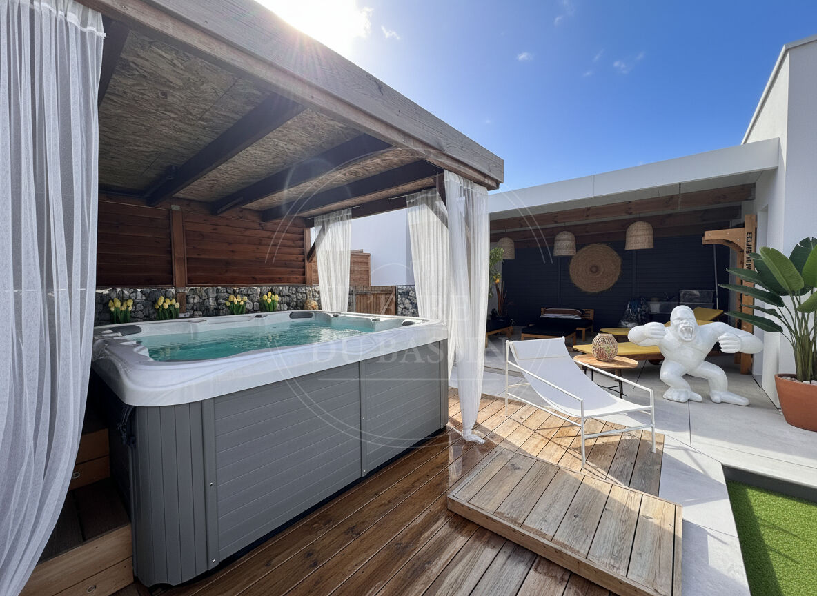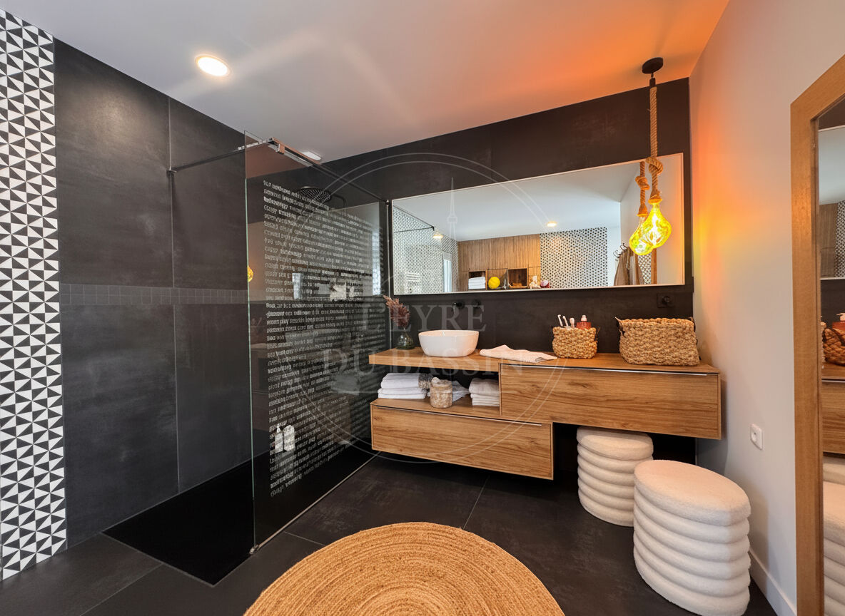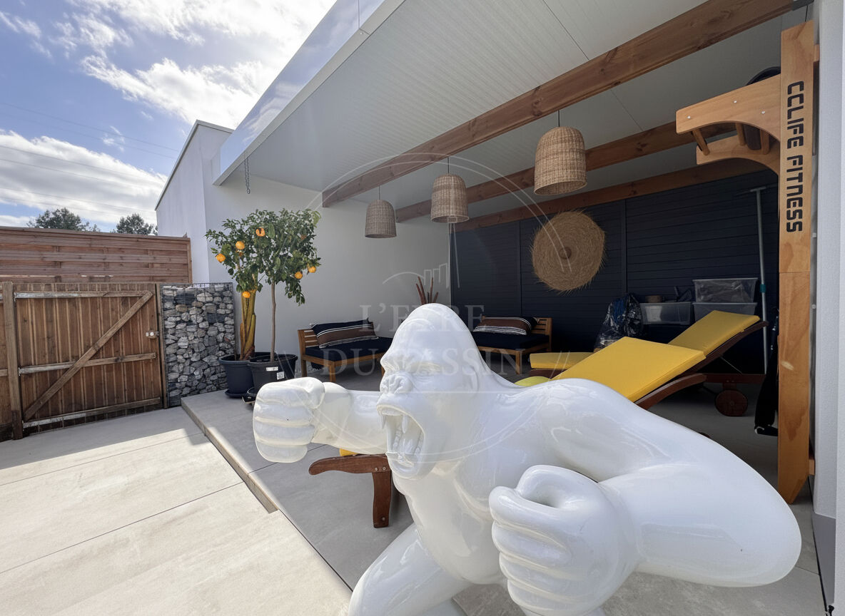 Maison contemporaine d'exception de 165 m² sur 1080 m² de parcelle. L'agence L'EYRE DU BASSIN vous invite à découvrir cette superbe maison contemporaine à l'architecture moderne et épurée, caractérisée par son élégant toit plat et ses volumes généreux. Idéalement située, la propriété bénéficie d'un environnement pratique et recherché : un centre commercial prisé ainsi que les écoles (de la maternelle au collège) sont accessibles à pied, tandis que le centre-ville se rejoint facilement à vélo. Dès l'entrée, vous serez séduits par une magnifique pièce de vie de plus de 80 m² réunissant l'entrée, le salon, la cuisine ouverte et un agréable séjour offrant une vue sur la piscine. Cet espace lumineux et convivial a été imaginé pour offrir un cadre de vie chaleureux et idéal pour recevoir. La partie nuit se compose de trois chambres confortables, dont une suite parentale avec salle de bain d'environ 13 m², offrant un véritable espace privatif. Une seconde salle d'eau, deux WC ainsi qu'un cellier / buanderie viennent compléter l'agencement pratique de la maison. A l'extérieur, tout a été conçu pour profiter pleinement des beaux jours : vous découvrirez une agréable piscine, un jacuzzi propice à la détente, une terrasse couverte, un boulodrome pour partager des moments conviviaux, ainsi qu'un coin détente avec hamac, véritable invitation au repos. Un carport permet également de stationner les véhicules à l'abri. Un garage de 34 m² et un container de stockage complètent ce bien. Cette propriété au style architectural contemporain, aux volumes généreux et aux espaces pensés dans les moindres détails, séduira les amateurs de biens singuliers et de confort moderne. Une belle opportunité à découvrir avec L'agence L'EYRE DU BASSIN Marie SEPULLE (4.10 % honoraires TTC à la charge de l'acquéreur.) Marie SEPULLE (EI) Agent Commercial - Numéro RSAC : 949 817 217 - BORDEAUX.
