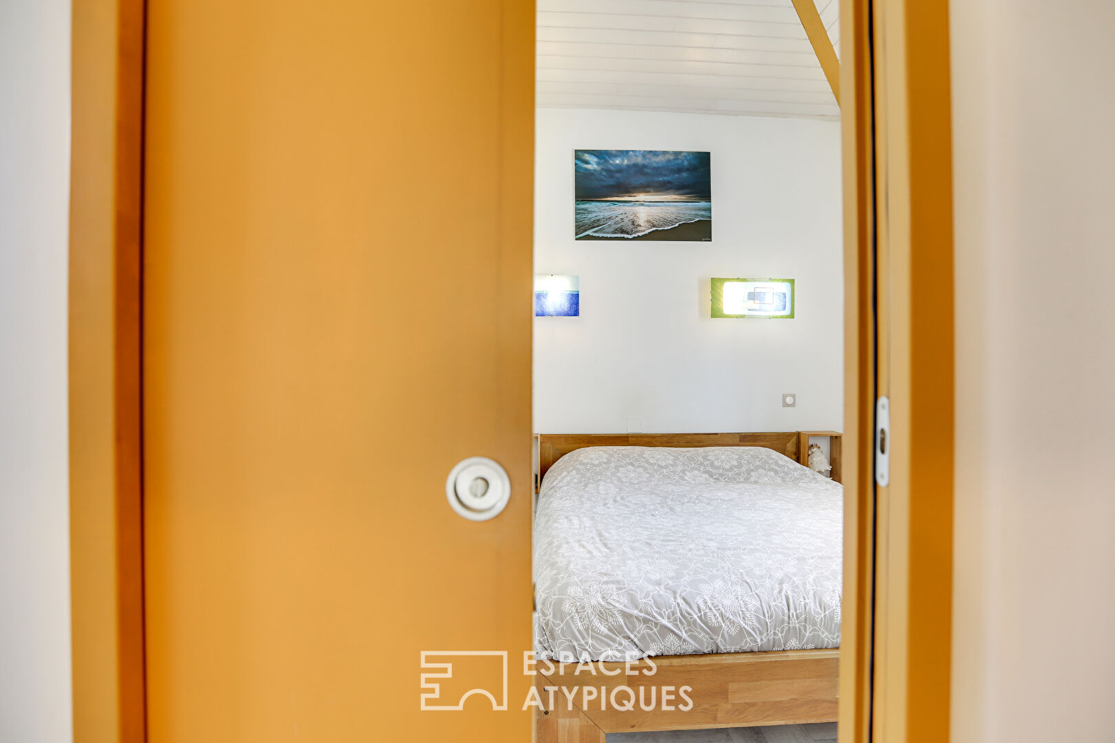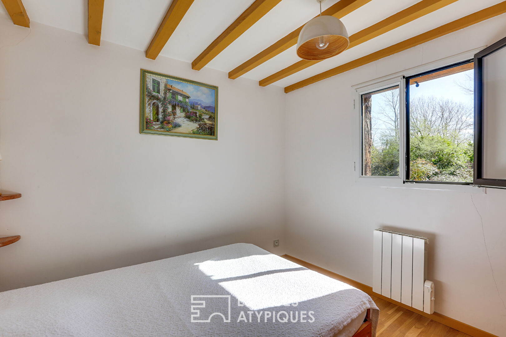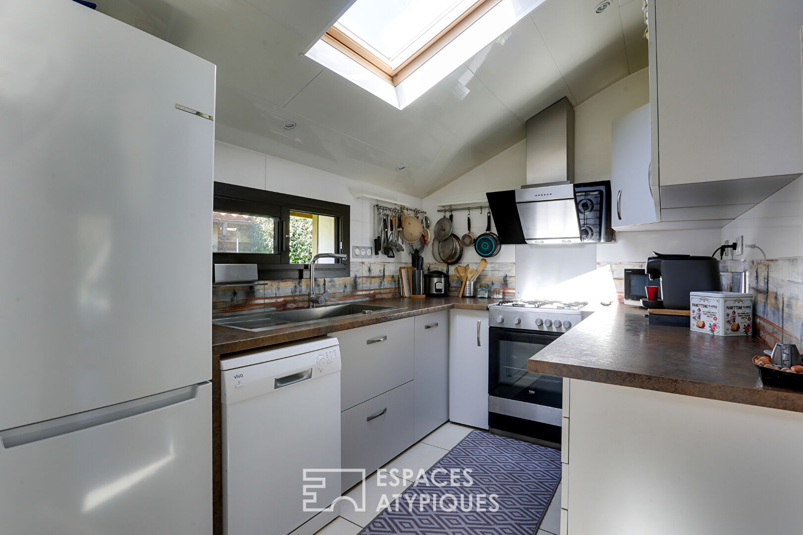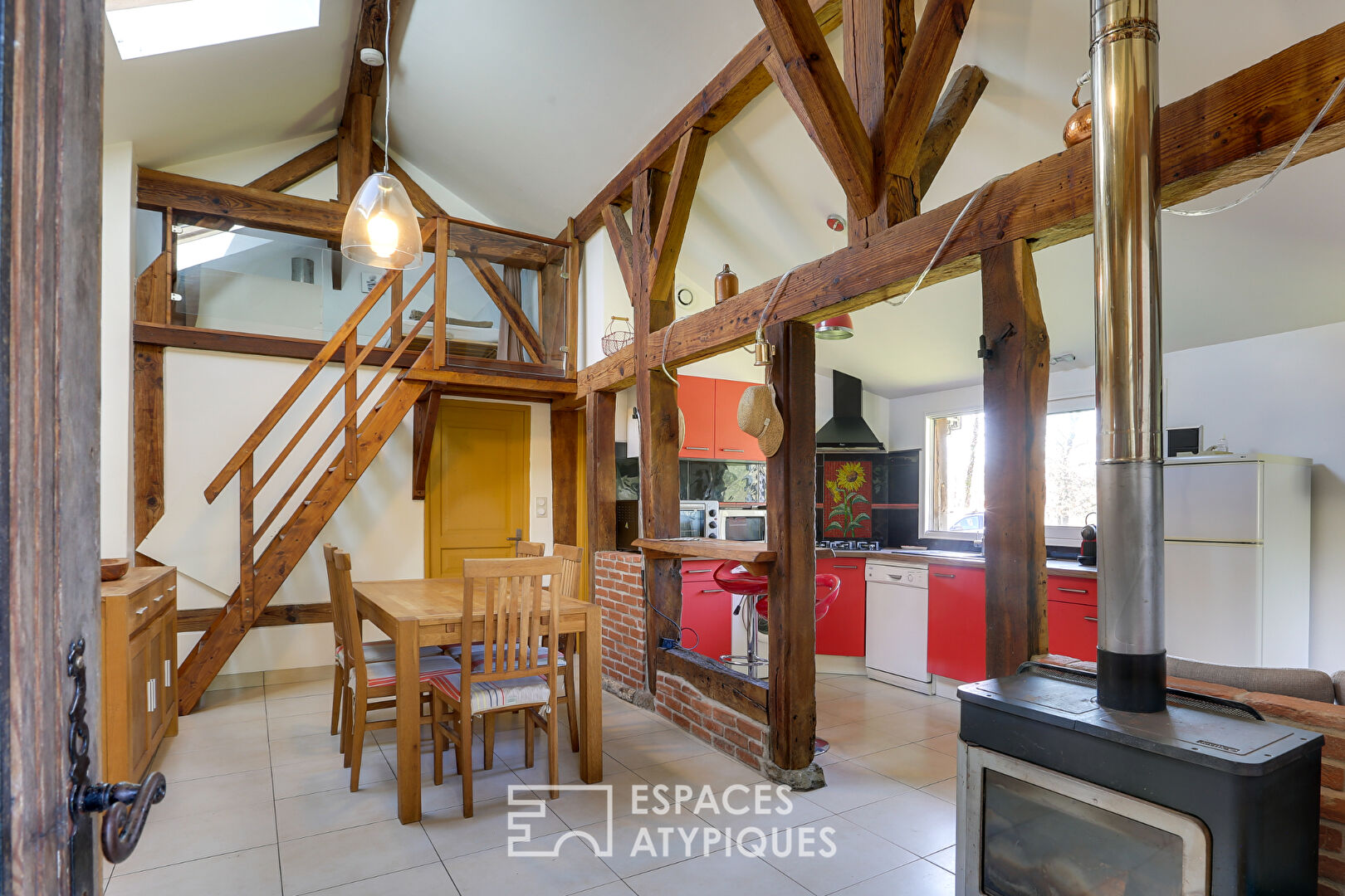 A Magescq, au coeur d'un environnement préservé et à seulement vingt minutes de l'océan, cette ancienne propriété métayère des années 1850 déploie tout le charme de l'architecture landaise sur une parcelle de près d'un hectare. Ce domaine d'exception, véritable immobilier atypique, se compose d'une habitation principale et d'un gîte indépendant, pour une surface habitable totale de plain-pied de 145 m². Bordé par un ruisseau en zone naturelle, le terrain arboré de 9730 m² accueille une piscine chauffée et un grand atelier, offrant un cadre de vie bucolique et privilégié. L'intérieur des bâtiments révèle une rénovation respectueuse qui sublime les structures d'origine. La maison principale s'organise autour d'une salle à manger baignée de lumière, prolongée par un séjour chaleureux agrémenté d'un insert et une cuisine équipée. Deux chambres, une salle d'eau ainsi qu'une véranda viennent parfaire cet espace de vie aux prestations confortables. Le gîte indépendant, quant à lui, séduit par son séjour cathédrale sublimé par une charpente apparente monumentale et réchauffé par un poêle à bois. Il dispose d'une cuisine ouverte, de deux chambres supplémentaires, ainsi que d'une mezzanine dédiée au couchage. Point d'orgue de cet espace dédié à la détente, une salle d'eau intègre un jacuzzi privé. Un bureau avec son entrée indépendante permet une activité professionnelle à domicile. L'extérieur invite à la contemplation et à la douceur de vivre. La vaste parcelle clôturée assure une intimité, entre forêts et cours d'eau. Les installations écoresponsables, telles que les panneaux solaires, s'intègrent à cet ensemble authentique. Proche des commerces du village et des axes menant aux plages de la Côte d'Argent, cette propriété allie le charme d'un refuge naturel à la proximité des services. Ce lieu de vie rare est une invitation à découvrir un patrimoine revisité, idéal pour un projet de résidence familiale ou une activité d'accueil. CLASSE ENERGIE : D / CLASSE CLIMAT : B (pour la maison principale) Montant moyen estimé des dépenses annuelles d'énergie pour un usage standard, établi à partir des prix de l'énergie 2021, 2022 et 2023 : entre 1330 euros et 1800 euros. CLASSE ENERGIE : C / CLASSE CLIMAT : A (pour le gîte) Montant moyen estimé des dépenses annuelles d'énergie pour un usage standard, établi à partir des prix de l'énergie 2021, 2022 et 2023 : entre 1016 euros et 1374 euros. Magali Malbec Contact : au 06 77 52 99 54 RSAC : 490 450 723 DAX MAGALI MALBEC (EI) Agent Commercial - Numéro RSAC : 490450723 - DAX.