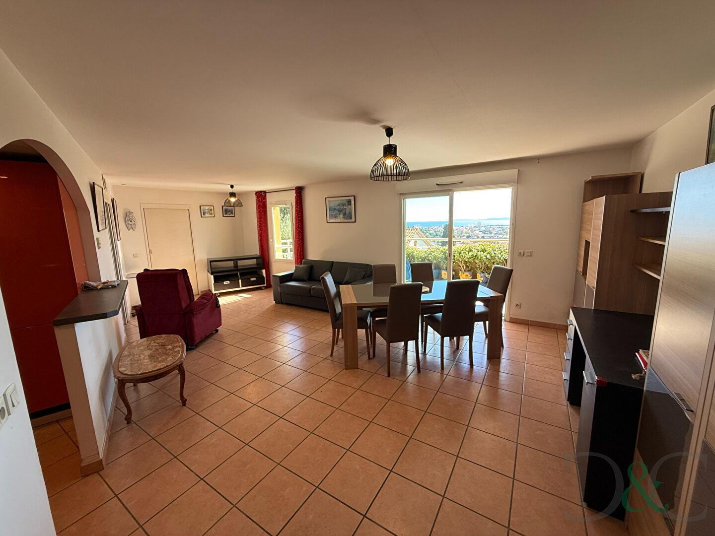 Exclusivité. A vendre. Bormes les Mimosas appartement T2/3 aux normes PMR en reez de chaussée situé proche des commerces du Pin. Au sein d'une petite résidence récente, il offre une entrée ouvrant sur un double séjour et la cuisine équipée. Une grande chambre et une salle d'eau avec toilettes complètent le bien. Jolie terrasse de 16m² offrant une vue dégagée sur la mer. Vendu avec parking handicapé et un garage de 21 m² avec electricité . A cinq minutes de tous les commerces de proximité. Rare à la vente. (5.04 % honoraires TTC à la charge de l'acquéreur.) Copropriété de 22 lots - dont 8 lots habitation. Charges annuelles : 1745 euros.