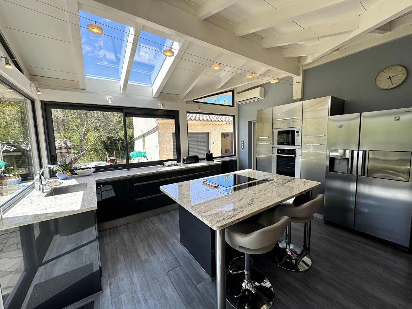 A VENDRE - CABRIÈRES (30210) BONHEUR A LA CLÉ IMMOBILIER Villa de plain-pied entièrement rénovée avec des matériaux de qualité située dans un environnement privilégié Cette villa 5 pièces de 153 m2 habitable est composée d'un hall d'entrée desservant un salon-sejour, une cuisine meublée et équipée, une buanderie, un bureau, quatre chambres dont une suite parentale ainsi qu'une salle d'eau avec un WC et un WC indépendant Le tout sur une parcelle de 1244 m2 avec une piscine, un pool house, un garage et un abri voiture Prix de vente : 479 000 euros frais d'agence inclus charge vendeur Pour plus de renseignements : www.bonheuralacle.fr Vidéo disponible sur demande Vous souhaitez organiser une visite sur ce bien ? 04.66.75.03.19 - agence@bonheuralacle.fr