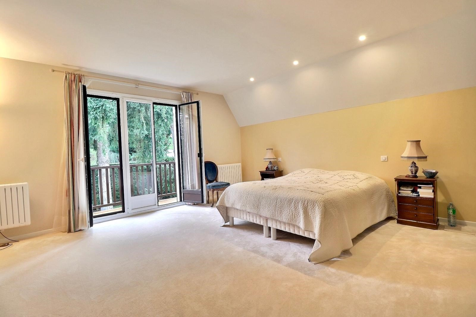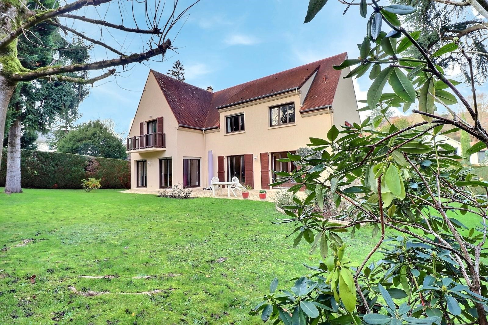 Dans un cadre très verdoyant, proche forêt, très belle villa de 273m² sur 965m² de terrain. Terrasse exposée sud, magnifique jardin paysager Proche de la ligne L, du tram 13 et du bus pour Saint Germain en Laye. Entrée, cuisine dinatoire, salle à manger, séjour, salon avec cheminée (insert), chambre, salle de bain, wc. Etage : palier, 4 grandes chambres, buanderie, salle de douche, wc, salle de bain avec wc. Combles aménageables. Sous-sol 140m² : 2 grandes caves, cave à vin, grande salle de jeux, garage. Aucun travaux à prévoir : ravalement récent, peintures intérieures, portes et fenêtres neuves, radiateurs neufs. Chauffage électrique (DPE C / GES A). (4.00 % honoraires TTC à la charge de l'acquéreur.)
