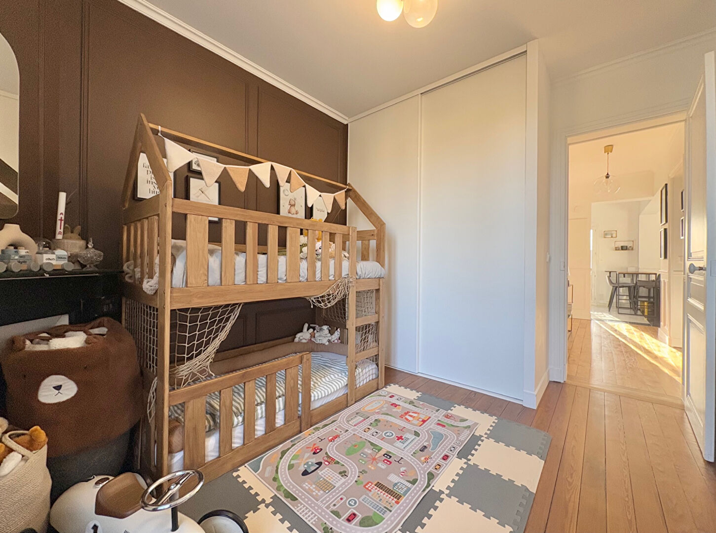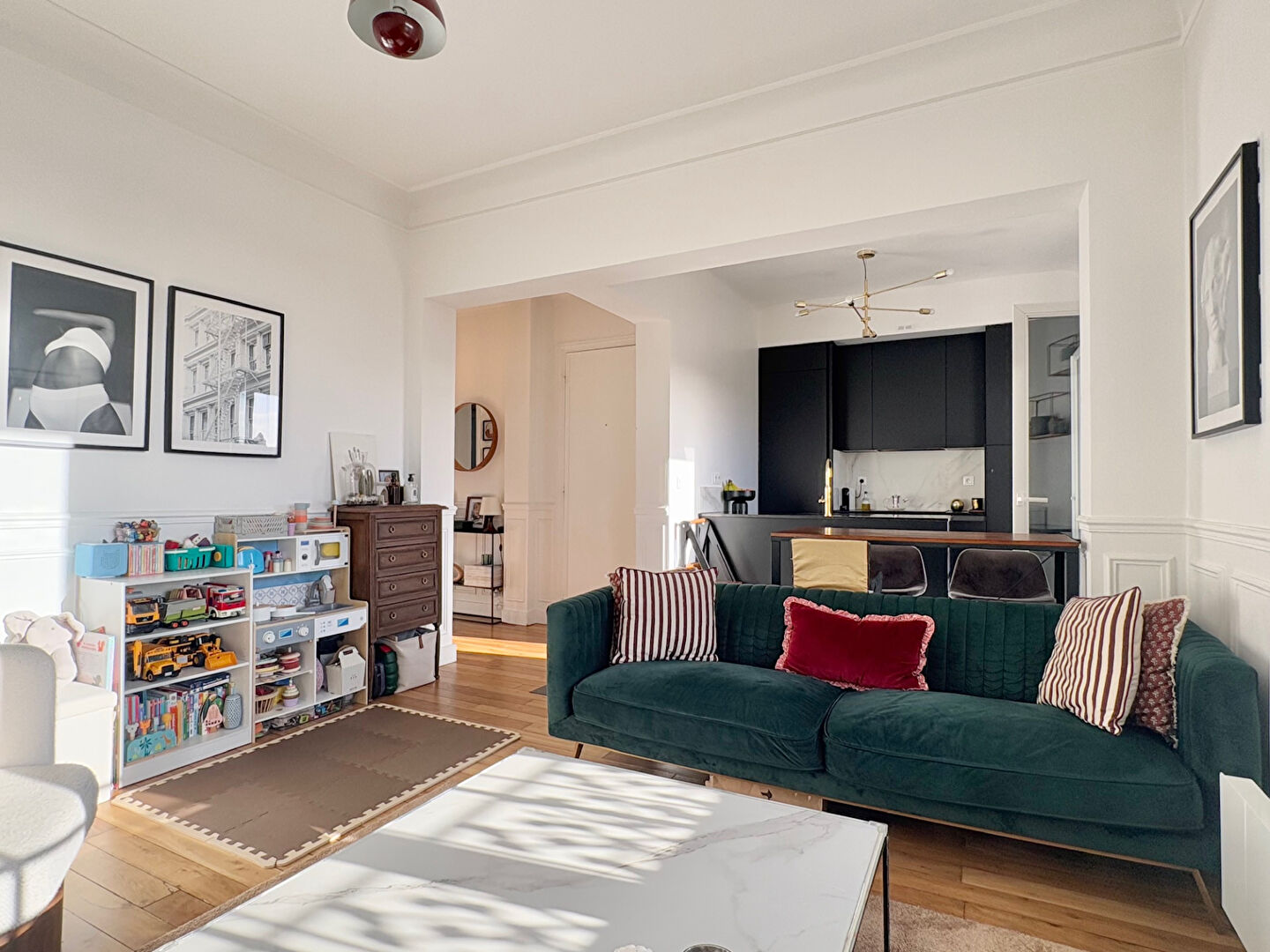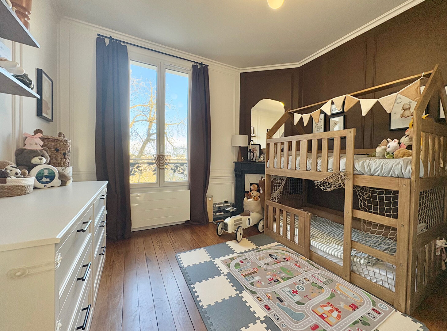 Emplacement idéal pour ce bien situé à quelques pas de la Grande rue commerçante, à proximité immédiate des commerces, établissements scolaires et transports en commun. RER A, RER E et futur ligne 15 du métro à moins de 12 minutes à pieds. Dans une copropriété début XXe récemment ravalée, dans une rue privée, au 4ème étage sans ascenseur. Cet appartement traversant entièrement rénové à l'agencement optimisé, à préservé tous les éléments d'époque: ses moulures, son parquet et ses cheminées. Il est constitué d'une entrée desservant une pièce de vie lumineuse avec cuisine américaine aménagée sur mesure, dégagement donnant sur deux chambres avec grands placards de rangements, une salle de bains et des WC séparés. Appartement mélangeant le charme de l'ancien avec le confort du moderne ! Travaux de réfection des parties communes votés et payés ! Une grande cave en sous-sol. Stationnement dans la rue pour les résidents. Copropriété de 12 lots - dont 12 lots habitation. Charges annuelles : 1560 euros.