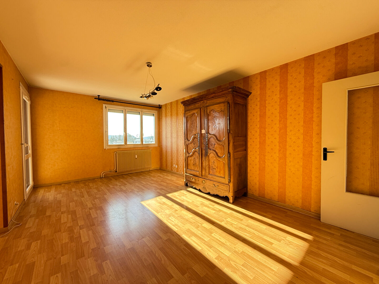 A Lons-le-Saunier, à proximité des commerces et des commodités, découvrez cet appartement traversant de 93,94 m² situé au 5ème et dernier étage d'une résidence. Baigné de lumière, il offre un cadre de vie agréable avec une vue dégagée. L'appartement se compose d'une entrée desservant une cuisine meublée, un salon-séjour lumineux avec accès au balcon, idéal pour profiter de l'extérieur. L'espace nuit comprend trois chambres, une salle de bains, un WC indépendant apportant un confort pratique au quotidien. Ce bien dispose également de fenêtres en double vitrage et d'un chauffage collectif avec comptage individuel. Un garage et une cave viennent compléter l'ensemble, offrant des espaces de stationnement et de rangement appréciables. Appartement spacieux et fonctionnel, idéal pour une famille ou pour un projet d'investissement, situé dans une copropriété proche de toutes les commodités. DPE en D. (6.52 % honoraires TTC à la charge de l'acquéreur.) Copropriété de 40 lots. Charges annuelles : 2400 euros.