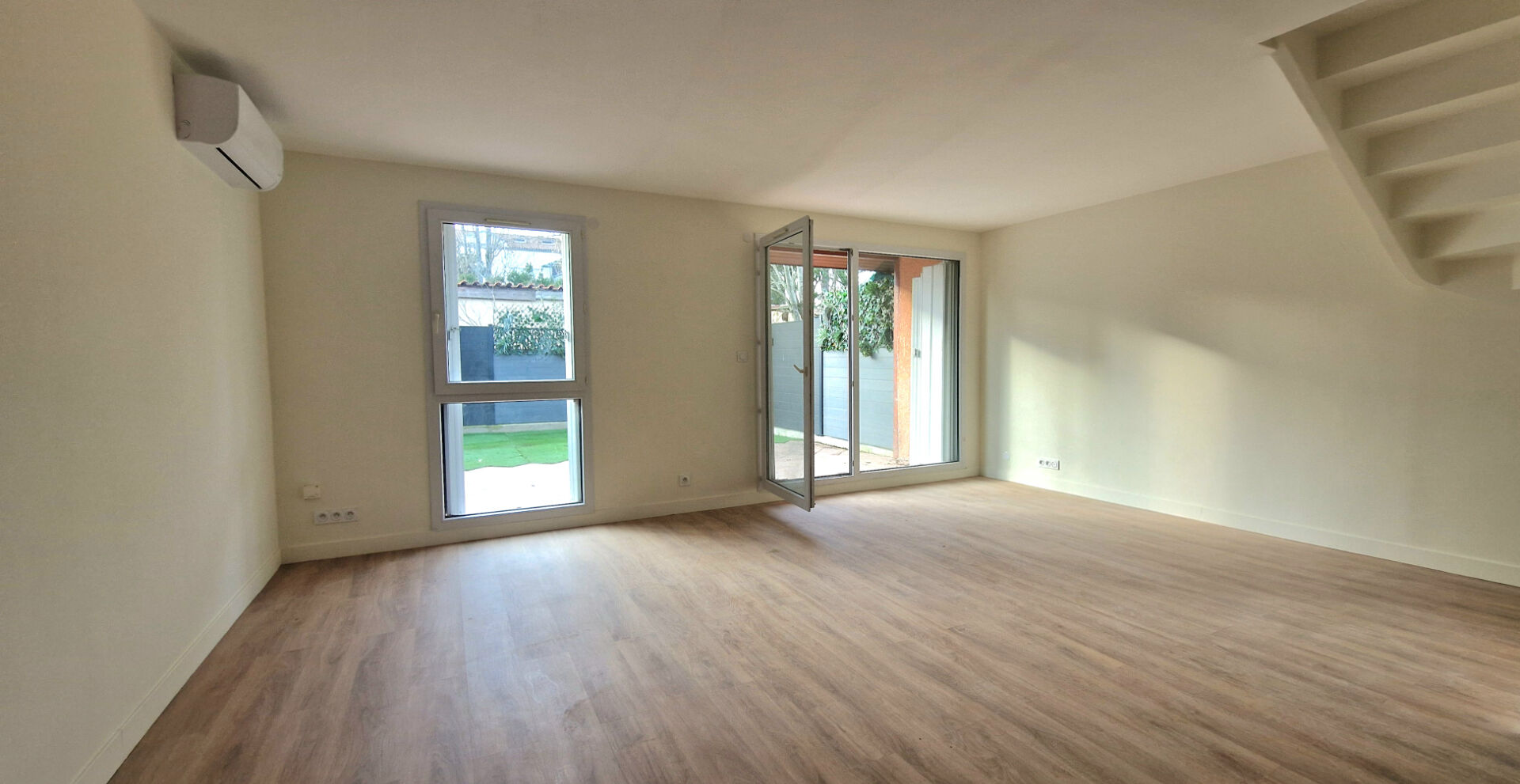 La Ville en Rose vous propose à la vente une villa de type 4 de 104 m2 habitable ( 88,76 m2 carrez) entièrement rénovée avec des matériaux modernes et de qualités, située à 200m des commerces du centre d'Aucamville, dans une rue calme. Elle dispose d'une cuisine très bien équipée ouverte sur un séjour de 46 m2 donnant accès à un jardin clos et arboré orienté ouest avec gazon synthétique ne nécessitant aucun entretien, wc suspendu et buanderie. A l'étage vous disposez de 3 chambres d'une salle d'eau avec douche à "l'italienne", wc suspendu séparé. La maison est entiérement climatisée et béneficie d'un patio privatif et d'un garage indépendant, isolé et carrelé. ASL avec faibles charges . Copropriété de 14 lots - dont 12 lots habitation. Charges annuelles : 358 euros.