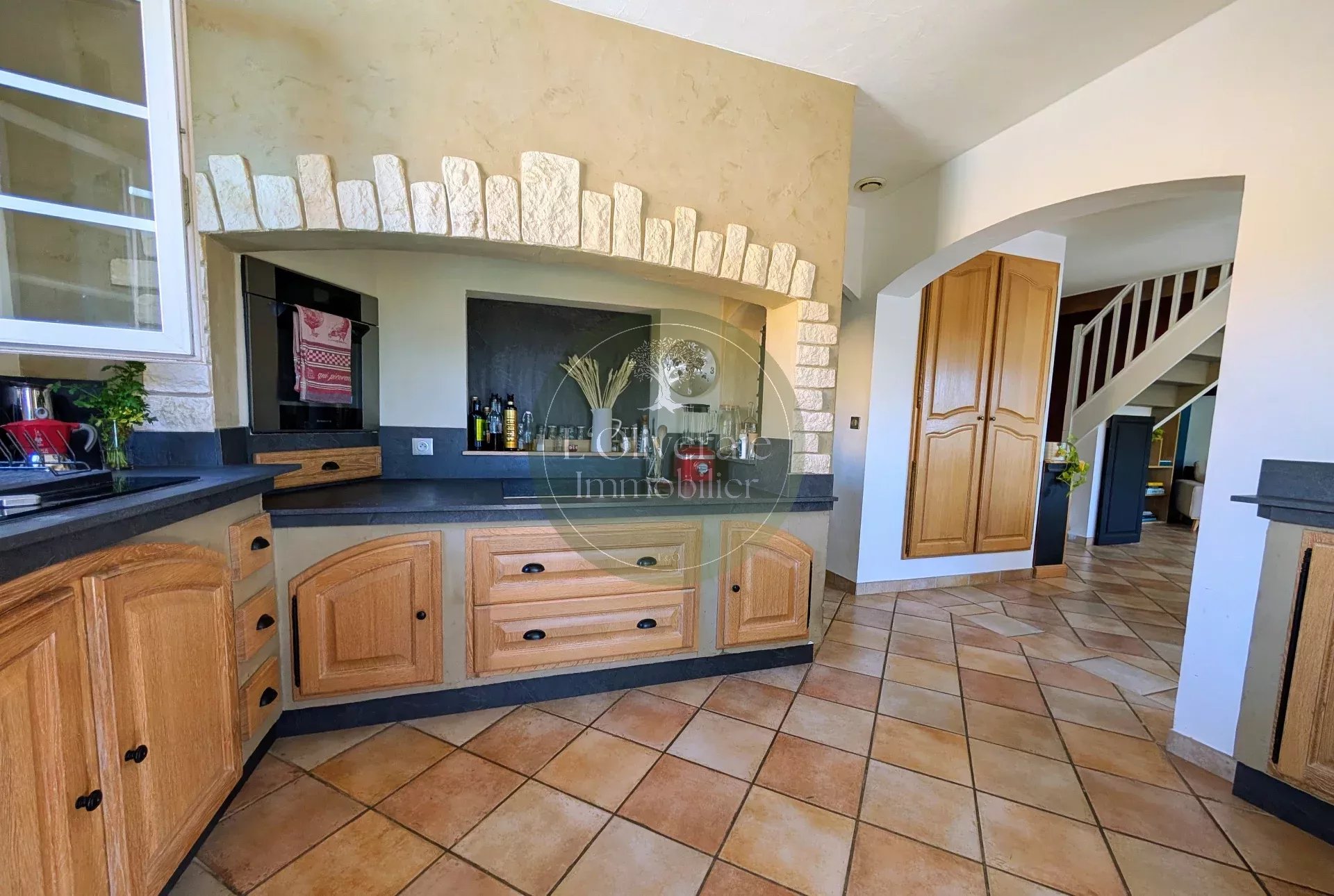 L’Oliveraie Immobilier vous propose sur la commune de Peypin, à proximité immédiate du centre du village, des commerces, écoles, axes autoroutiers et transports, cette agréable maison familiale en position dominante, exposée plein sud et bénéficiant d’une vue dégagée. Implantée sur une belle parcelle d’environ 1 000 m², la propriété offre un environnement calme et privilégié. Vous profiterez d’un espace extérieur parfaitement aménagé avec une piscine, une grande terrasse conviviale avec pergola, un coin barbecue et four à pizza, idéal pour les moments en famille ou entre amis. Au rez-de-chaussée, la maison propose une spacieuse pièce de vie d’environ 48 m², baignée de lumière grâce à son exposition plein sud. La cuisine entièrement équipée, ouverte sur le séjour et la salle à manger, crée un espace chaleureux et fonctionnel avec un accès direct à la terrasse. Un cellier ainsi qu’un WC indépendant complètent ce niveau. Toujours au rez-de-chaussée, vous trouverez une suite parentale offrant confort et intimité. À l’étage, l’espace nuit se compose de trois chambres, d’une salle d’eau ainsi que d’un WC indépendant. Maison prête à vivre, elle bénéficie de nombreuses prestations :Climatisation réversible-Cheminée avec insert Tout-à-l’égout-Fibre-Forage-Deux garages-Portail électrique Pour de plus amples informations votre contact Giansoldati Ornella. Les informations sur les risques auxquels ce bien est exposé sont disponibles sur le site Géorisques http://www.georisques.gouv.fr Pour plus de détails contactez-nous ou consultez notre site. L’Oliveraie Immobilier, votre agence immobilière à La Destrousse, vous accompagne pour la vente ou l’achat d’un bien immobilier sur les communes de La Destrousse, La Bouilladisse, Auriol, Peypin, Roquevaire et alentours.