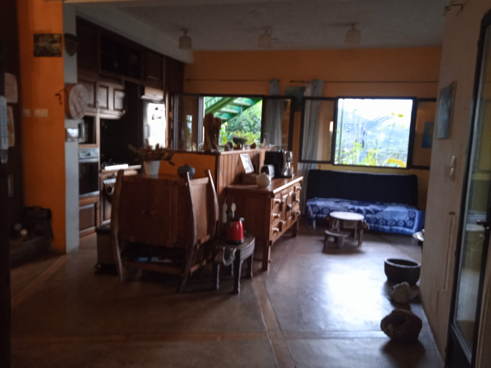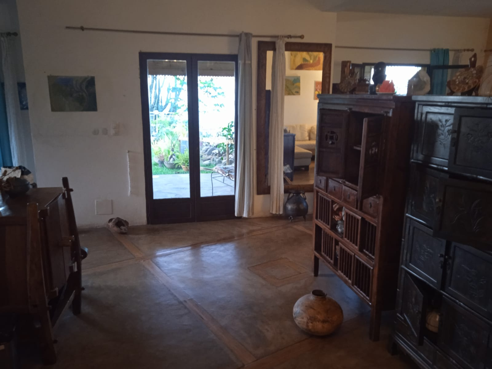 Sur les hauteurs de Sainte Clotilde, à vendre maison de charme et atypique au style créole de type F7/8 d'environ 180 m2 de surface habitable et ses annexes (cuisine extérieure, double garage, abri voiture, atelier), le tout bâti sur 1200 m2 de terrain clos et arboré de plantes et d'arbres tropicaux et exotiques.