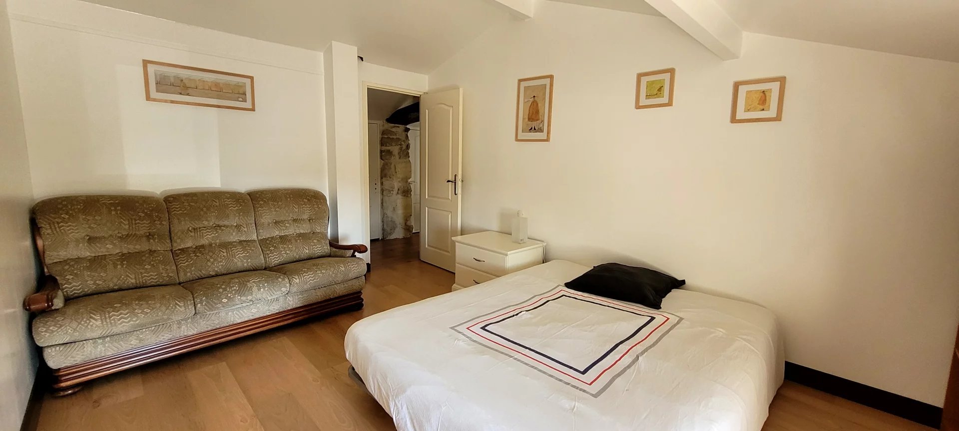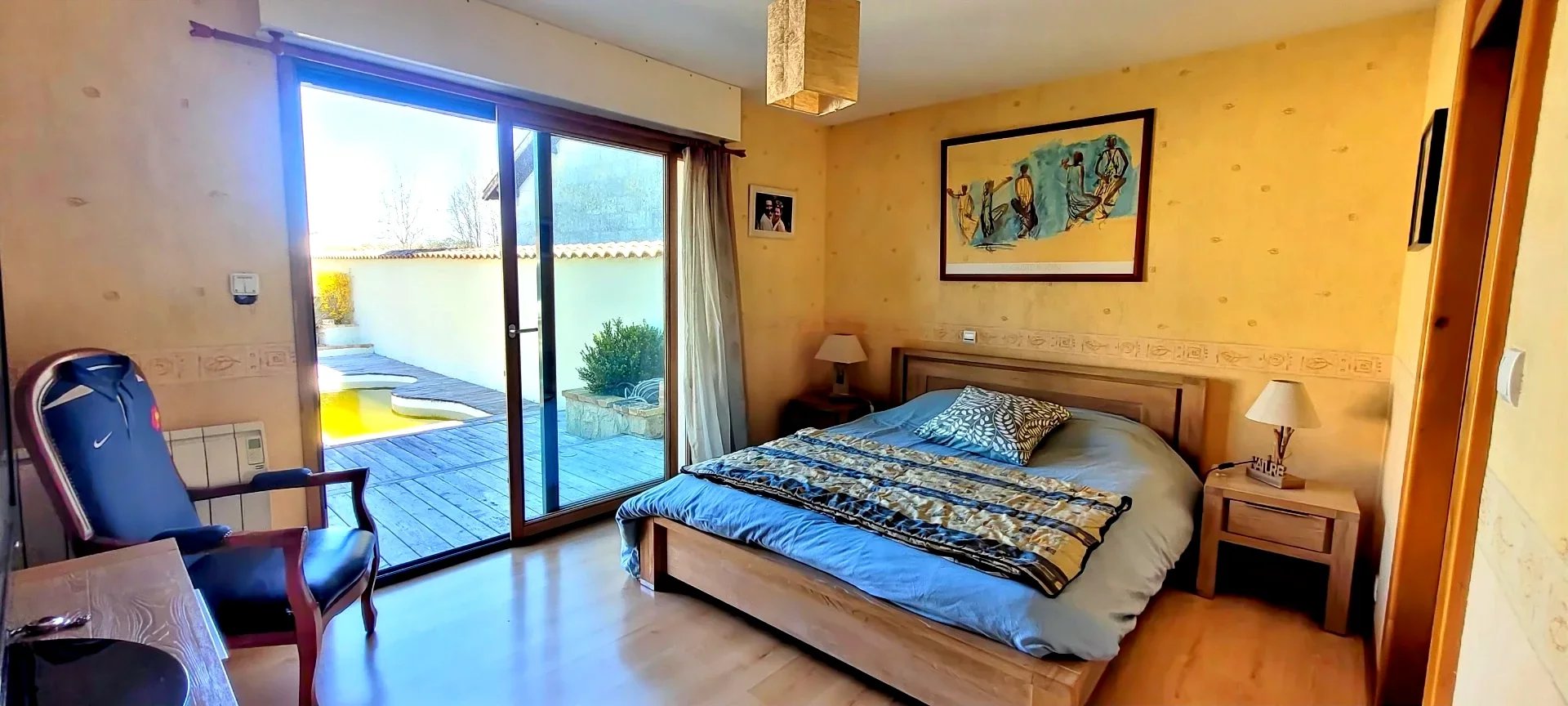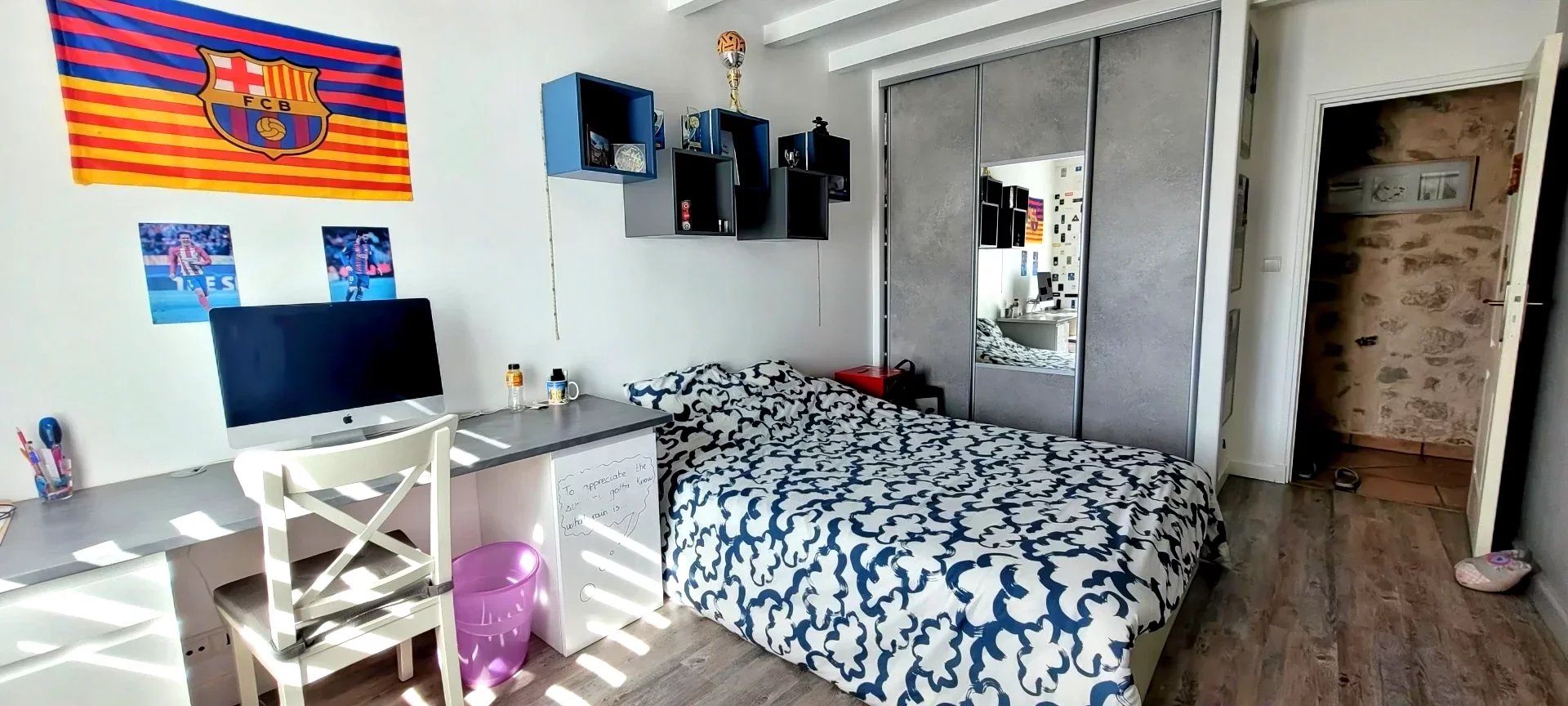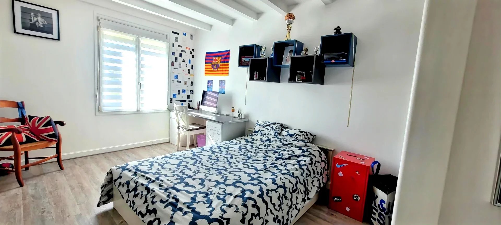 Au premier étage, une vaste mezzanine permet l'installation d'un bureau ou salon télé ou bibliothèque, donnant accès vers 2 chambres supplémentaires et un dressing