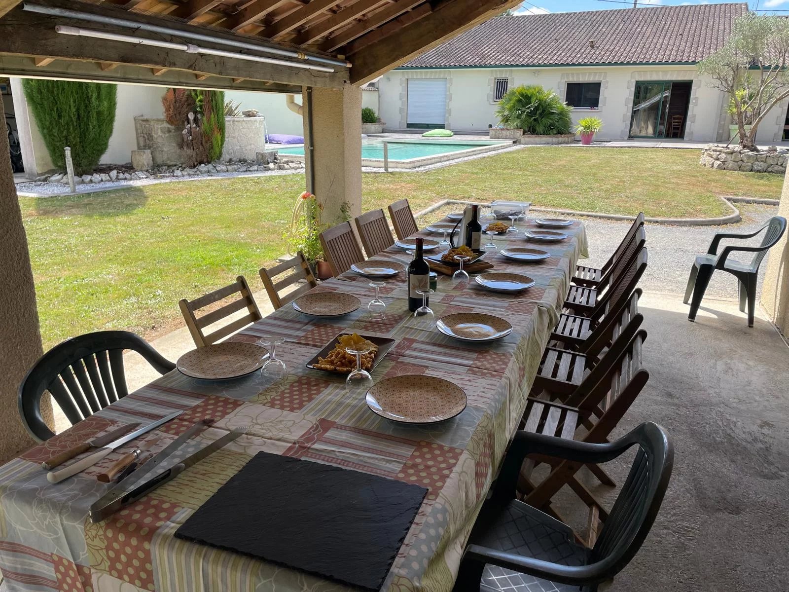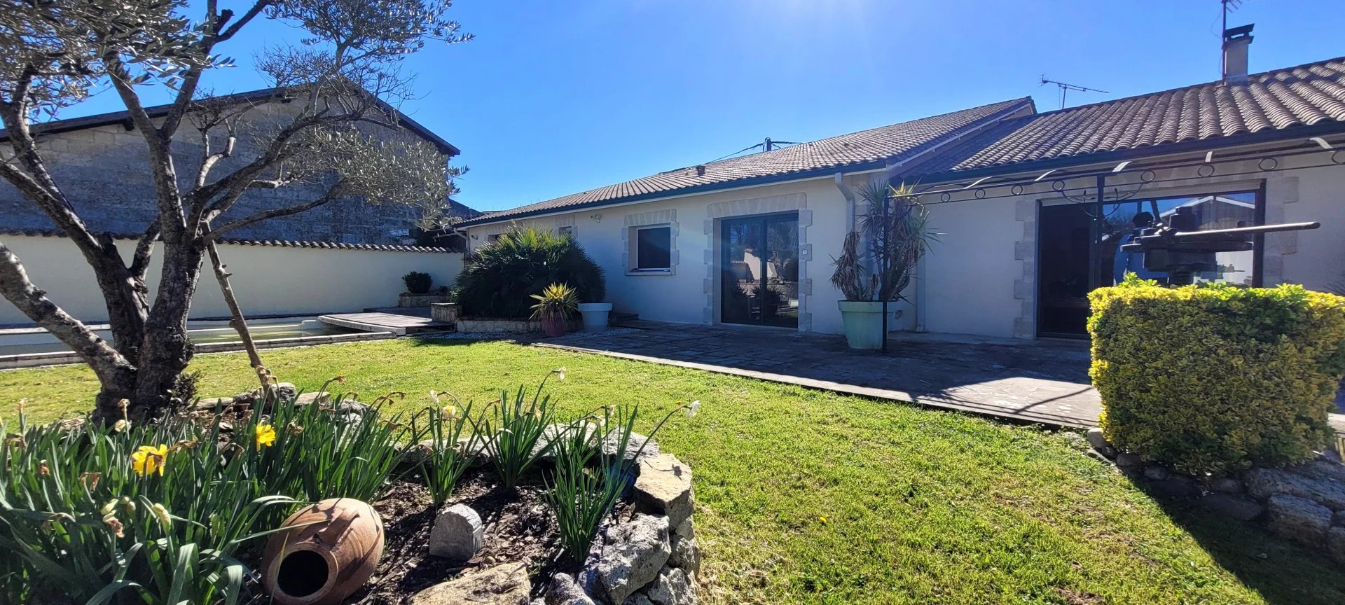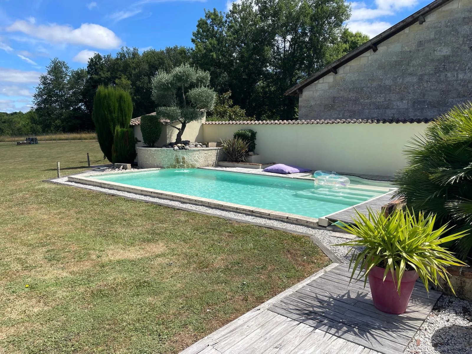 En extérieur, la terrasse carrelée, la piscine enterrée et le spa invitent à la détente, faisant face à un grand abri et son four à pains, l'espace idéal pour réunir de nombreux convives. Le plus du plus : une cave climatisée ...