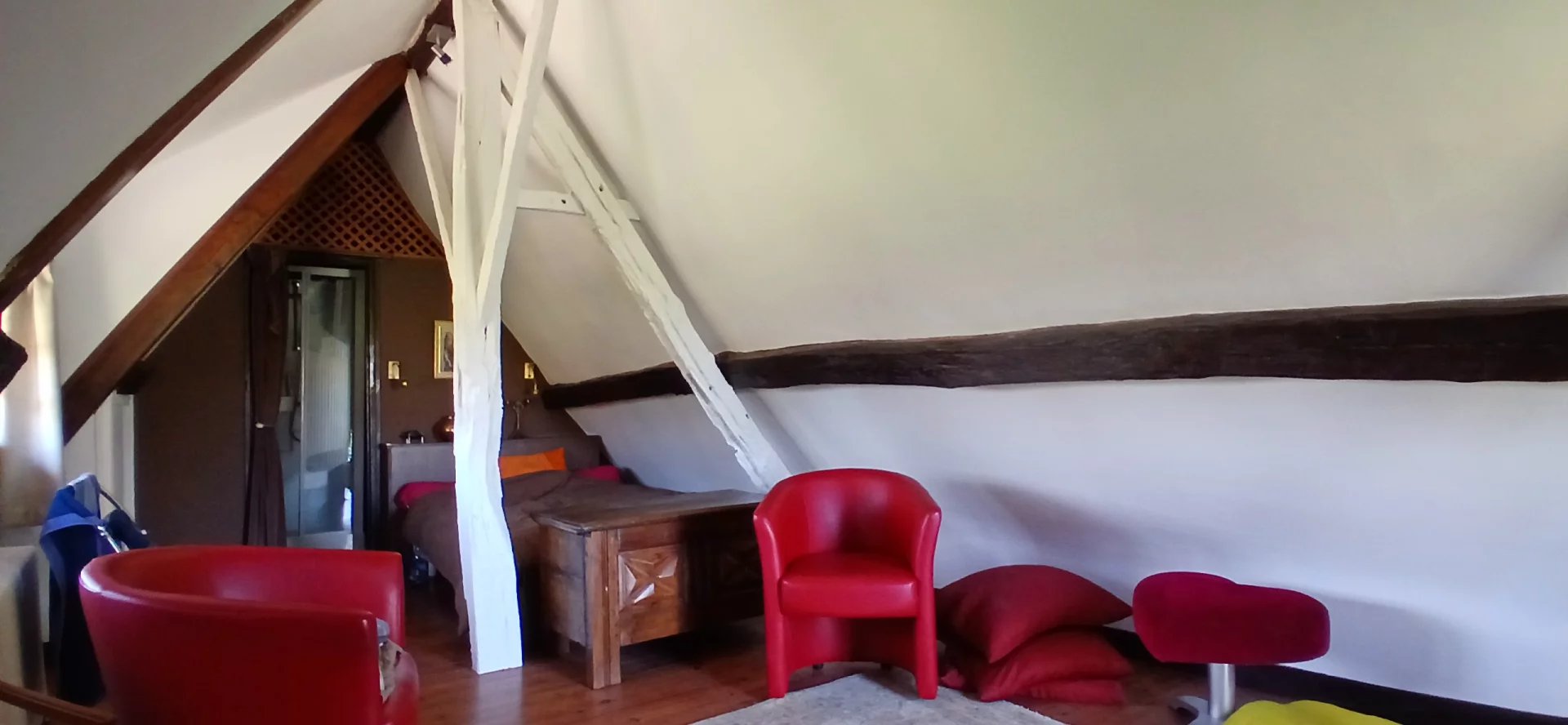 L'atout majeur : Accessible par un escalier extérieur, une seconde chambre totalement indépendante avec sa propre salle de douche et w.-c. Parfait pour recevoir des amis, un adolescent en quête d'autonomie ou pour une activité de chambre d'hôtes.