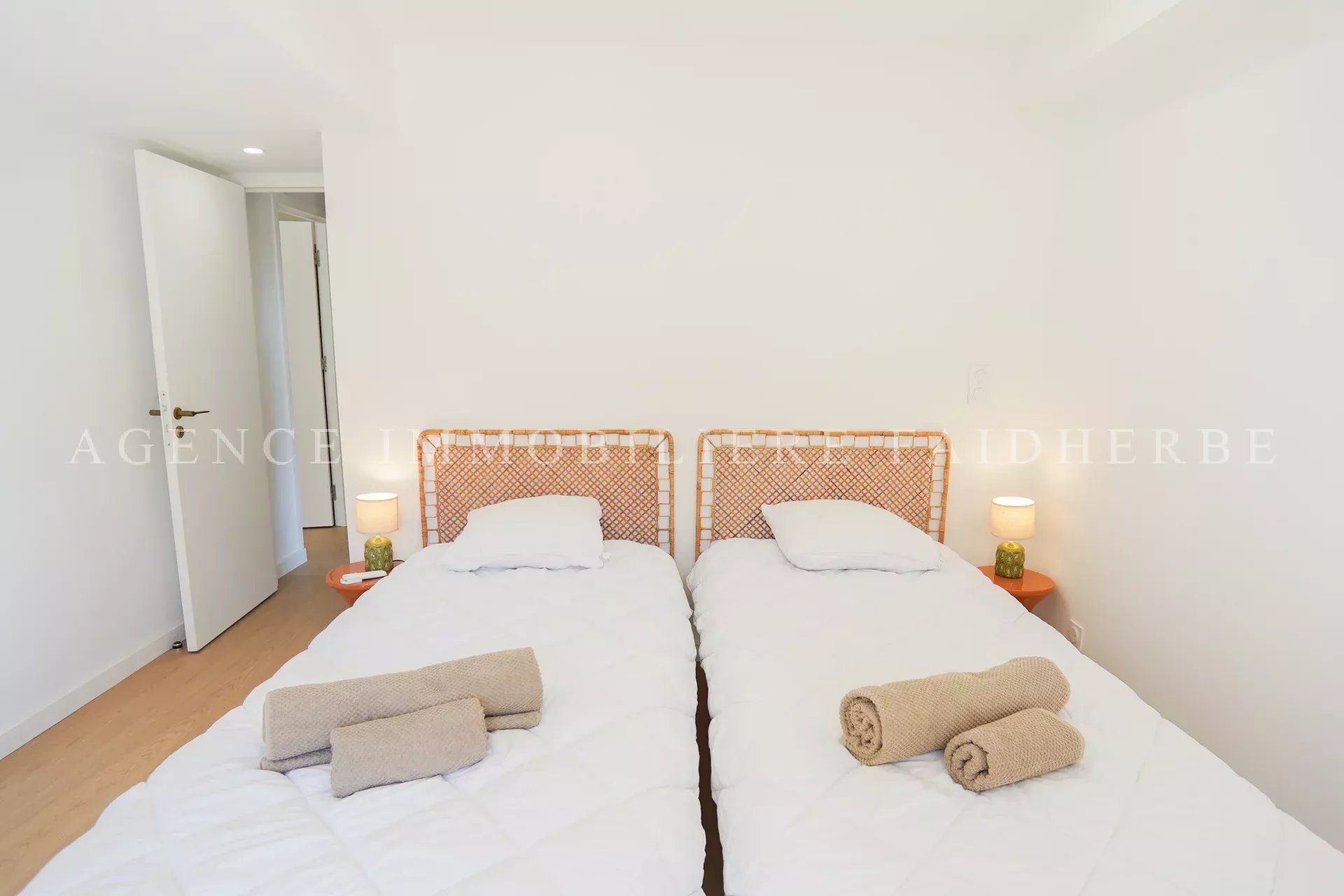 In un residence vicino al paese, questo appartamento conserva l'eleganza della sua spaziosa disposizione. Di circa 83 metri quadrati, dispone di un grazioso soggiorno, una cucina semi-aperta, tutti con accesso al balcone; due graziose camere da letto, ciascuna con bagno o doccia privato; una cameretta per bambini; e due bagni. Entrambe le camere da letto hanno accesso a un secondo ampio balcone. Viene affittato con un garage al piano interrato. Utenze: biancheria 110 €/settimana, pulizie 200 € e tassa di soggiorno 6,91 €/giorno/adulto