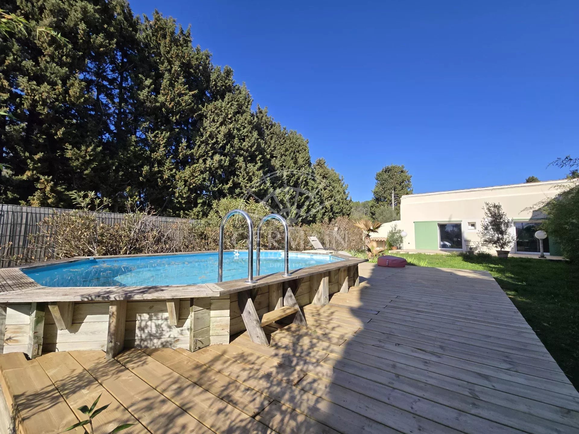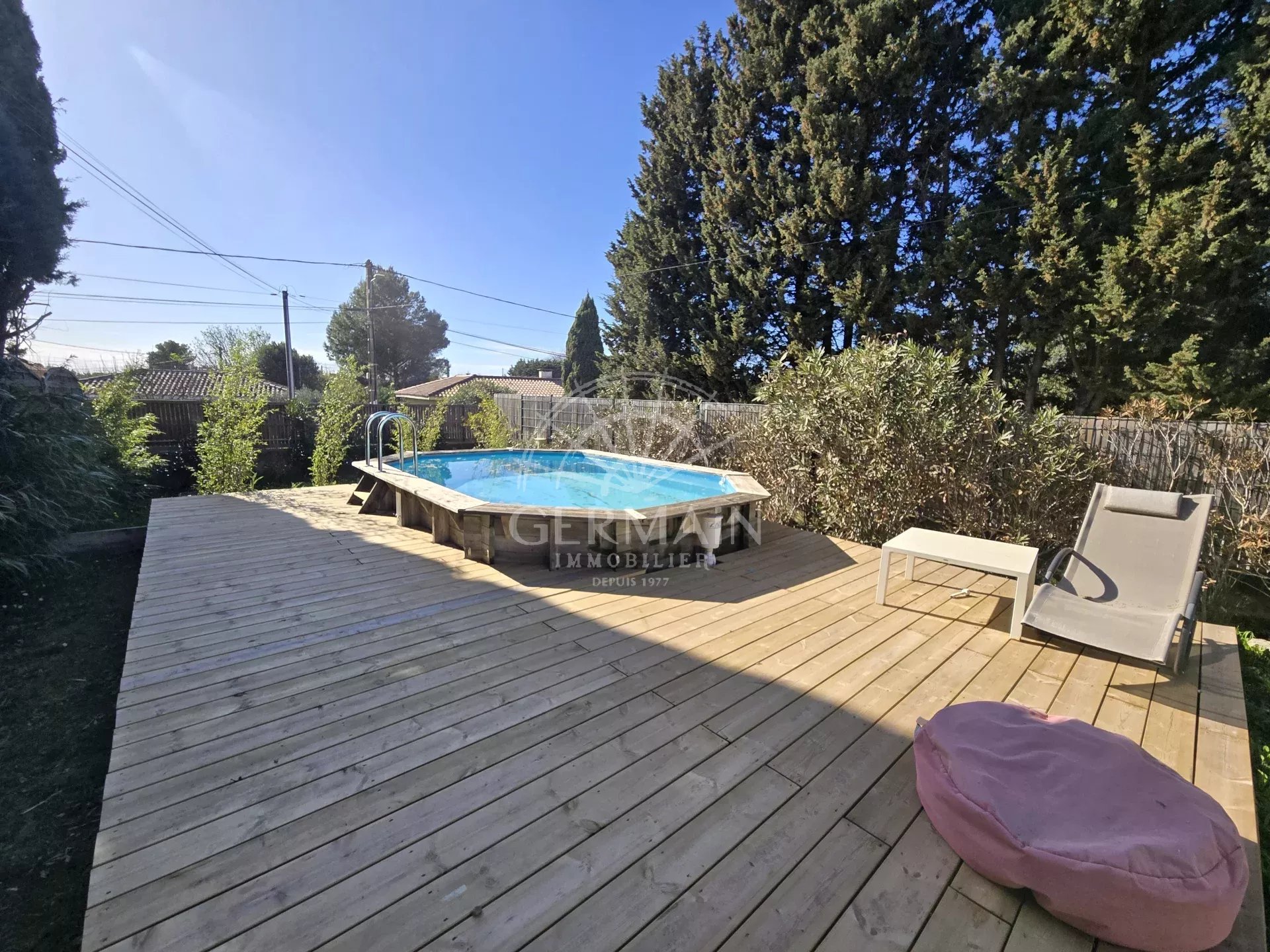 Côté extérieur, vous apprécierez son jardin clos et arboré de près de 650 m², plusieurs coins terrasses, une piscine en bois avec sa plage, un carport et un abri de jardin.