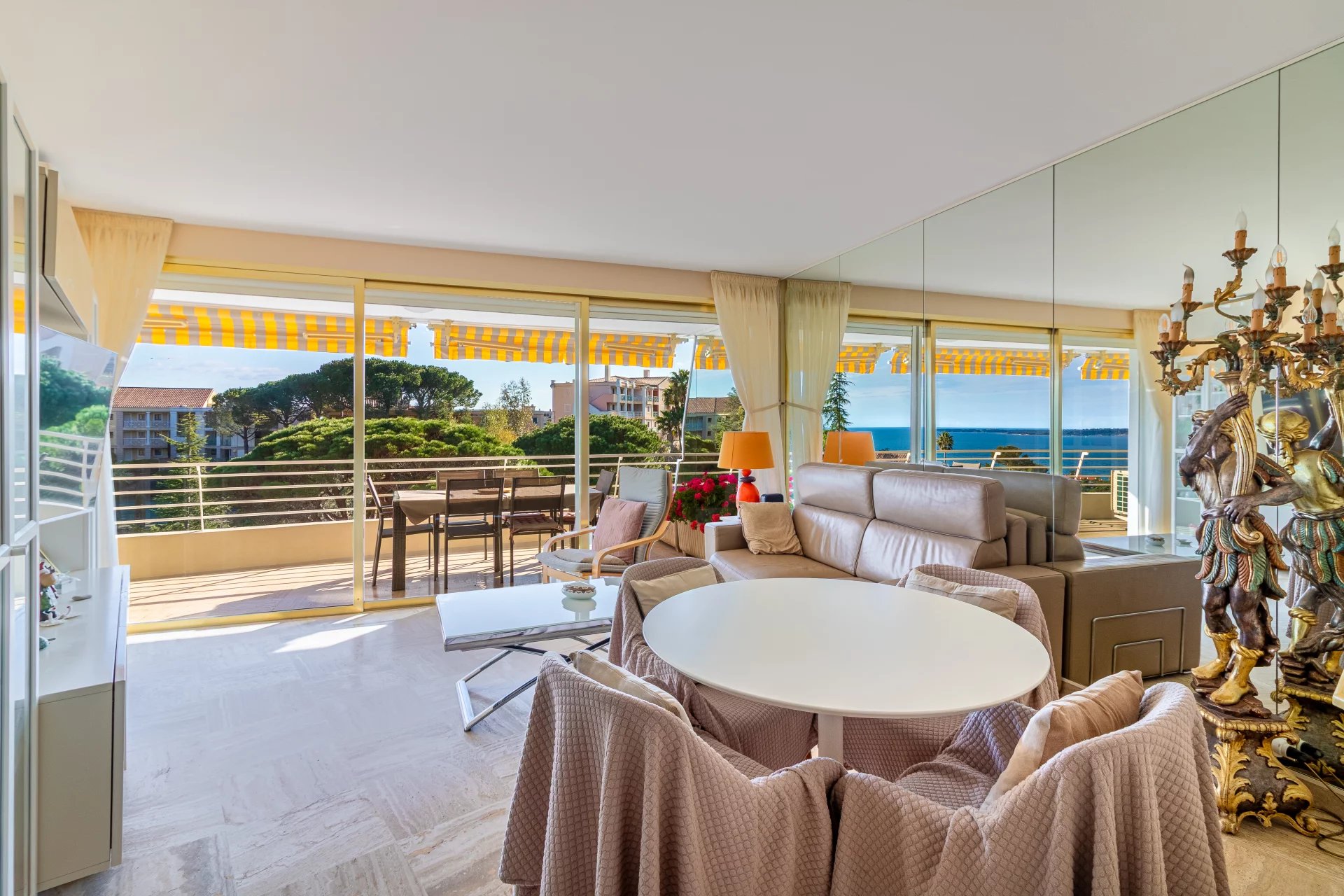 L’appartement bénéficie d’une magnifique vue panoramique sur la mer, offrant un cadre de vie exceptionnel et lumineux. Le séjour s’ouvre sur une agréable terrasse exposée plein sud, idéale pour profiter du soleil et du panorama tout au long de l’année.