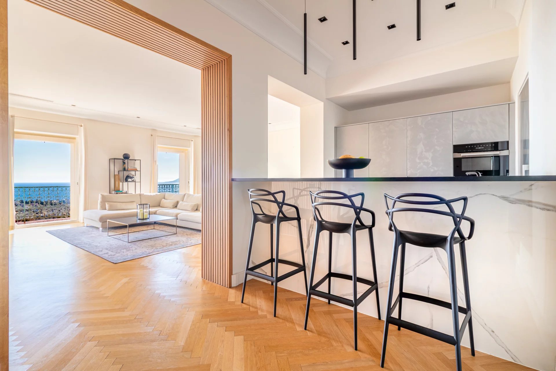 SP Real Estate propone questo magnifico appartamento borghese passante di 130 m², situato all’ultimo piano di una residenza di alto standing e sicura nel quartiere molto ricercato de La Californie.