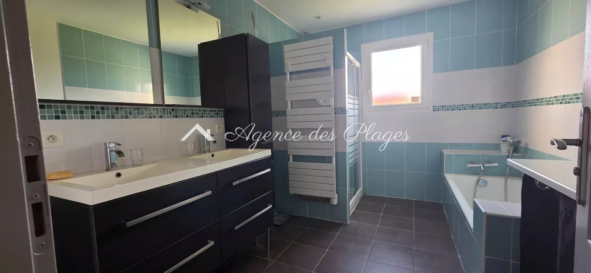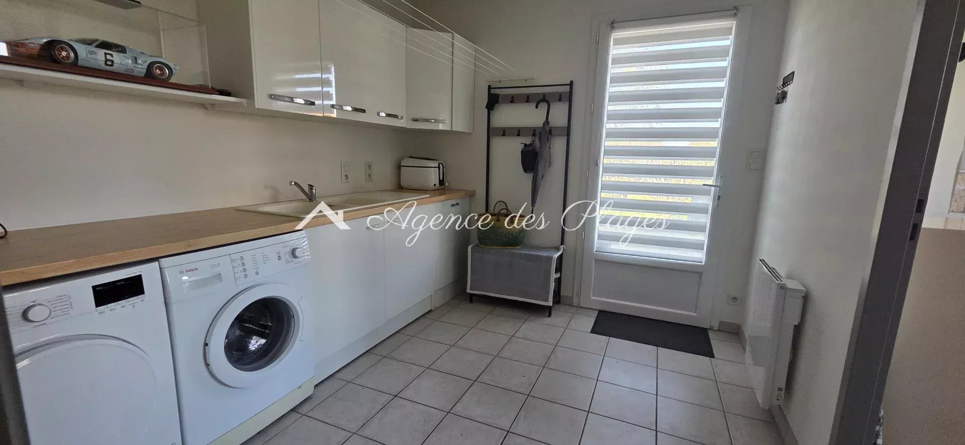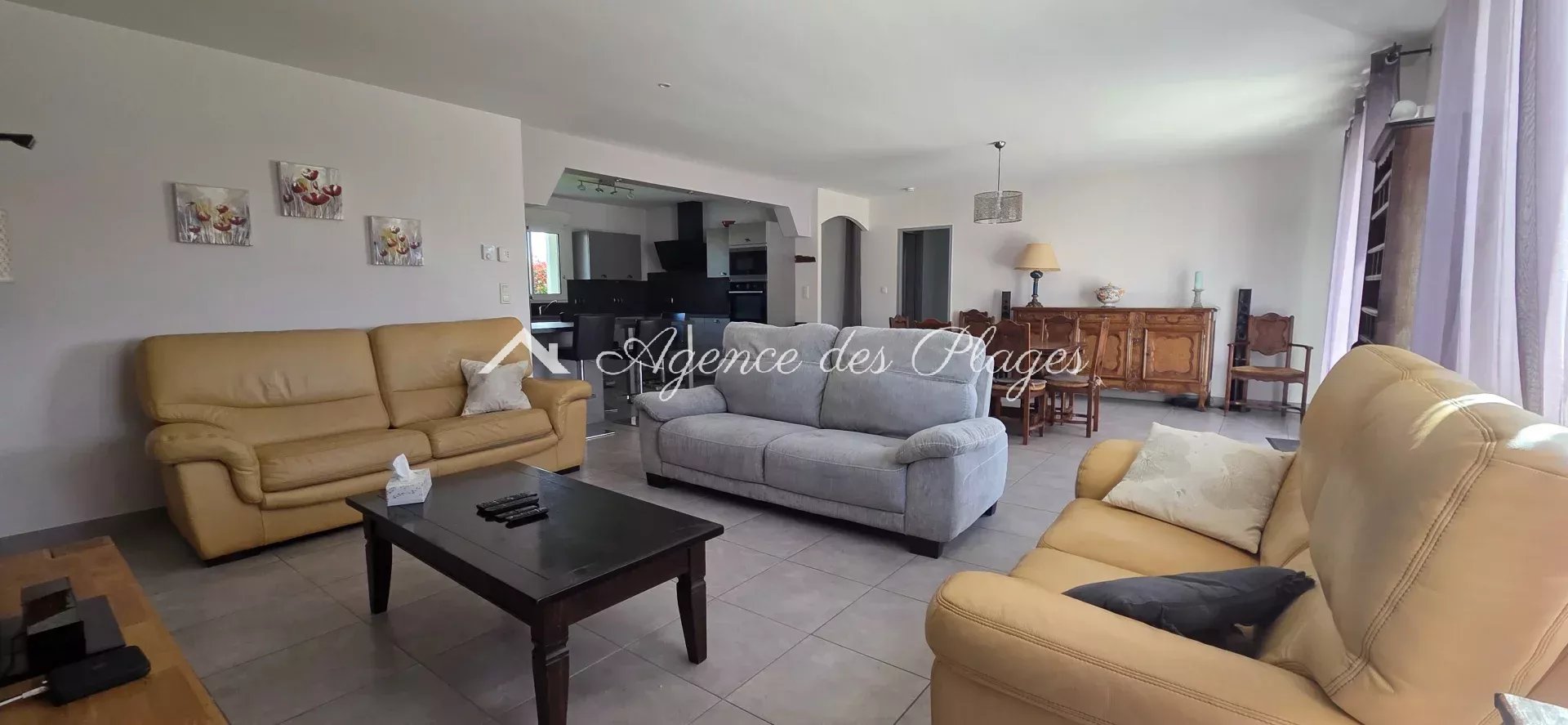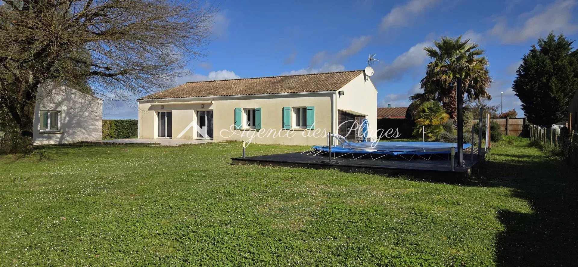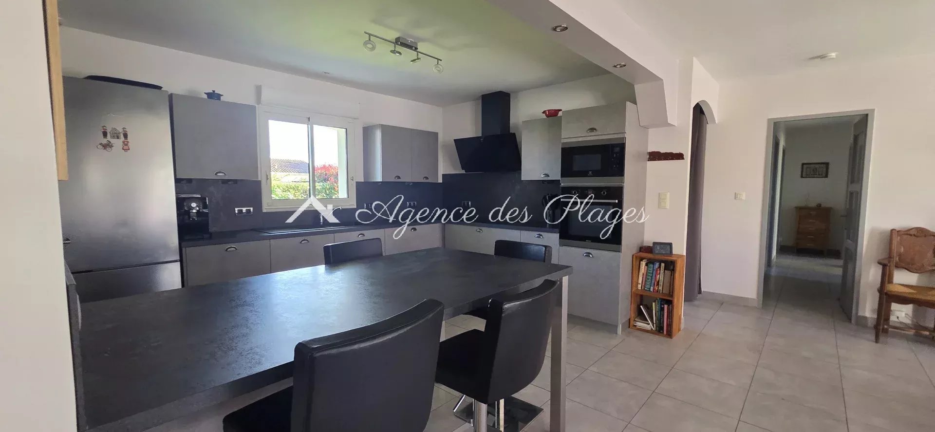 Dans un bourg avec des commerces de proximité, cette jolie maison de 2010 se compose d'une entrée, d'une pièce de vie de 54 m² avec une cuisine équipée, de trois chambres, d'une salle de bains, de toilettes séparées et d'un grand cellier. Un garage double complète ce bien ainsi qu'une petite cave. Le jardin clos avec portail motorisé, a une superficie de plus de 1500m². La piscine est chauffée. Tout à l'égout - Chauffage au sol électrique