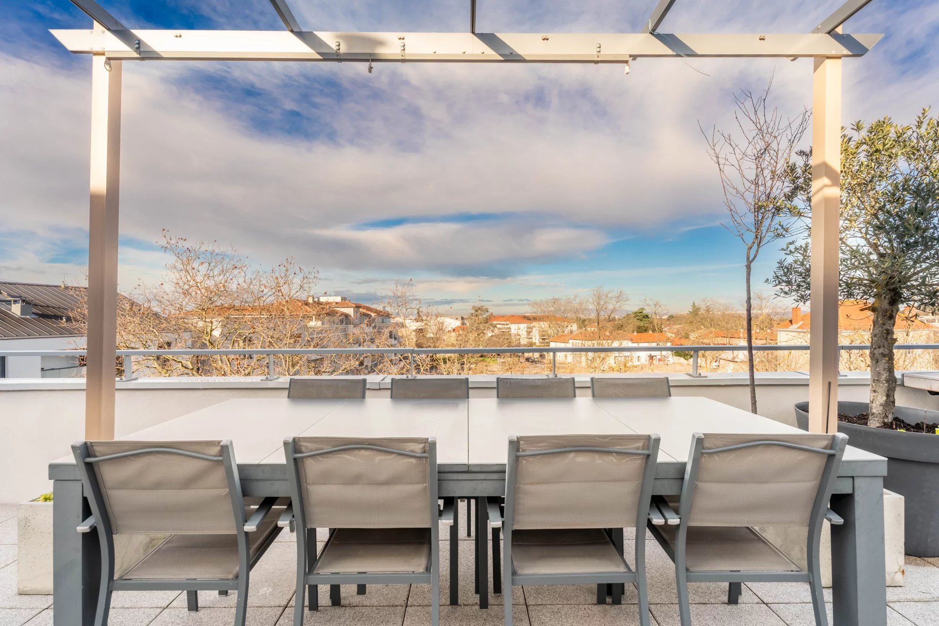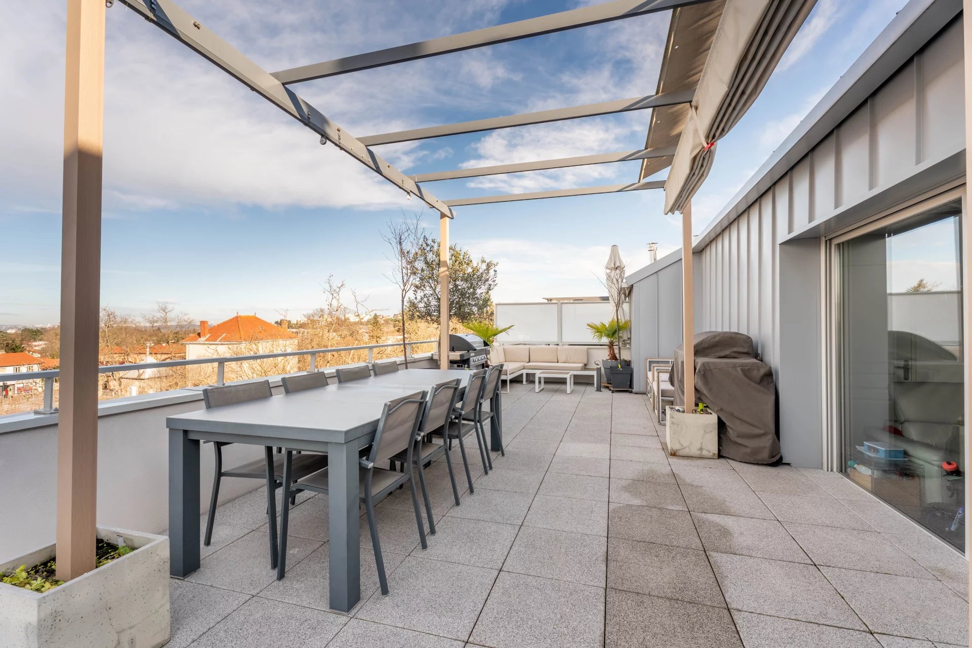 Vous profiterez d'une magnifique terrasse de 53m², rare sur le secteur, offrant une vue dégagée sur LYON, idéale pour vos moments de détente ou de réception.