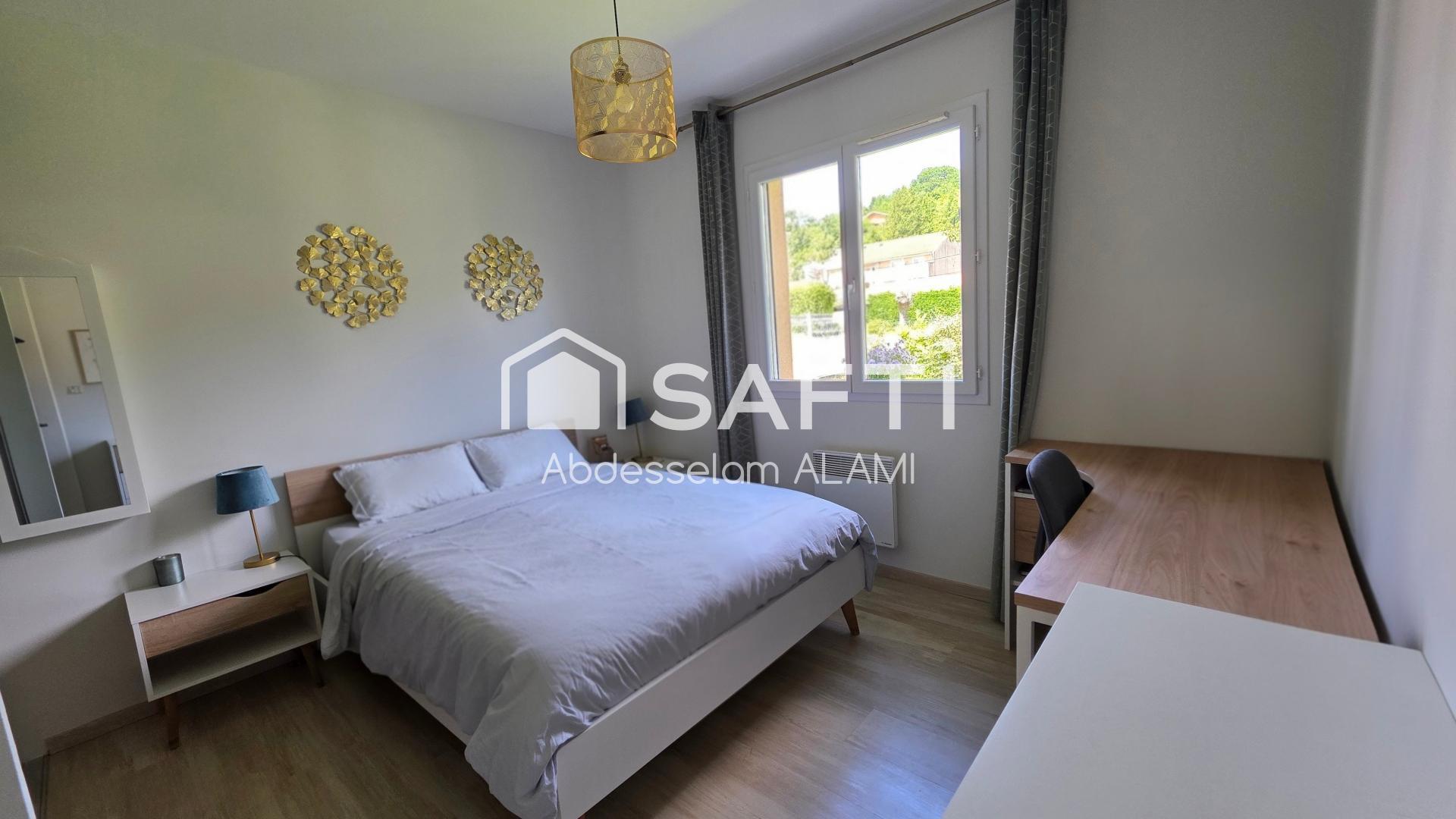 En exclusivité : Maison plain-pied de 114 m², jardin de 744 m² et prestations haut de gamme à Ambérieu-en-Bugey (01500) Découvrez cette magnifique maison de 114 m², une véritable perle de confort, idéalement située sur une parcelle de 744 m² entièrement close et arborée. Sécurisée par un portail électrique et une cour goudronnée, elle vous offre un cadre de vie privilégié et serein. Entièrement de plain-pied et baignée de lumière, elle s'ouvre sur une entrée accueillante, une vaste pièce de vie, harmonieusement agencée avec salon, séjour et une cuisine équipée moderne, le tout donnant un accès direct à une terrasse, parfaite pour les repas en extérieur et les moments de détente. Une grande buanderie fonctionnelle et un wc complètent cet espace de jour. Côté nuit, l'intimité est préservée avec trois chambres confortables, toutes bénéficiant d'une climatisation réversible centralisée gainée pour un confort optimal en toute saison. Une salle d'eau et un second wc indépendant. LES PLUS : un chauffage au sol, une climatisation réversible gainée pour un confort thermique idéal, et de l'ambiance chaleureuse d'un poêle à bois. Le tout dans un environnement calme, vous garantissant tranquillité et bien-être. Les informations sur les risques auxquels ce bien est exposé sont disponibles sur le site Géorisques : www.georisques.gouv.frPrix de vente : 341 000 ¤Honoraires charge vendeurContactez votre conseiller SAFTI : Abdesselam ALAMI, Tél. : 06 49 78 92 18, E-mail : abdesselam.alami@safti.fr - EI - Agent commercial immatriculé au RSAC de Bourg-en-Bresse sous le numéro 943105122.Informations LOI ALUR : Honoraires charge vendeur. (gedeon_26118_32526563)