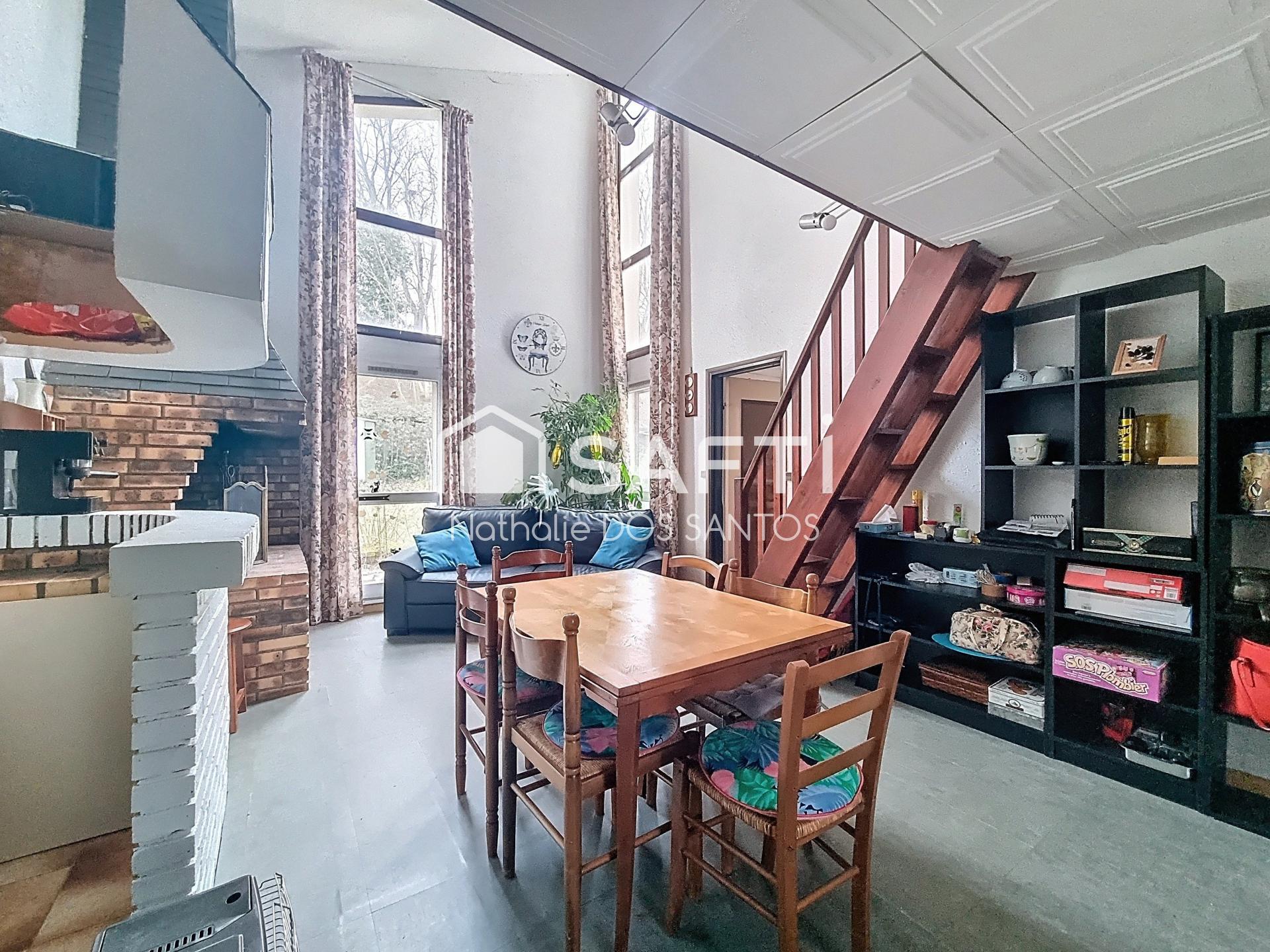 À Noisiel, situé dans le quartier pavillonnaire (Ferme du Buisson), venez découvrir cette maison d'environ 97 m² proche des transports (10-15 minutes à pied du RER Noisiel ou Lognes), écoles et commerces. Elle se compose d'une entrée avec rangements, un séjour cathédrale avec cheminée donnant sur une mezzanine, une cuisine, un cellier, une chambre, une salle d'eau, des toilettes. À l'étage, un palier dessert 2 chambres, une mezzanine (possibilité de créer une chambre supplémentaire dans la mezzanine), une salle de bain. À l'extérieur un jardin clos sans vis à vis, ainsi qu''un garage de 15 m². Le tout sur une parcelle de 222 m². Des travaux sont à prévoir pour donner tout le potentiel de cette maison aux volumes fonctionnels afin d'accueillir une famille. Les informations sur les risques auxquels ce bien est exposé sont disponibles sur le site Géorisques : www.georisques.gouv.frPrix de vente : 294 000 ¤Honoraires charge vendeurContactez votre conseiller SAFTI : Nathalie DOS SANTOS, Tél. : 06 64 03 11 53, E-mail : n.dossantos@safti.fr - EI - Agent commercial immatriculé au RSAC de MELUN sous le numéro 799790688.Informations LOI ALUR : Honoraires charge vendeur. (gedeon_26118_32675681)