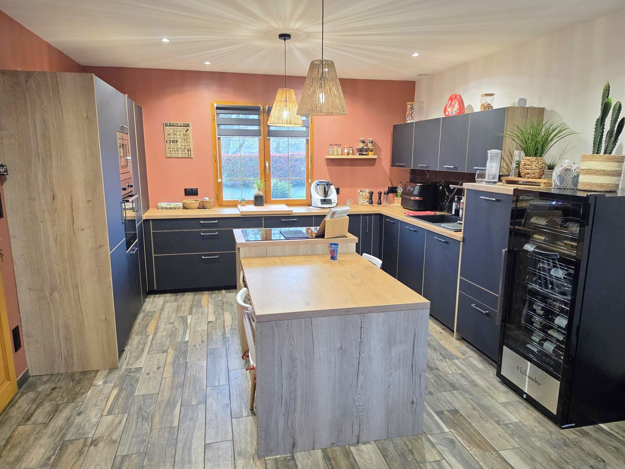 Dans un village avec école et commodités superbe pavillon en très bon état à vendre. Ce pavillon individuel avec vie de plain-pied de xxxxx m² propose les prestations suivantes : au rez-de-chaussée : entrée, cuisine aménagée et entièrement équipée ouverte sur salle / salon avec poêle à granulés, chambre, salle de douche avec double vasque, wc suspendu, dégagement, placard sous escalier. Au 1er étage avec plancher béton : palier, chambre, chambre avec balcon, dressing, salle de douche, wc, dégagement, en enfilade 2 chambres. Petit garage Cette construction de 2007 est édifiée sur un terrain plat de xxxxx m² avec terrasse carrelée, chalet bois.