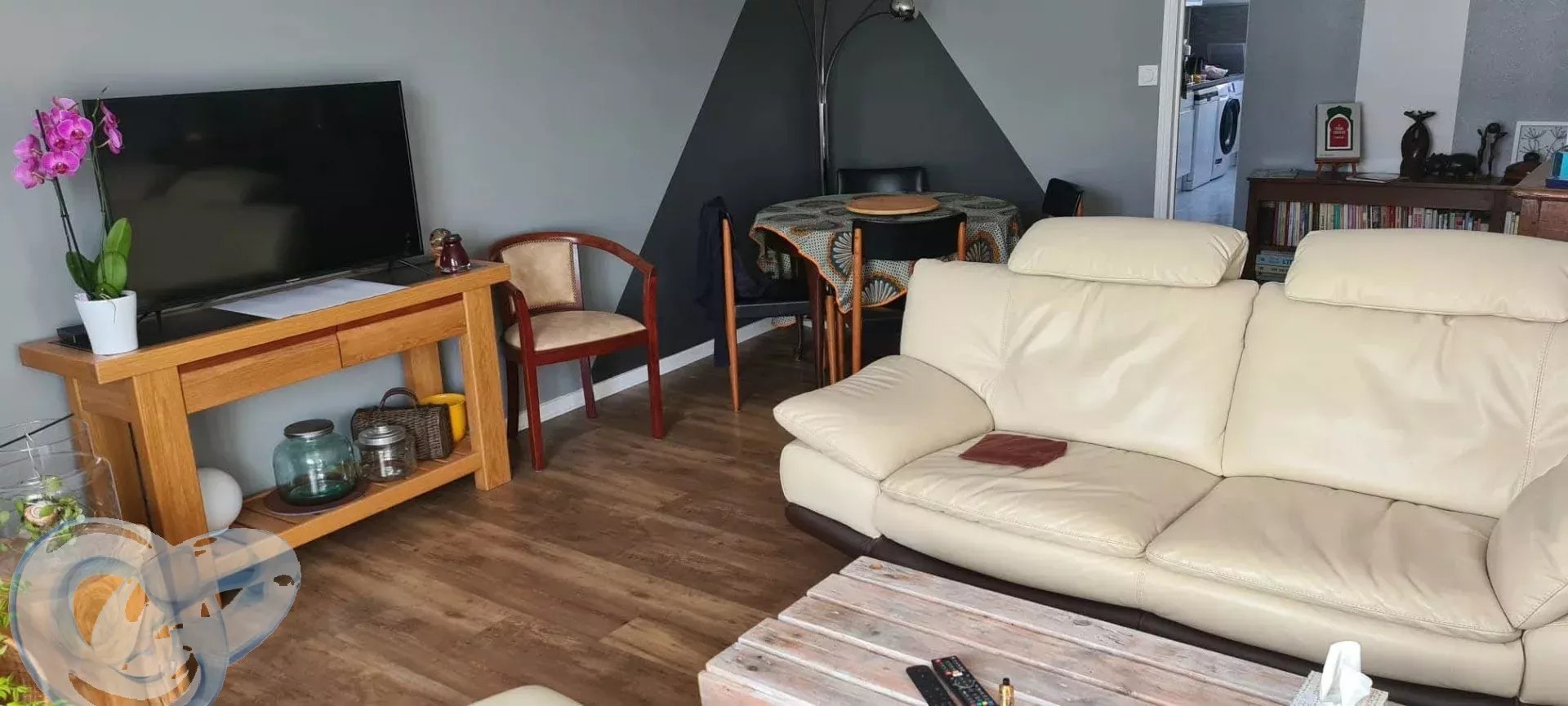 L’intérieur allie modernité et fonctionnalité avec une disposition qui optimise chaque mètre carré. Le salon accueillant est l’espace idéal pour se détendre, tandis que la cuisine adjacente, bien équipée, complète parfaitement l'ensemble. Vous apprécierez également les sols en parquet qui ajoutent une touche d'élégance.