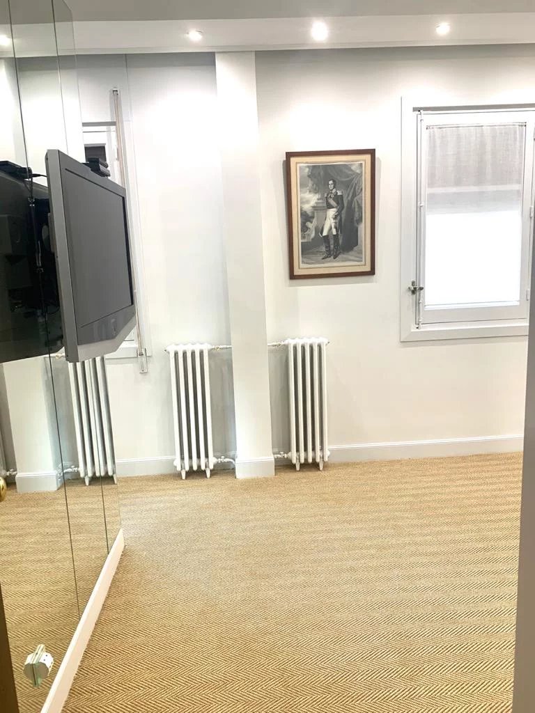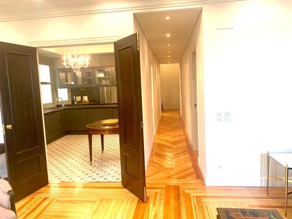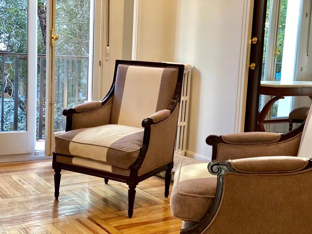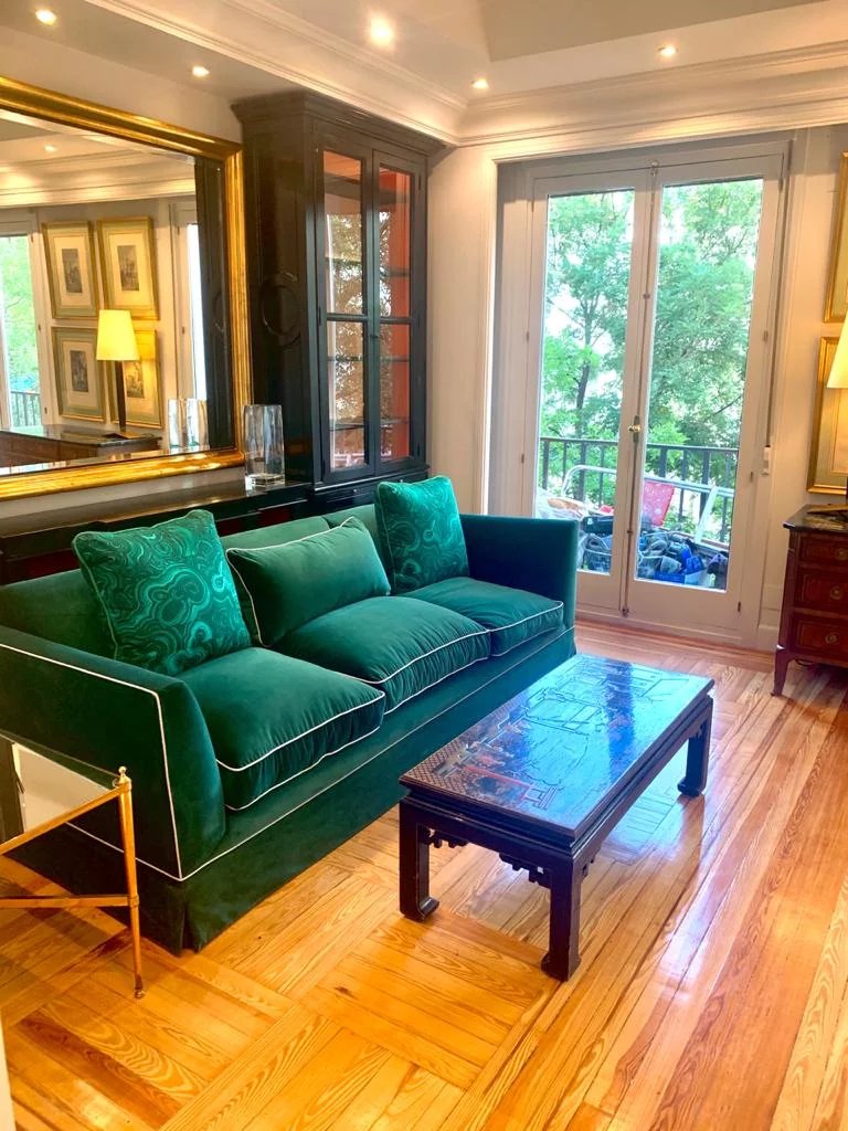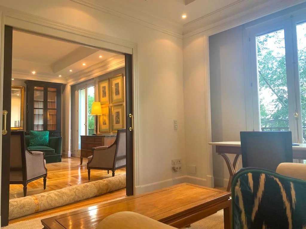 The layout currently includes 2 bedrooms, a study that can easily be converted into a third bedroom, 2 bathrooms, a separate living room and an independent kitchen. The building offers concierge service, central heating and air conditioning, with community fees of approximately €300 per month. A unique opportunity to acquire a character‑filled, light‑flooded property in the heart of Barrio de Salamanca, directly opposite Sanchez Romero Gourmet and surrounded by all amenities.