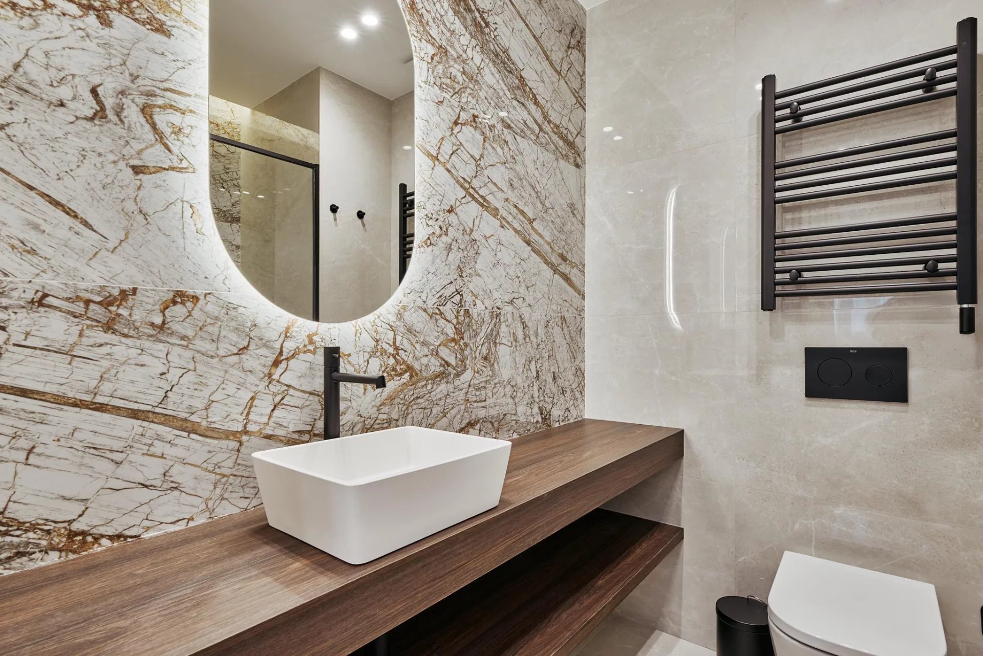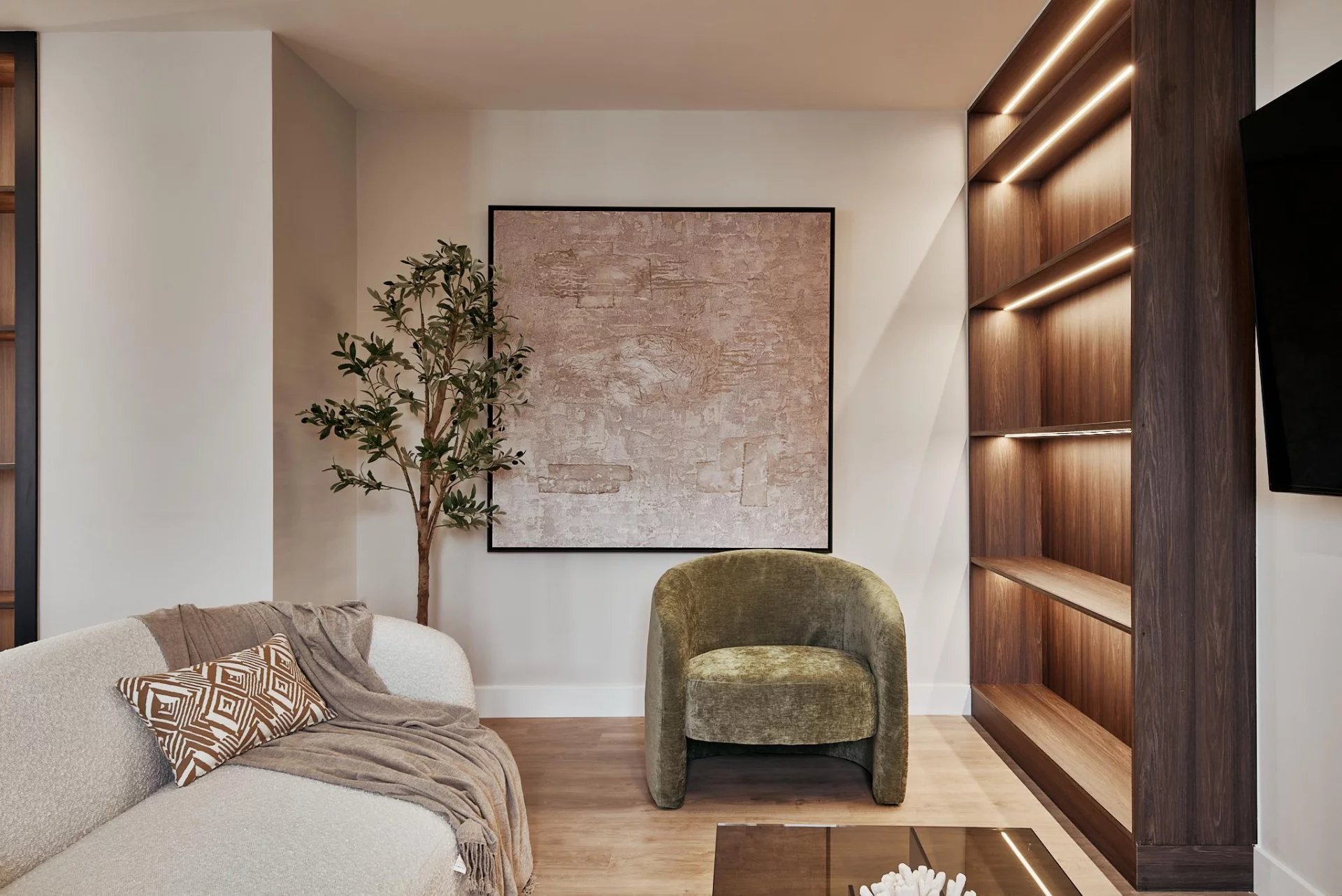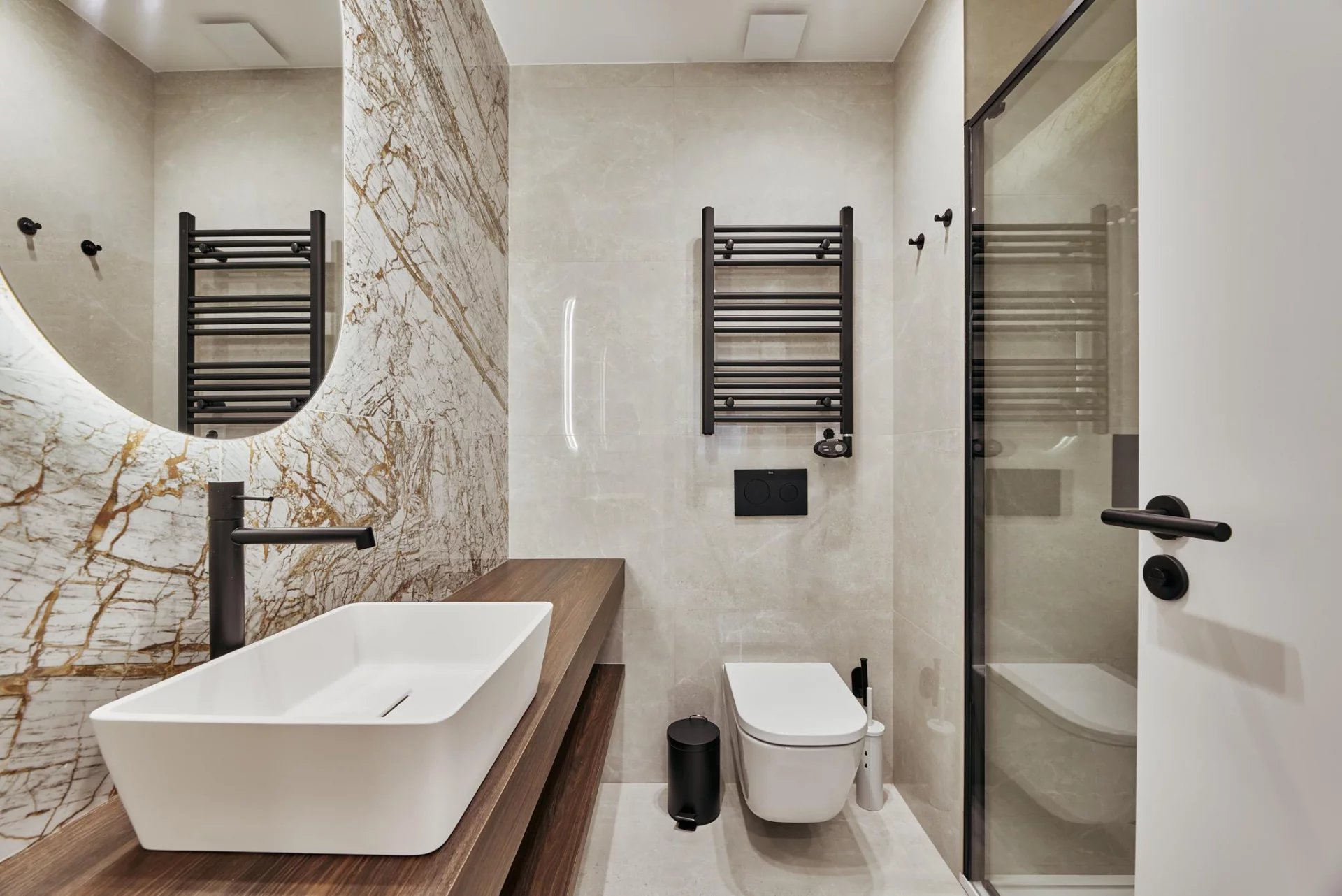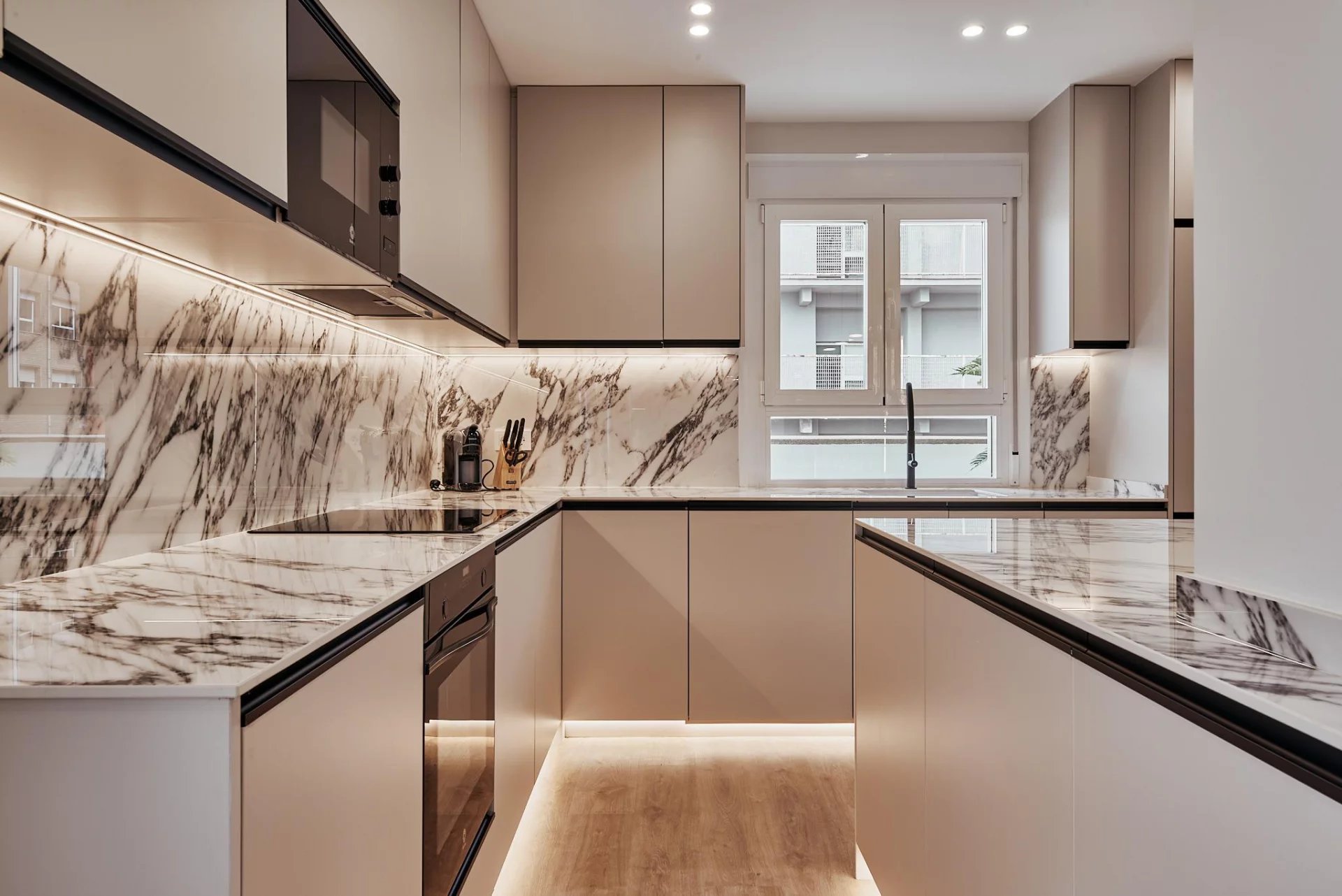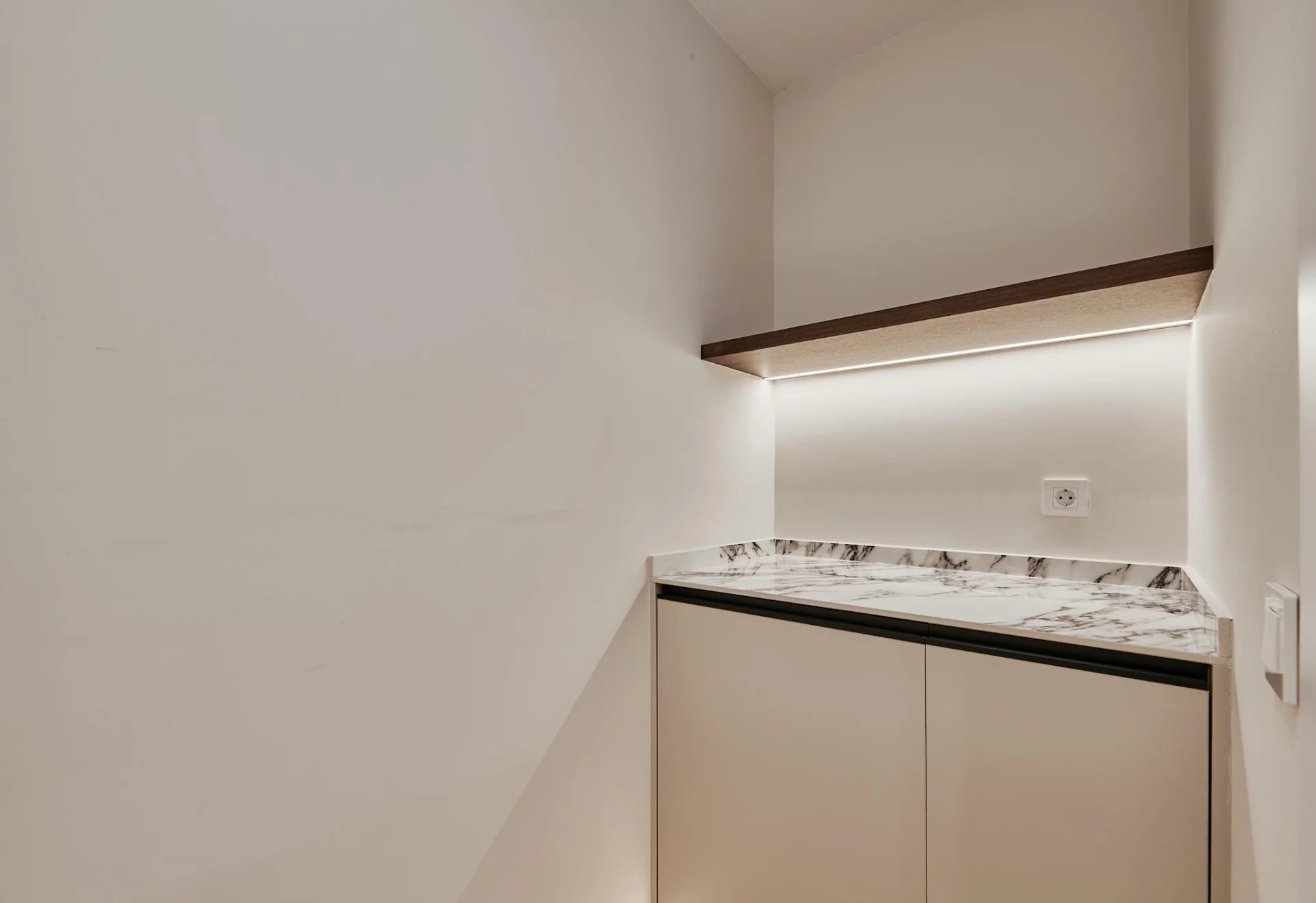 The day area opens to the exterior with a generous living‑dining room that connects directly to the terrace, and a fully fitted kitchen that includes a separate laundry room. The night area comprises three bedrooms and three full bathrooms, plus a walk‑in wardrobe that enhances the property’s comfort and residential feel.