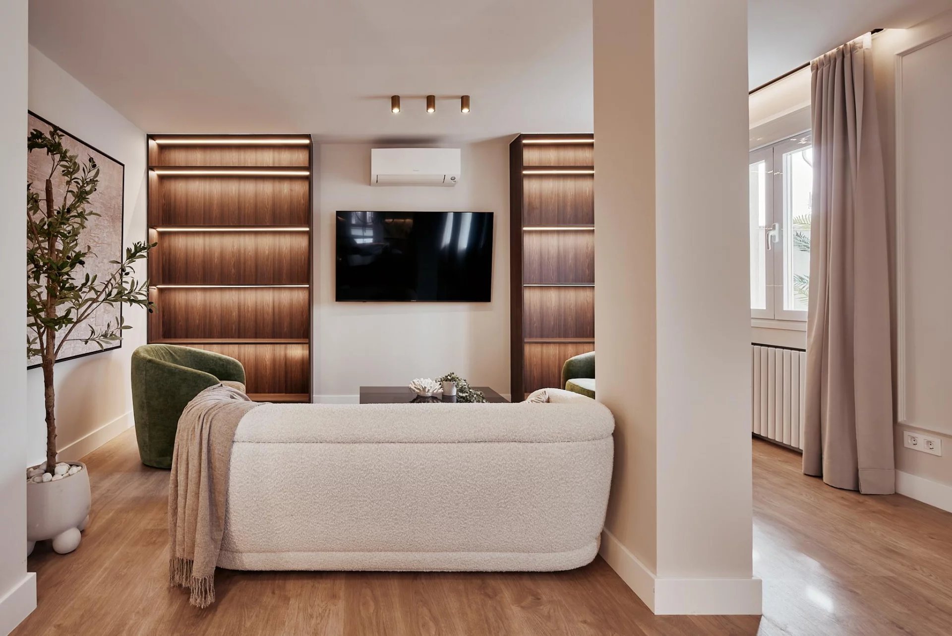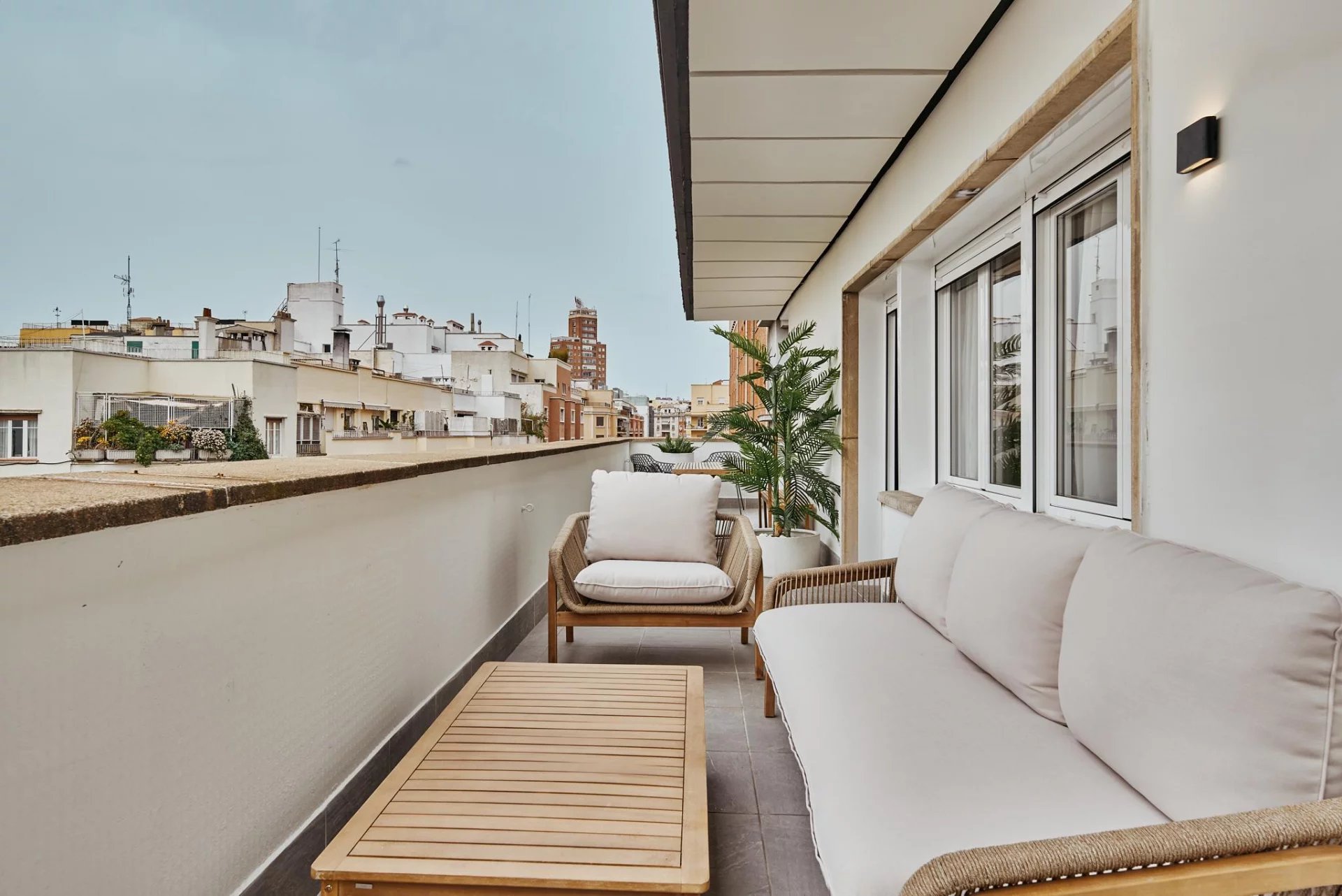 The apartment is delivered fully furnished, with central heating and split air‑conditioning, ensuring year‑round comfort. A move‑in‑ready home, ideal for those seeking height, light, and a unique outdoor space in one of Madrid’s most sought‑after locations.