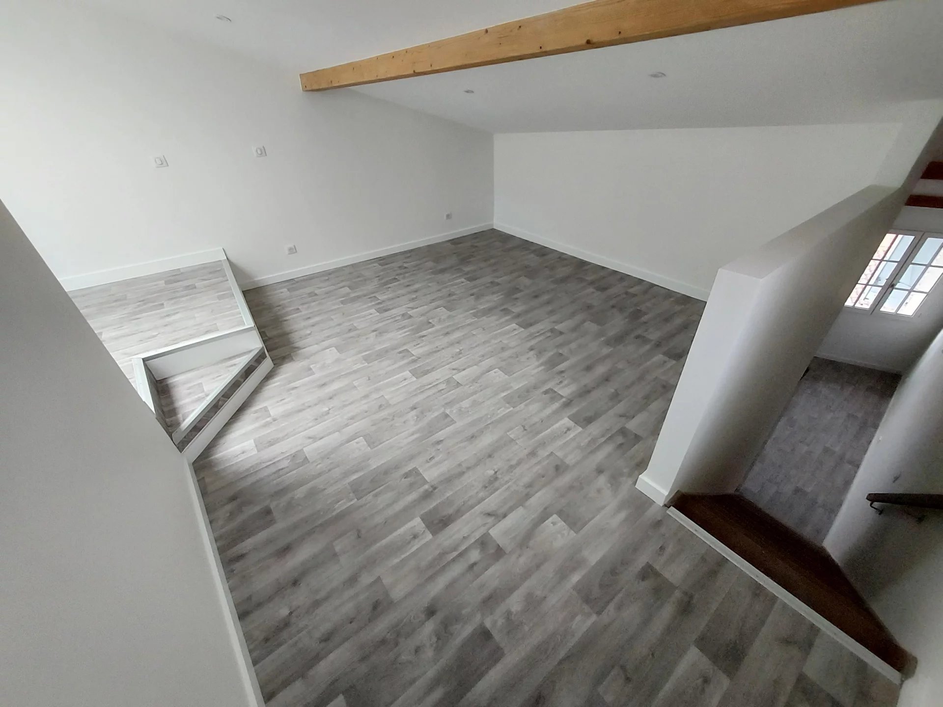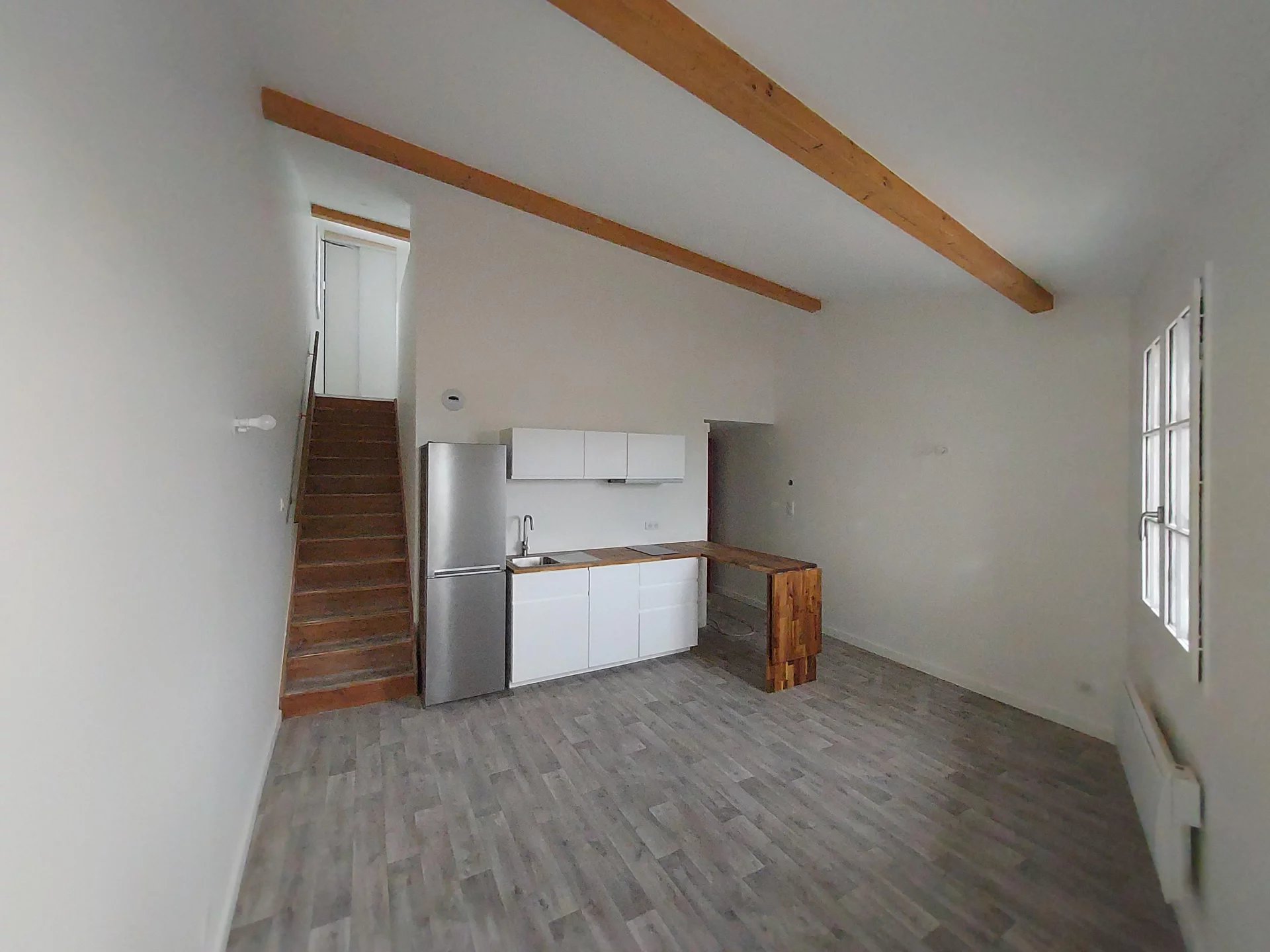 AUCH - Centre haute ville Dans immeuble sécurisé avec ascenseur. Appartement Type 2 en duplex au 4ème étage entièrement rénové, comprenant une cuisine équipée ouverte sur la pièce de vie, une salle d'eau avec wc. A l'étage une chambre avec placard et coin bureau. Cellier indépendant Climatisation réversible et radiateurs électriques Très jolie vue dominante. A deux pas de toutes les commodités! Surface loi carrez 36m² mais partie mansardée non comptée.