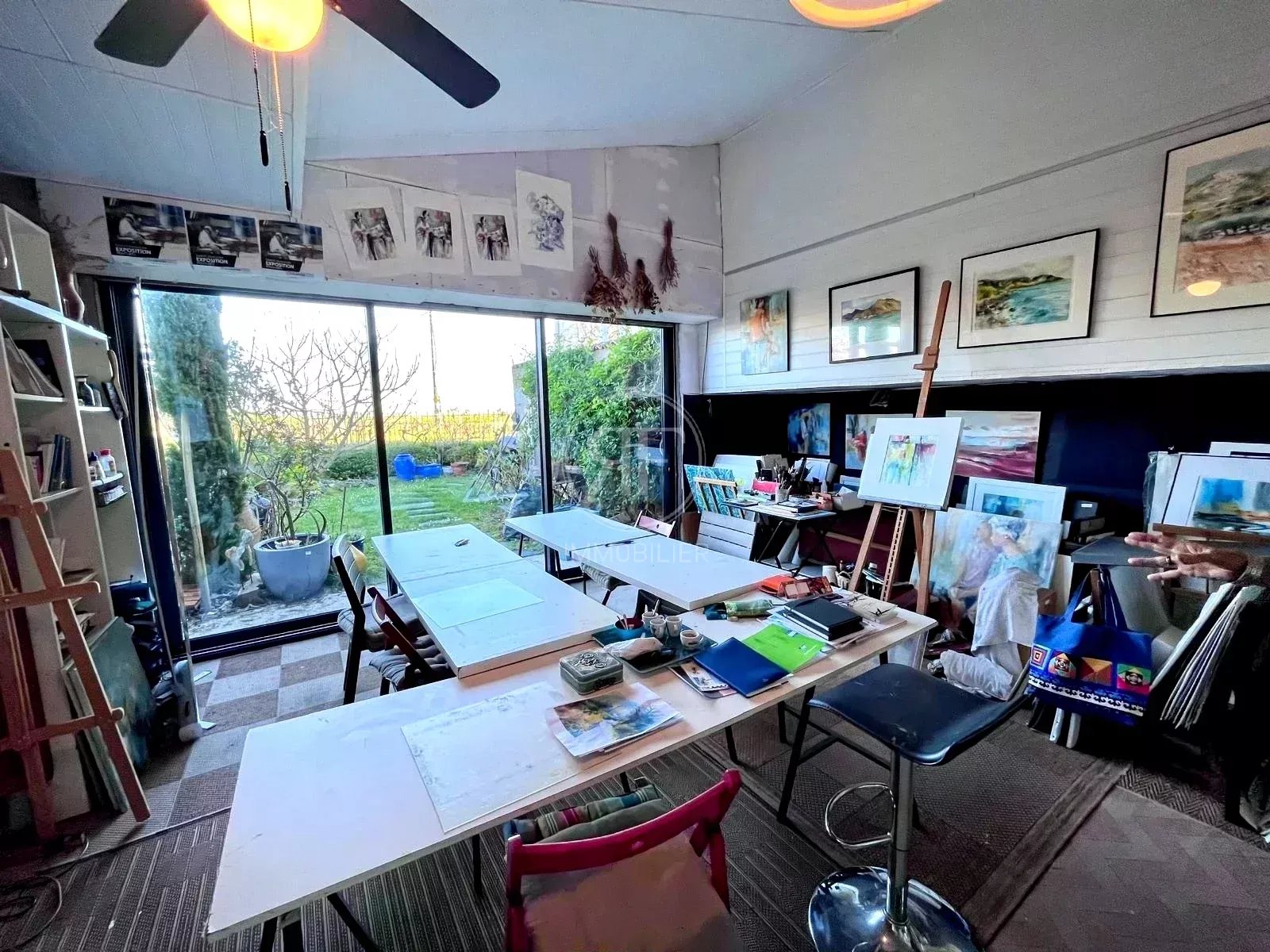 Annexé à la maison, une partie du garage a été aménagé en atelier avec une grande baie vitrée, pouvant servir d'espace de vie complémentaire.