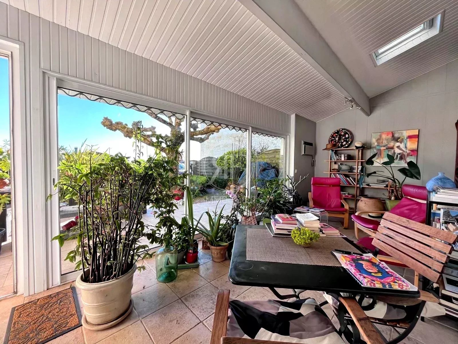 L l'accès à la maison s'effectue par un agréable jardin paysagé, puis par la véranda qui constitue une véritable pièce de vie supplémentaire baignée de lumière.