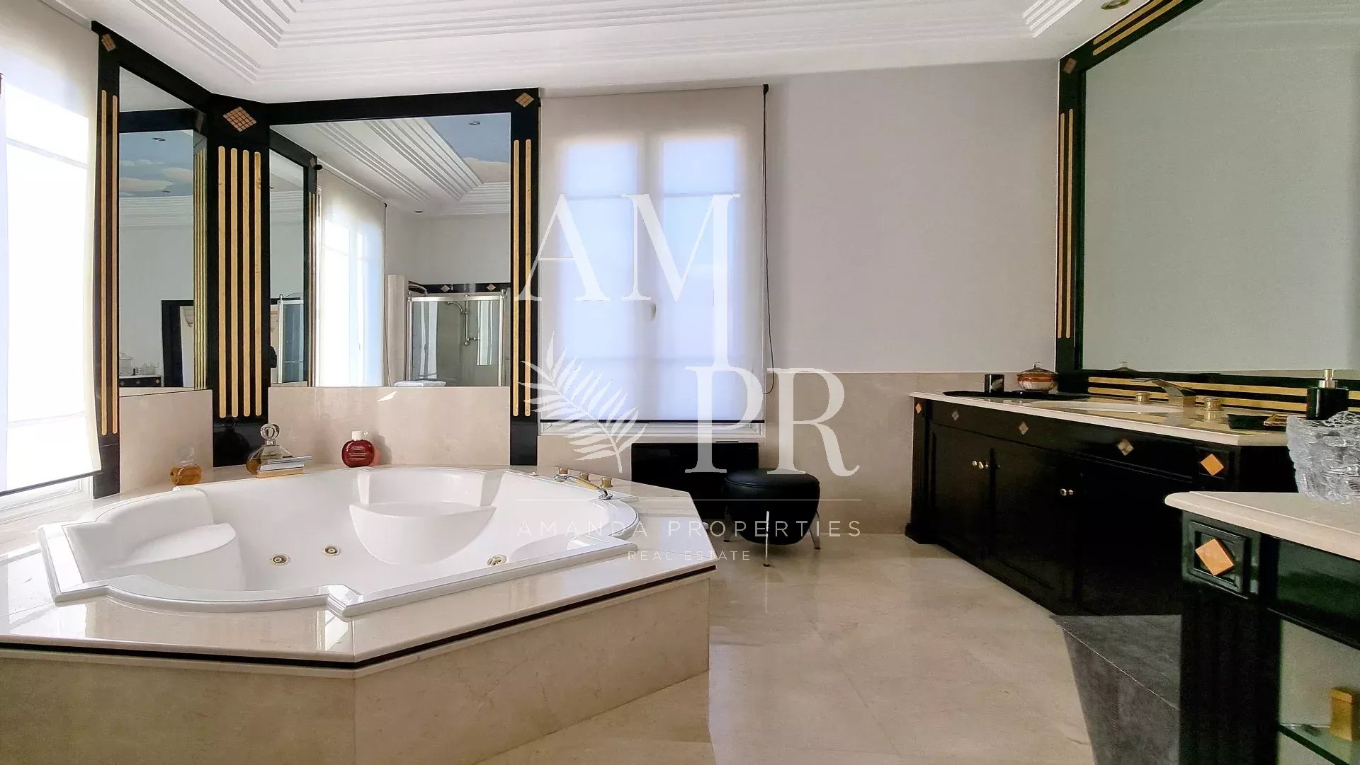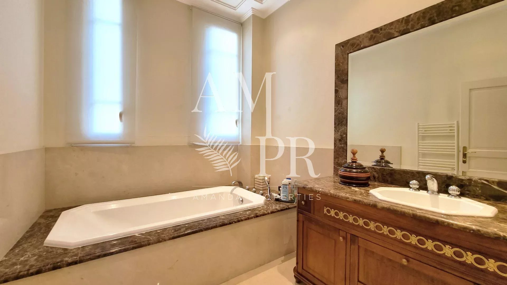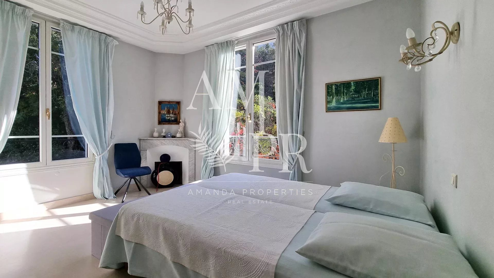 A quelques pas du centre ville, Amanda Properties vous propose cette propriété d'exception qui comprend une maison de maître de 253m² construite en 1928 et rénovée en 2000, ainsi qu’une maison d'invités indépendante de 97 m², entièrement rénovée en 2023 sur un terrain de 1403m². La maison principale offre des prestations luxueuses avec des sols en marbre, des finitions raffinées telles que des colonnes décoratives en feuille d’or. Elle se compose d'un double séjour avec cheminée, d’une cuisine équipée haut de gamme, plusieurs suites avec salles de bains en marbre, une magnifique chambre de Maître avec son jacuzzi. La maison d'invités se compose de trois chambres, un grand séjour avec sa cuisine américaine s'ouvrant sur une spacieuse terrasse de 57 m². Un grand garage et plusieurs places de stationnement au sein de la propriété.