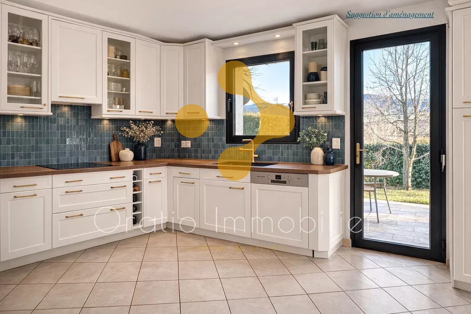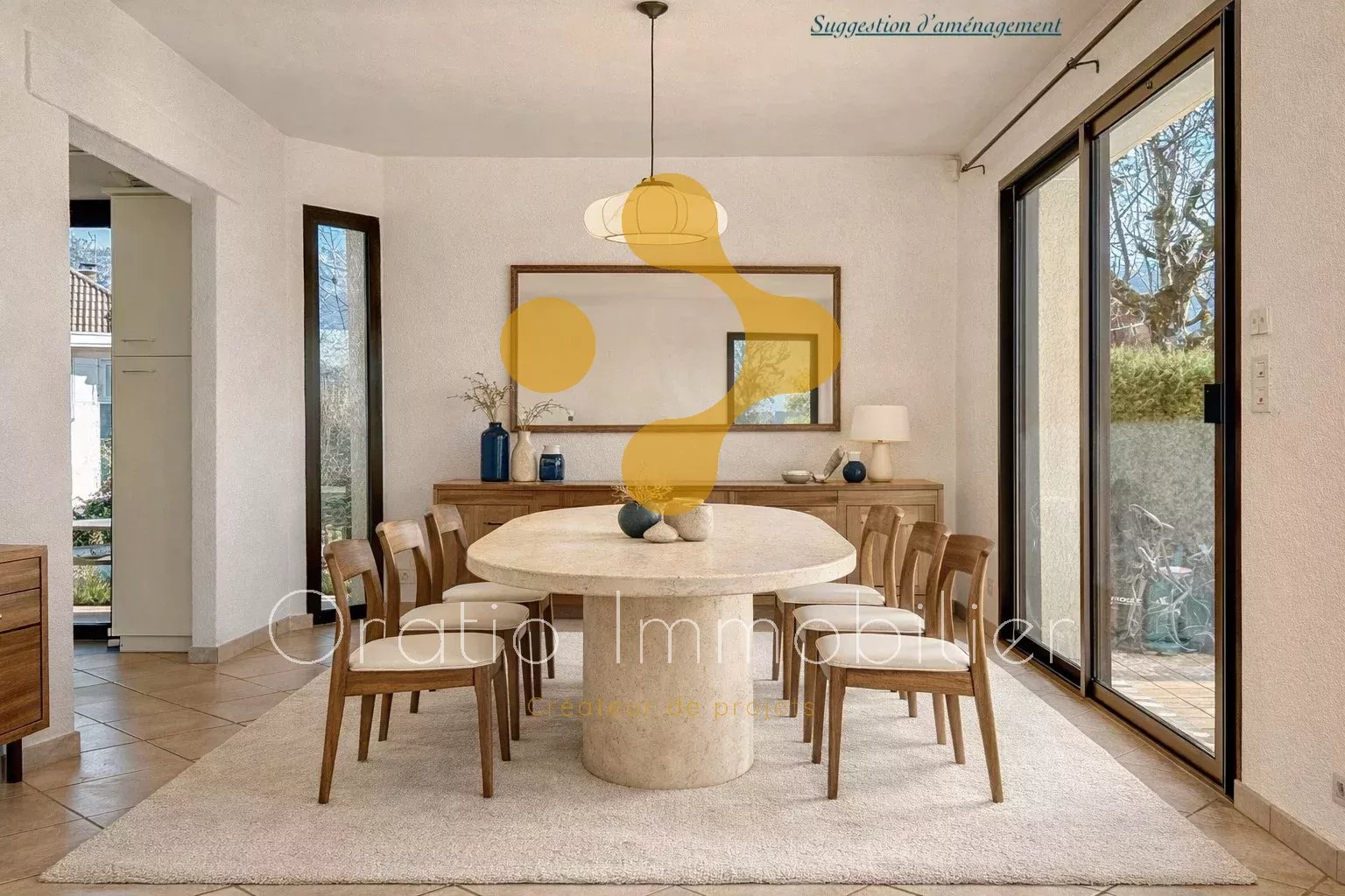 Découvrez sans tarder cette superbe villa familiale située à Présilly, proche de Feigères, dans un lotissement calme et résidentiel très prisé, en direction de la frontière genevoise. Cette villa d'architecte construite en 1994 d’environ 160m² utiles (140m2 habitables), propose un vaste séjour très lumineux, quatre belles chambres dont une au rez-de-chaussée, 3 salles d'eau, une cuisine aménagée, et un grand espace extérieur paysagé de plus de 1000m2. Avec une exposition sud-ouest offrant une magnifique vue sur le village et la campagne, elle convient parfaitement aux familles en quête de calme, d'ensoleillement et d’espace. La maison, parfaitement entretenue, bénéficie également d’un sous-sol complet d'environ 78m2 comprenant garage, buanderie, cave à vin, atelier, chaufferie, et dressing, permettant d’aménager de nombreux espaces à votre convenance.