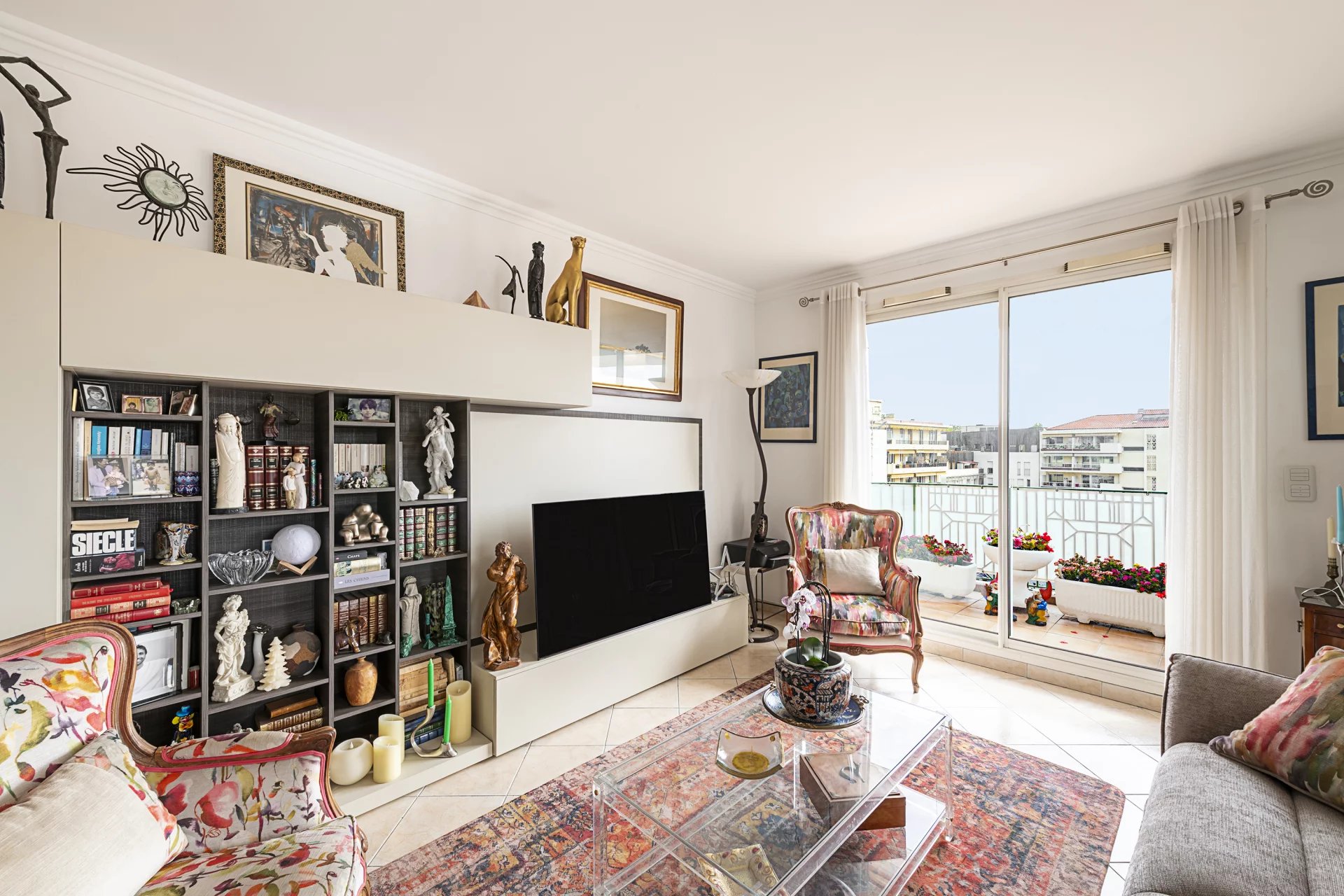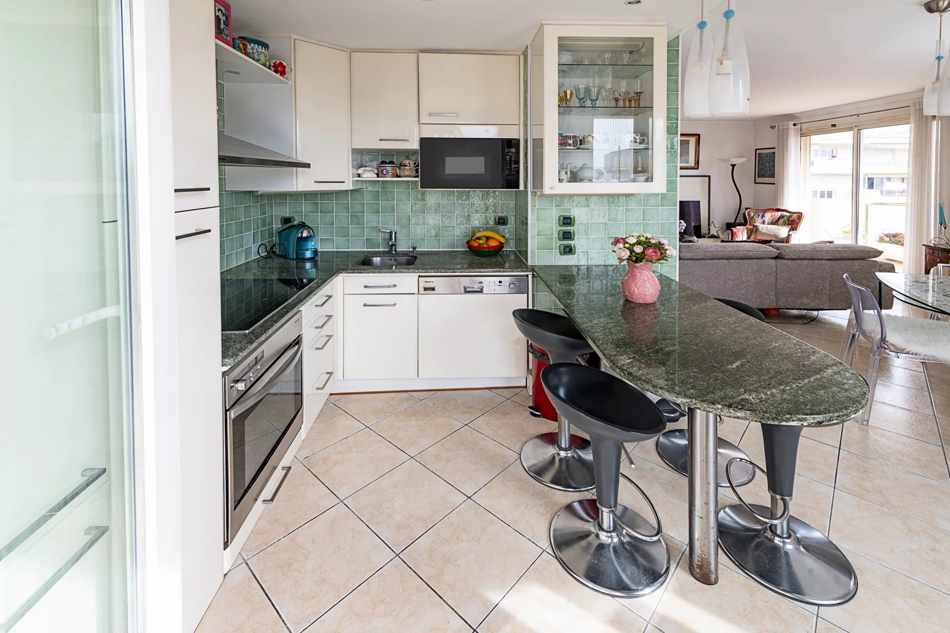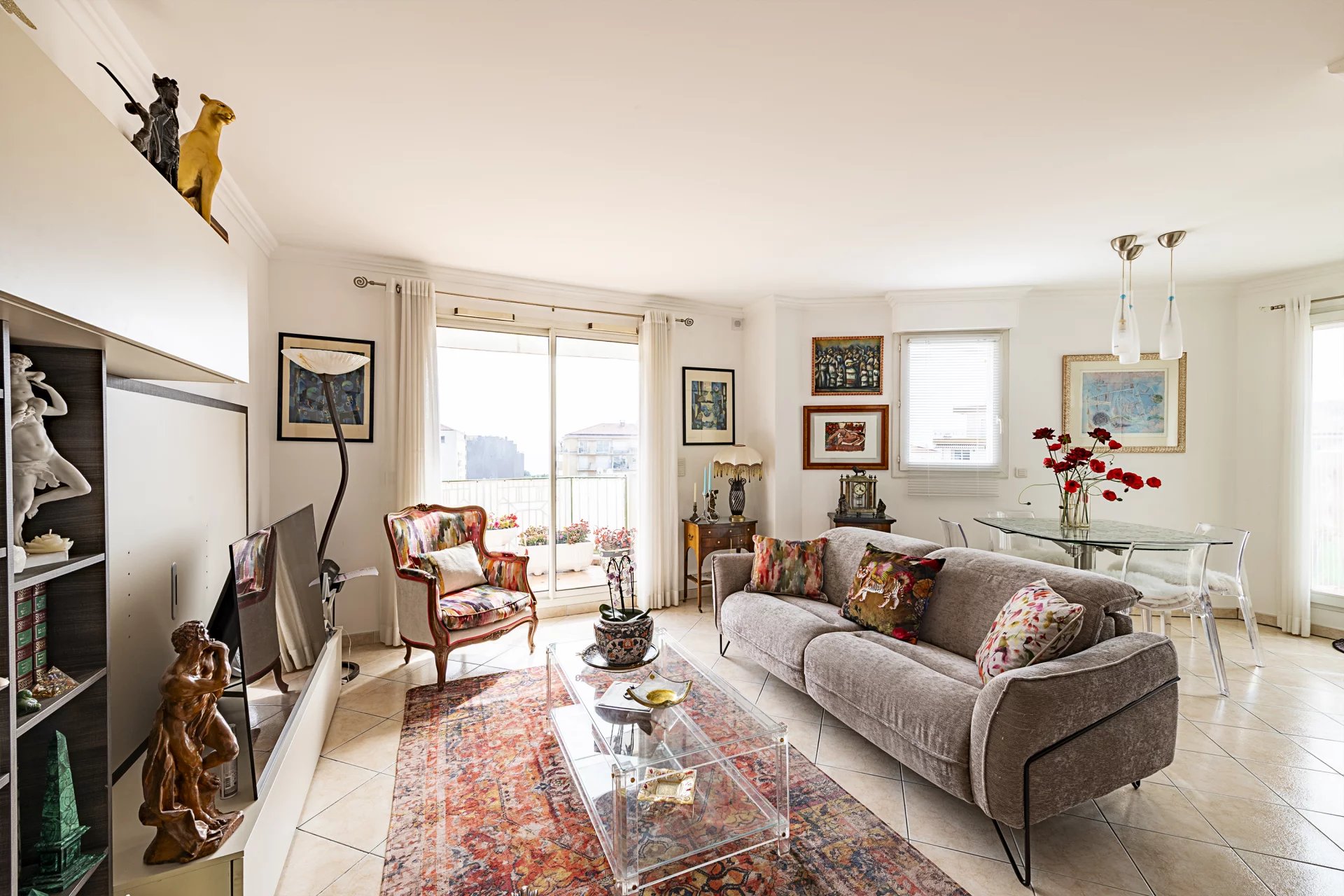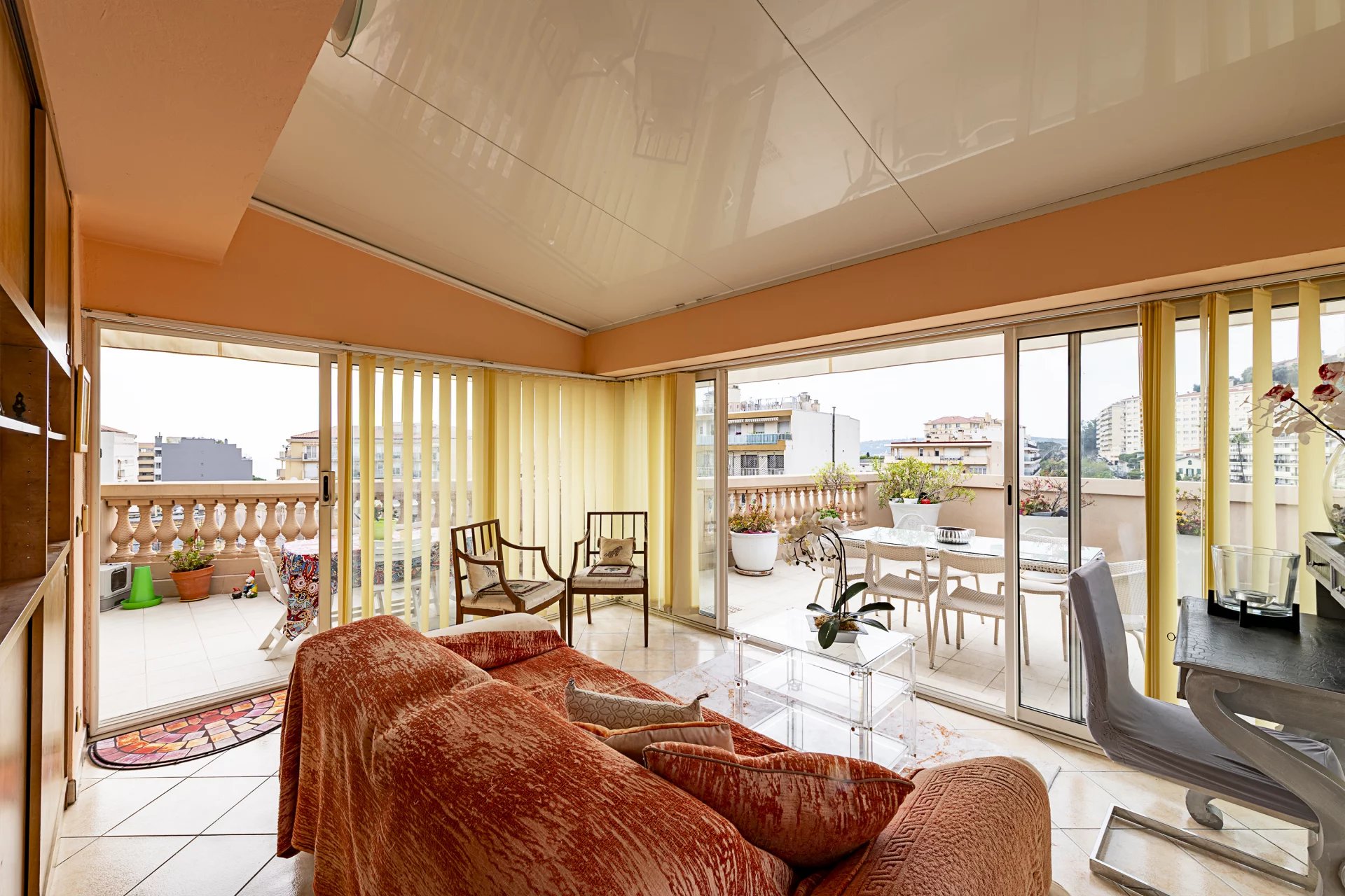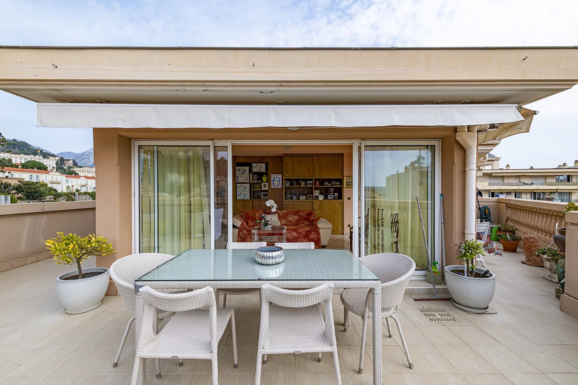 Atout majeur de ce bien : une exceptionnelle terrasse de 60 m² de plain-pied, offrant une vue dégagée avec aperçu mer, idéale pour profiter pleinement du climat azuréen.
