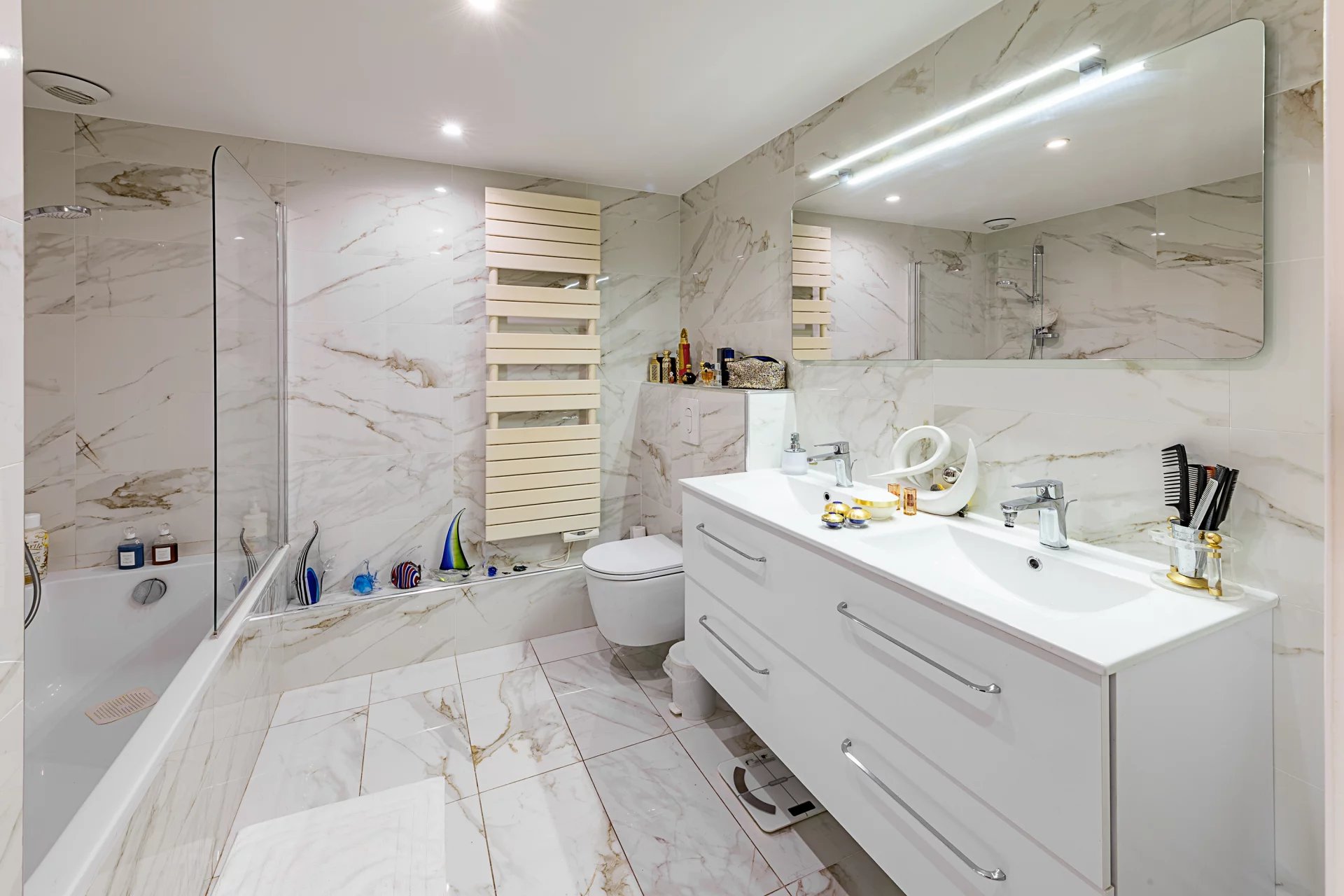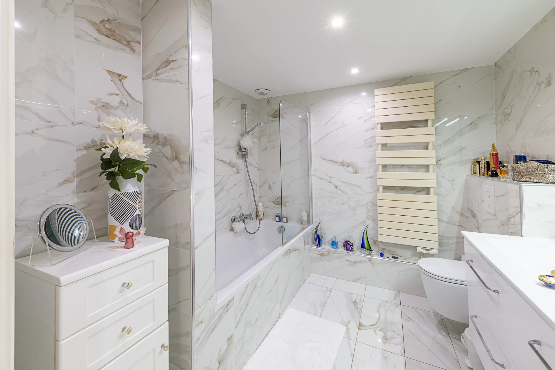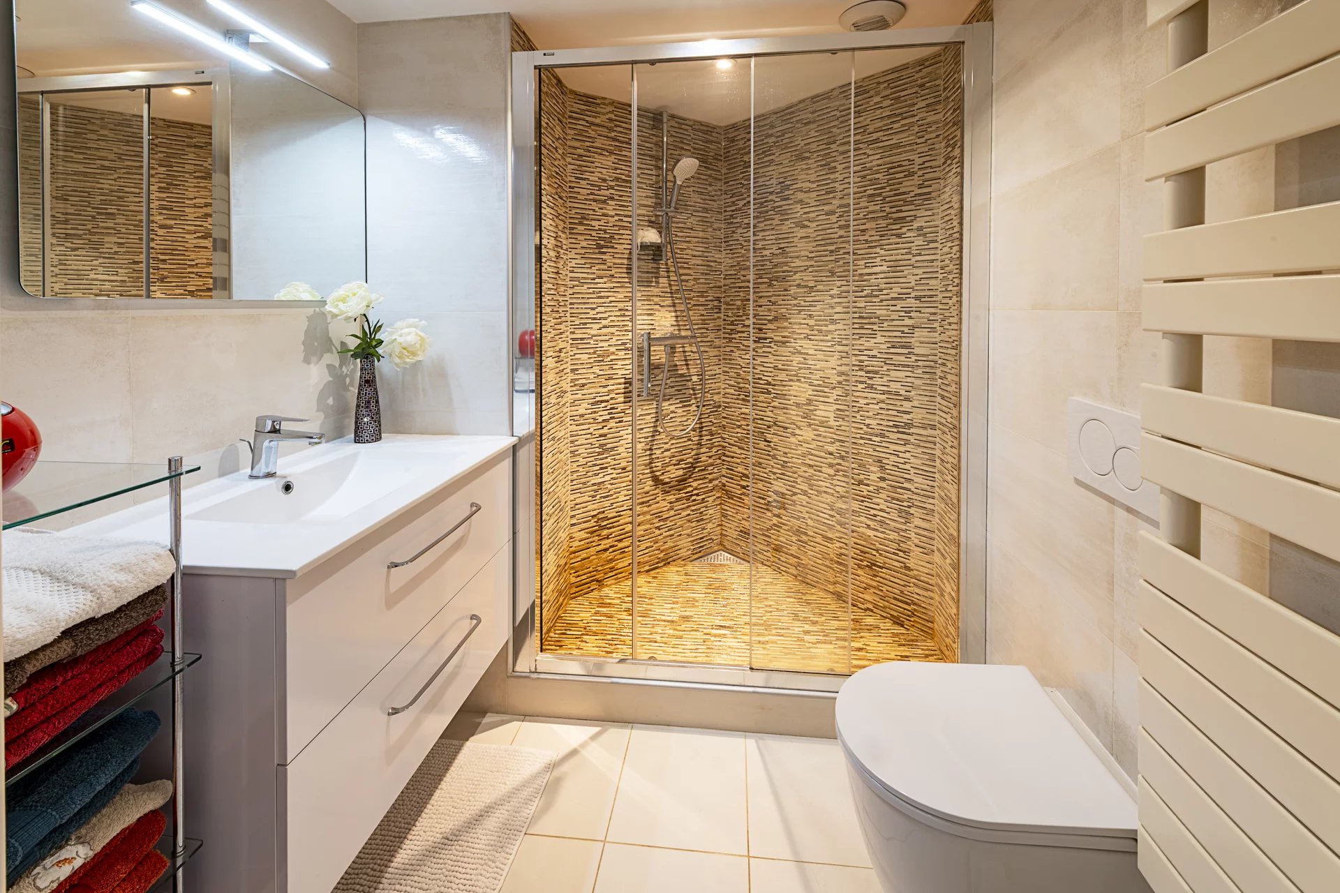 En excellent état, proche du neuf, l’appartement propose des prestations de qualité : climatisation, double vitrage, stores et volets électriques.