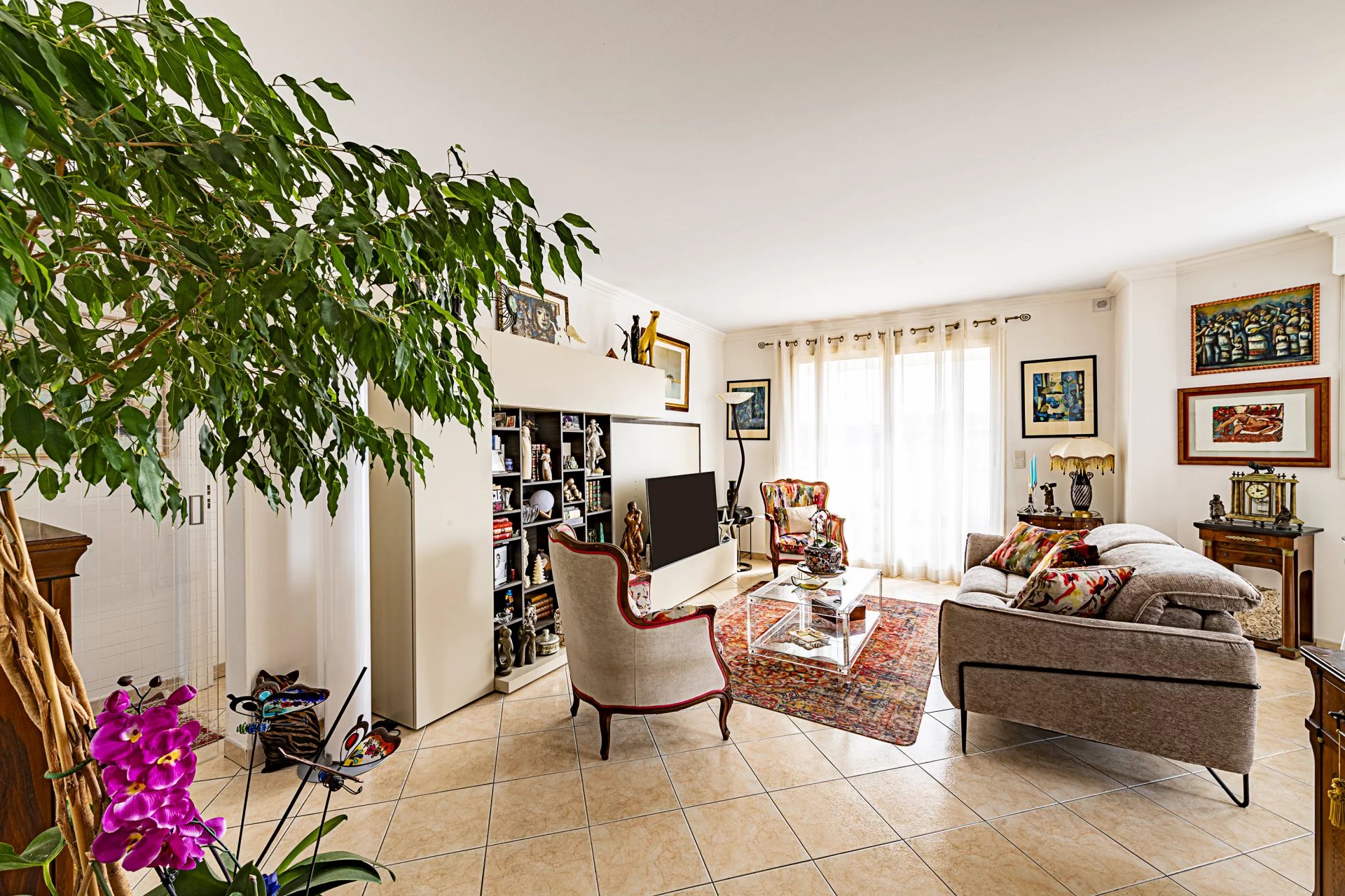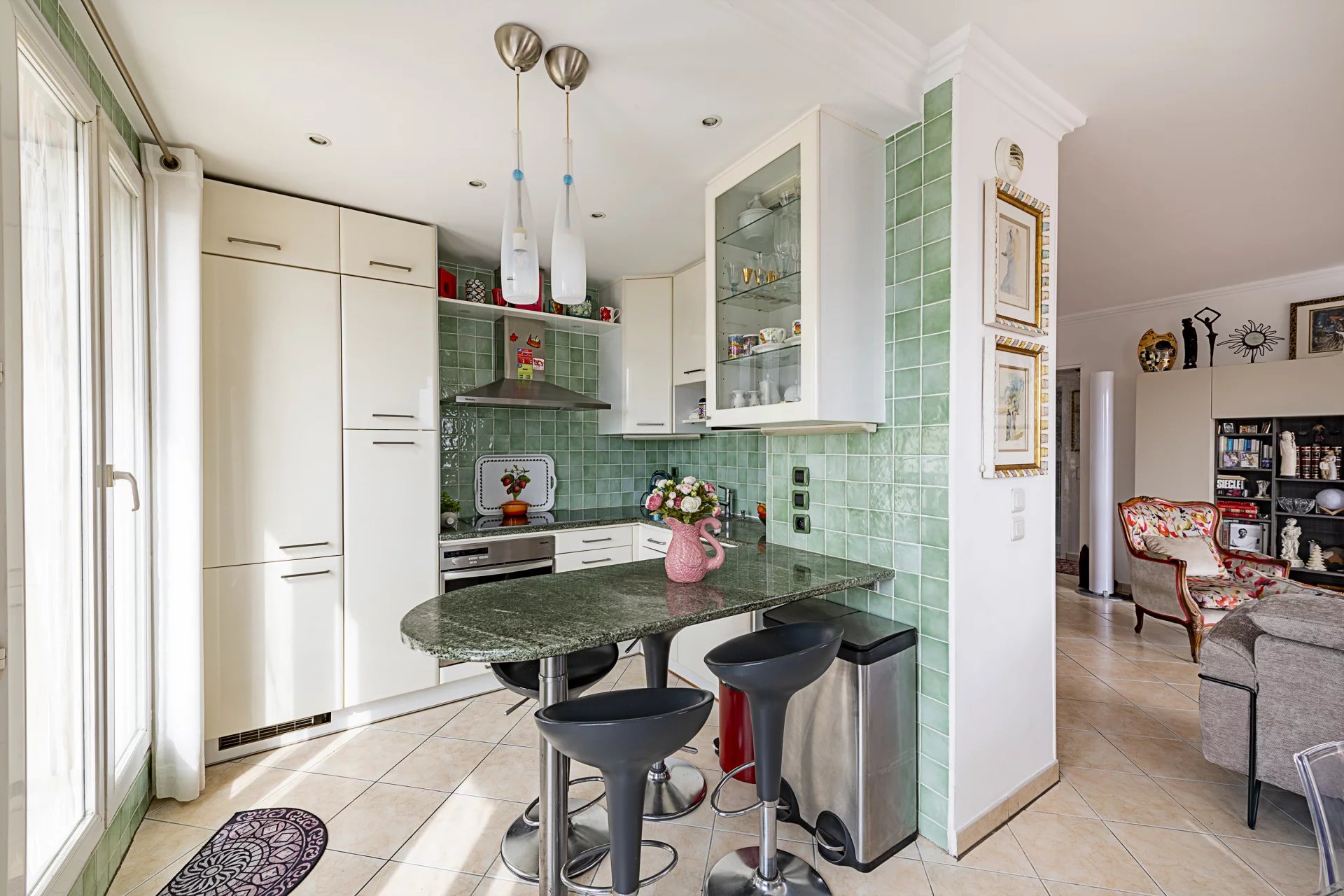 L’appartement se compose d’un séjour spacieux et lumineux, d’une cuisine américaine entièrement équipée, de trois chambres, d’une salle de bains avec WC, d’une salle d’eau avec WC, d’une buanderie ainsi que de nombreux rangements.