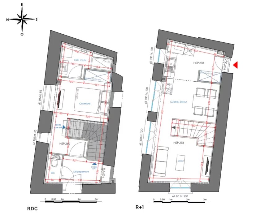 Cet appartement se compose en niveau haut d´un espace de vie avec cuisine moderne semi-équipée (meubles, rangements, plan de travail, plaque cuisson...), d´un espace dinatoire ainsi que d´un espace salon-séjour.