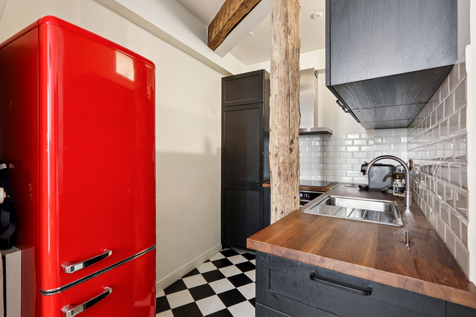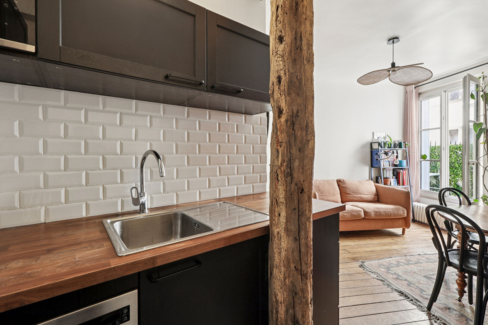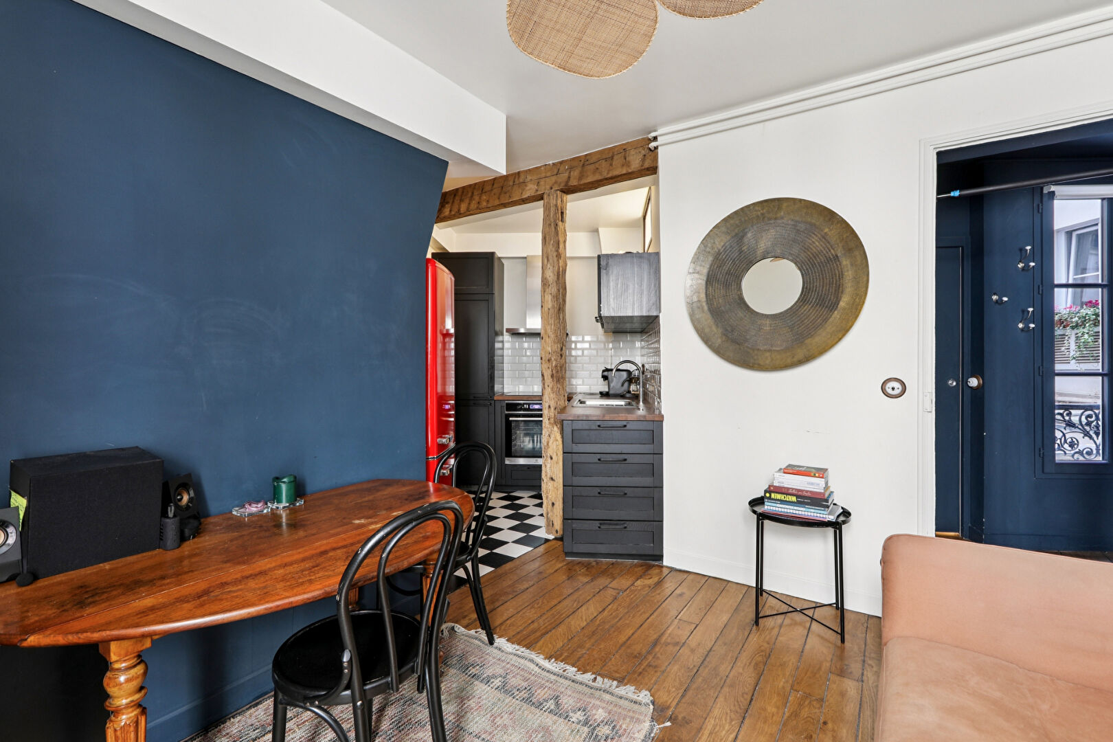 Charmant 2 pièces avec petit extérieur, situé à deux pas du Jardin du Luxembourg, dans une cour calme du quartier Odéon au 1er étage d'un bel immeuble bien entretenu. L'appartement se compose d'une entrée qui dessert une pièce de vie avec cuisine ouverte, une chambre, une salle d'eau et un wc indépendant. Le charme des poutres apparentes a été préservé et le bien a été rénové avec soin. Débarras sur le palier et cave complètent ce logement. Idéal pied-à-terre ou investissement de charme. (4.39 % honoraires TTC à la charge de l'acquéreur.) Copropriété de 42 lots - dont 19 lots habitation. Charges annuelles : 1800 euros.