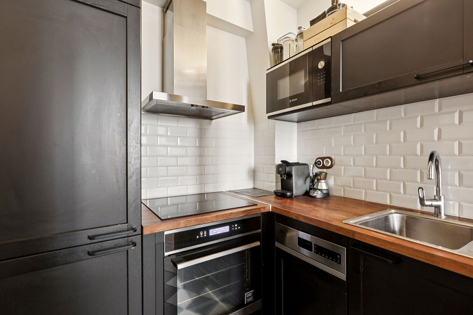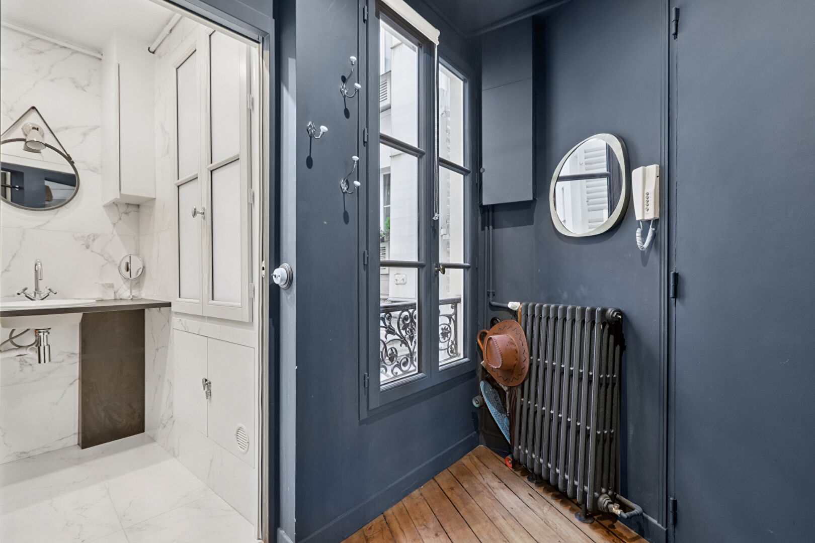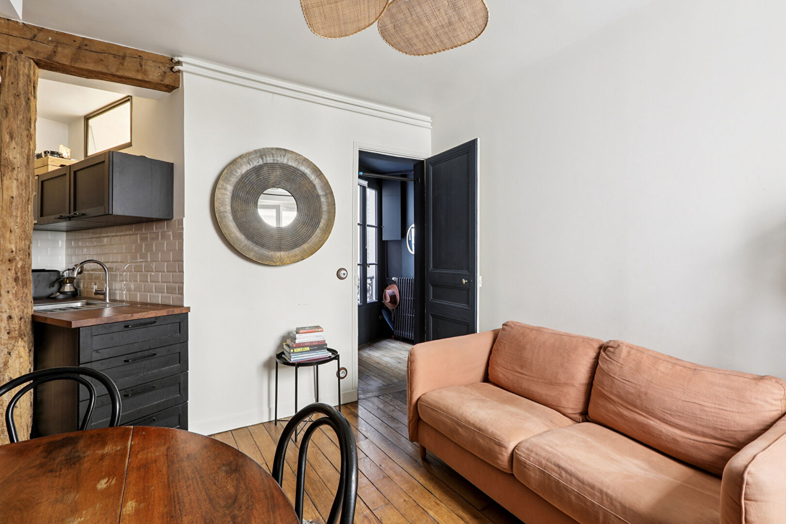 Charmant 2 pièces avec petit extérieur, situé à deux pas du Jardin du Luxembourg, dans une cour calme du quartier Odéon au 1er étage d'un bel immeuble bien entretenu. L'appartement se compose d'une entrée qui dessert une pièce de vie avec cuisine ouverte, une chambre, une salle d'eau et un wc indépendant. Le charme des poutres apparentes a été préservé et le bien a été rénové avec soin. Débarras sur le palier et cave complètent ce logement. Idéal pied-à-terre ou investissement de charme. (4.39 % honoraires TTC à la charge de l'acquéreur.) Copropriété de 42 lots - dont 19 lots habitation. Charges annuelles : 1800 euros.