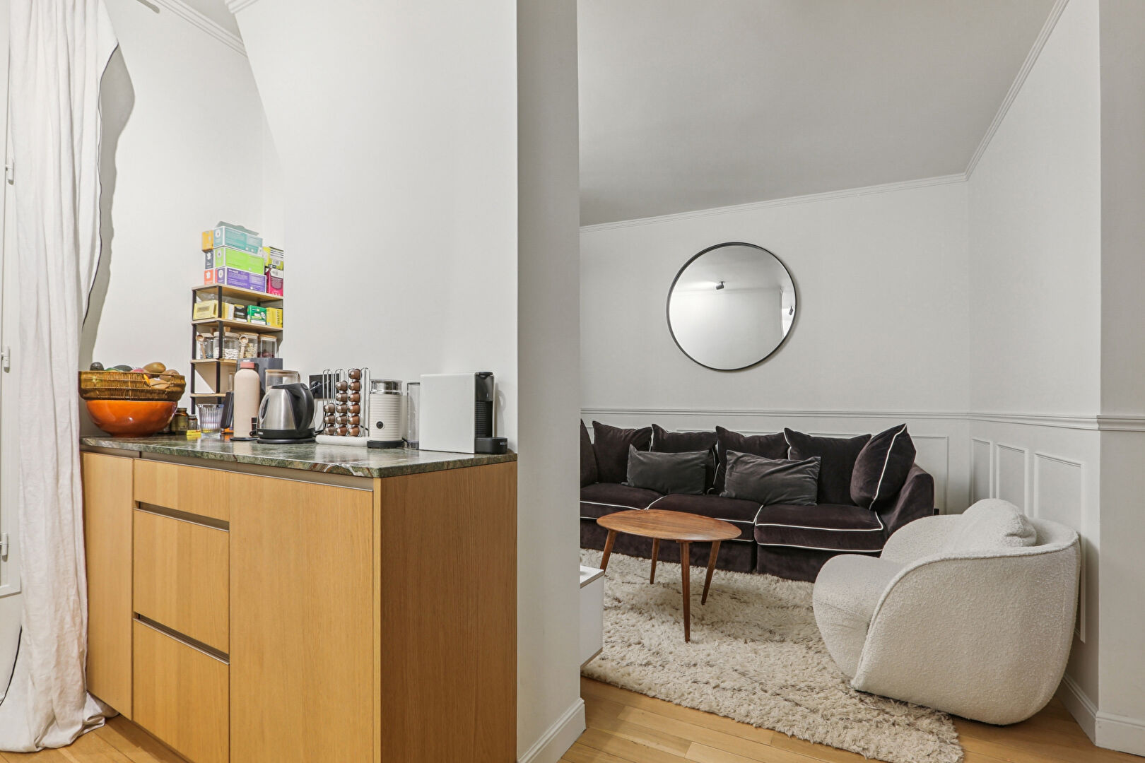EXCLUSIVITÉ PARIS 6 -RUE JULES CHAPLAIN A deux pas du Jardin du Luxembourg, dans un environnement recherché et calme, découvrez ce magnifique appartement de 35 m², entièrement rénové par architecte. Situé au 3e étage sans ascenseur d'un immeuble parisien bien entretenu, ce bien se compose de : une entrée, un double séjour lumineux avec cuisine américaine entièrement équipée et coin repas, une chambre au calme, une salle d'eau, des WC indépendants, ainsi qu'une cave en annexe. Appartement clé en main, optimisé et élégant, offrant de belles prestations. Idéal pour un pied-à-terre, un premier achat ou un investissement de qualité dans l'un des quartiers les plus prisés de la Rive Gauche. (4.84 % honoraires TTC à la charge de l'acquéreur.) Copropriété de 24 lots - dont 12 lots habitation. Charges annuelles : 2128 euros.