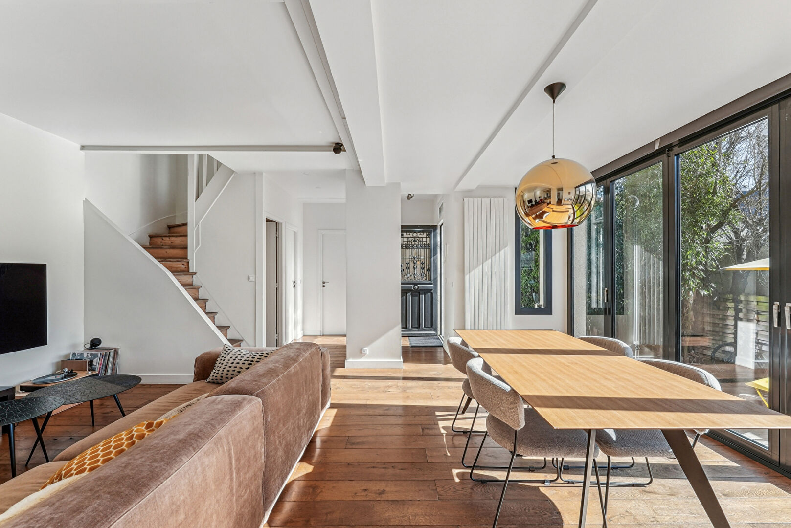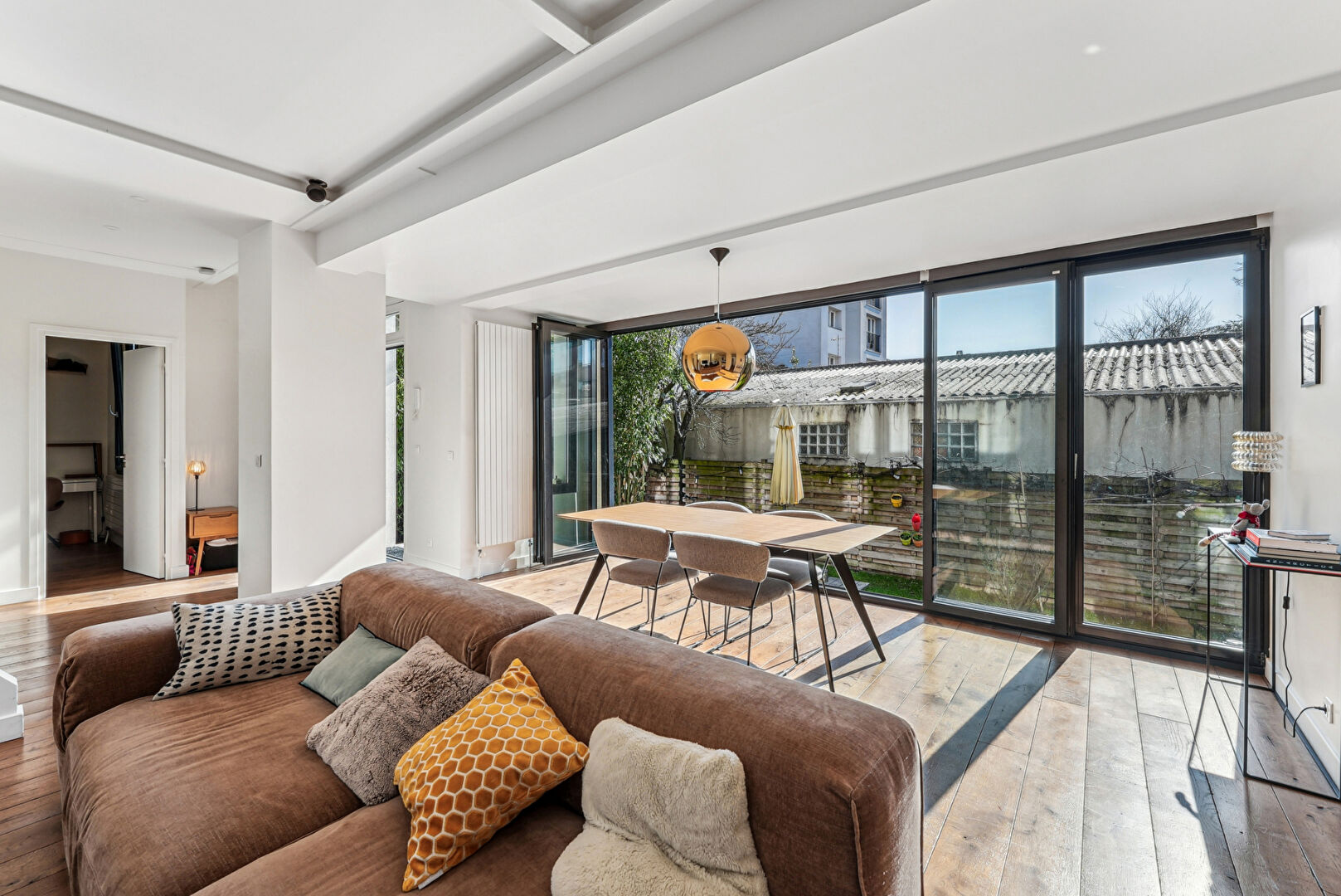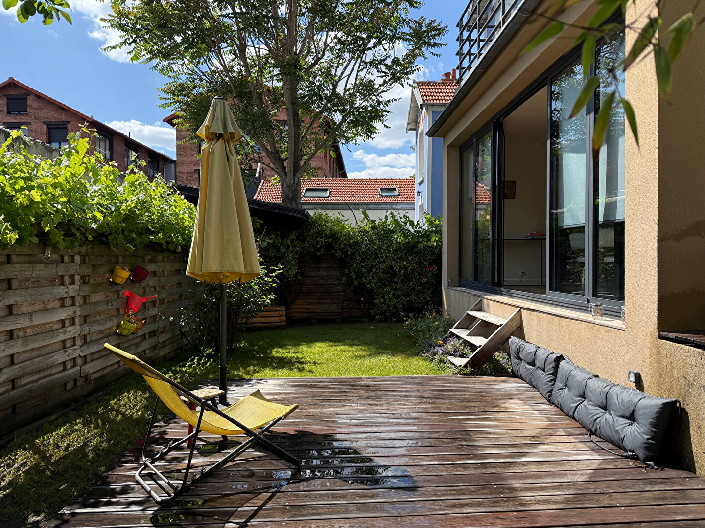 Située à 100 mètres du métro Croix-de-Chavaux, dans une rue calme et arborée, cette maison indépendante de 165,51 m² habitables, entièrement repensée par un architecte, offre un cadre de vie rare et recherché à Montreuil. Nichée au coeur d'un îlot de verdure, elle bénéficie d'un jardin privatif de 70 m² exposé plein sud, sans vis-à-vis. Au rez-de-chaussée, une entrée mène à un vaste espace de vie baigné de lumière, composé d'un double séjour et d'une cuisine ouverte aménagée, s'ouvrant largement sur l'extérieur grâce à de grandes baies vitrées escamotables. Un bureau de 10 m² avec dressing, pouvant faire office de quatrième chambre, ainsi qu'un WC avec point d'eau, complètent ce niveau. Le premier étage comprend une suite parentale avec salle de douche à l'italienne, double dressing et terrasse, ainsi qu'une seconde chambre disposant d'un espace mezzanine idéal pour un coin enfant. Une salle de bains indépendante et des toilettes séparées assurent le confort de ce niveau. Au deuxième étage, une grande chambre avec dressing et terrasse offre de multiples possibilités d'usage : chambre supplémentaire, salle de sport ou atelier selon les besoins. Un sous-sol aménagé de 30 m² propose une grande buanderie, une cave à vin et des espaces de rangement. Rénovée avec soin, cette maison allie matériaux de qualité (parquet en chêne massif, huisseries aluminium, grès cérame), volumes généreux, lumière naturelle et calme absolu. Le bien est situé à proximité immédiate des commerces, du marché, d'infrastructures sportives et du groupe scolaire Marcellin Berthelot. Le bois de Vincennes et le centre-ville de Vincennes sont accessibles en cinq minutes à vélo. Une maison familiale et contemporaine, rare sur le secteur, à découvrir sans tarder. (4.13 % honoraires TTC à la charge de l'acquéreur.) Copropriété de 10 lots - dont 7 lots habitation. Charges annuelles : 1104 euros.