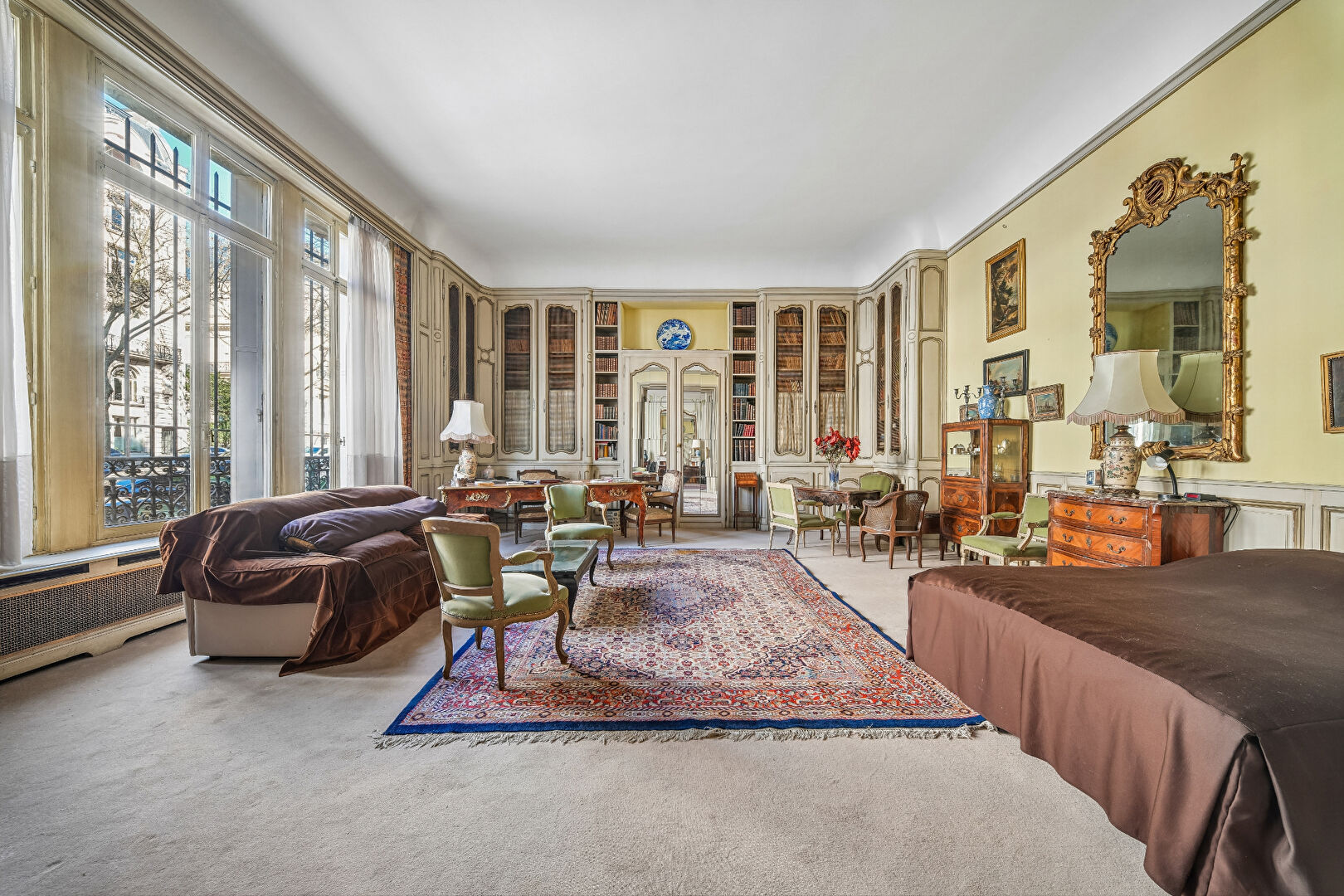 Situé au sein d'un élégant immeuble des années 1940 avec gardien et ascenseur, cet appartement rare développe une surface d'environ 131 m² habitables (115,8 m² loi Carrez) et se distingue par des volumes exceptionnels, sublimés par une hauteur sous plafond d'environ 4,5 mètres. L'appartement s'articule autour d'un spectaculaire séjour de réception de plus de 74 m², offrant une sensation d'espace remarquable. Il comprend également une cuisine indépendante, deux chambres, deux salles d'eau et deux toilettes. Une cave complète ce bien. Adresse recherchée à proximité immédiate de la place d'Iéna, des commerces de l'avenue Kléber et à quelques minutes du Trocadéro. Un appartement aux volumes particulièrement rares dans ce secteur prisé, idéal pour une résidence principale élégante, un pied-à-terre parisien ou un investissement patrimonial de qualité. (5.26 % honoraires TTC à la charge de l'acquéreur.) Copropriété de 29 lots - dont 23 lots habitation.