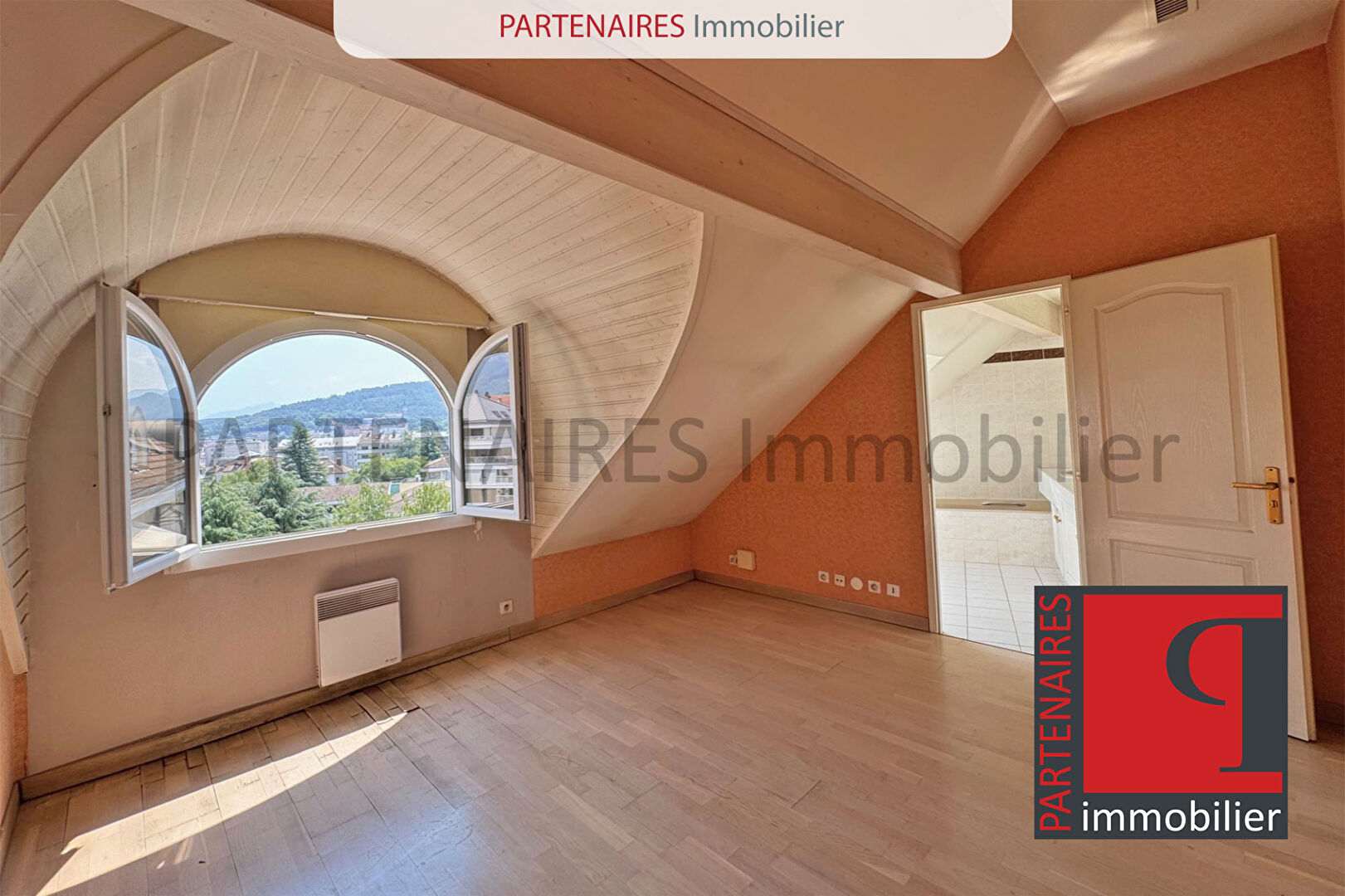 ANNECY. GALBERT/RESIDENCE LE PALLADIO. EXCLUSIVITE. Bel appartement 3 pièces de 88 m² au sol (72.65 m² Carrez) avec LARGE TERRASSE de 37 m² sans AUCUN VIS-A-VIS, niché au 7ème et DERNIER ETAGE de la très recherchée résidence de standing sécurisée avec gardien LE PALLADIO, place des Romains : une belle copropriété soignée, bien entretenue, dotée d'un généreux parc intérieur verdoyant et arboré, sécurisé uniquement accessible aux résidents. Très bien agencé, ce superbe appartement se compose d'une entrée avec placard/dressing, d'un spacieux séjour de 45 m² (36.78 m² Carrez) à double exposition Sud et Ouest ouvert sur une terrasse (37 m²) exposée Ouest avec vue très dégagée, totalement à l'abri des regards, dotée d'un store banne se déployant aux 3/4, et d'une cabane (pour rangement du mobilier de jardin), d'une cuisine américaine aménagée et équipée aux rangements nombreux, d'un espace nuit avec dégagement doté d'un placard/dressing, desservant 2 chambres (de 10 m² - dont une avec placard), chacune bénéficiant de sa salle de bains avec sèche serviettes, et d'un WC indépendant avec lave-mains. Grenier non privatif (droit de jouissance). Une cave électrifiée (2.23 m²). Grand box électrifié de 22.55 m² à porte basculante manuelle au 1er sous-sol, directement accessible par ascenseur. Installation de bornes individuelles pour véhicules électriques votée en AG 2024. Un grand local vélo. Double-vitrage partout, volets électriques, chauffage collectif électrique par plancher rayonnant inclus dans les charges (appoint possible par convecteurs électriques - jamais utilisés). Eau chaude individuelle. Faibles charges de copropriété (170 euros/mois). EMPLACEMENT IDEAL, en plein centre-ville, vous bénéficierez : du marché de la Place des Romains tout en étant au CALME, du centre commercial COURIER, et du cinéma, de la gare, de tous commerces et restaurants dans un rayon de 5 mn à pied... et du Paquier/Lac et de la piscine/patinoire à 10 mn à pied). Arrêt de bus (lignes 5, 10) station VELONECY au pied de l'immeuble ! COUP DE COEUR pour le potentiel de cet appartement RARE A LA VENTE, TRES LUMINEUX à rénover à votre goût pour en faire votre NID PAISIBLE à la cime des arbres, et profiter d'une vaste TERRASSE/SOLARIUM abritée des regards en plein coeur d'Annecy ! A visiter très rapidement ! Visite immersive 360° dans l'annonce. Contact : Corinne Poilleux - Tel : 0609676367 (EI - RSAC : 803 823 608 Versailles). (1.56 % honoraires TTC à la charge de l'acquéreur.) Copropriété de 542 lots - dont 157 lots habitation. Charges annuelles : 2000 euros. Corinne Poilleux (EI) Agent Commercial - Numéro RSAC : 803823608 - Versailles.