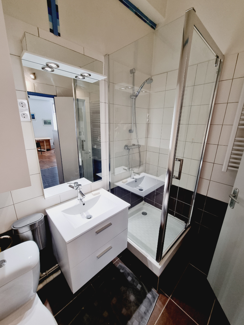 DIJON COEUR DE VILLE AU 1er étage d'un petit immeuble bien tenu, très agréable T2/3 meublé proposant une belle pièce de vie avec cheminée , expo plein SUD, une cuisine équipée ouverte , une chambre séparée, + une autre chambre séparée, une salle d'eau avec wc. Beaux parquets , belle hauteur sous plafond, un vrai bel appart ancien équipée et meublé !! Loyer 743 euros dont 55 euros de charges. DPE /E. Hono agence 550 euros . AGENCE CADR'IMMO 03.80.54.23.10