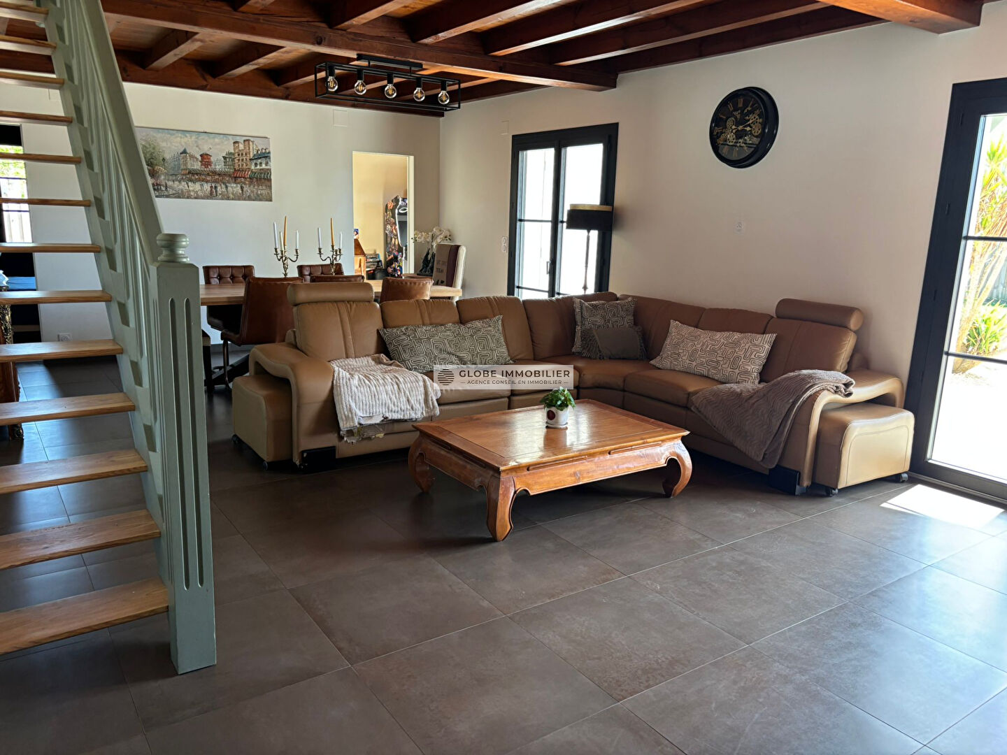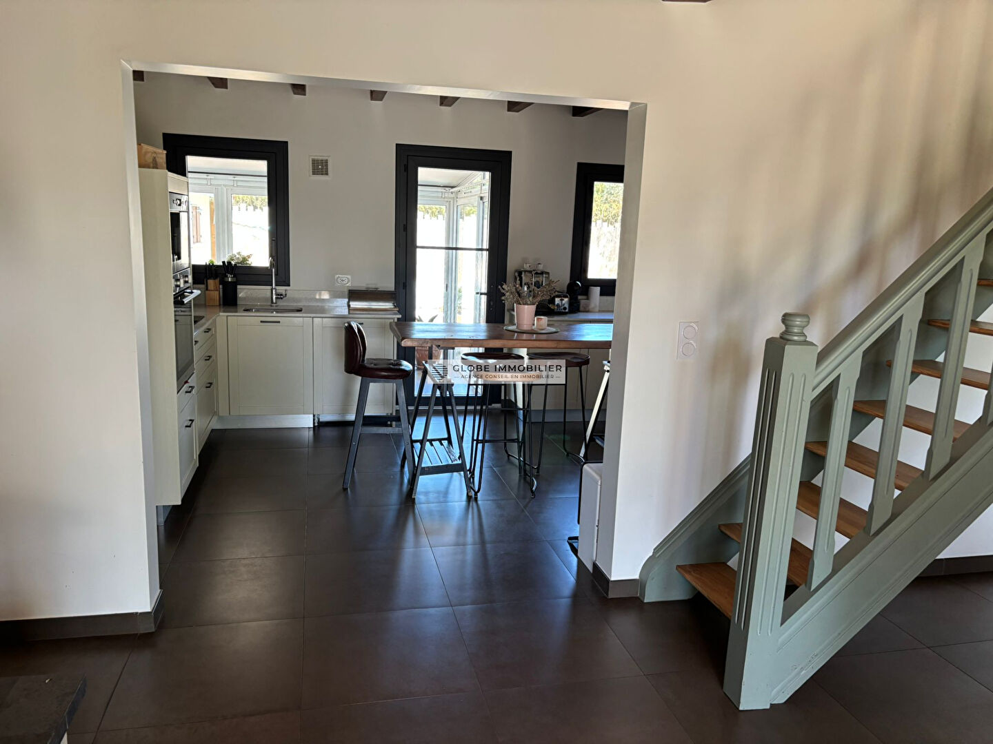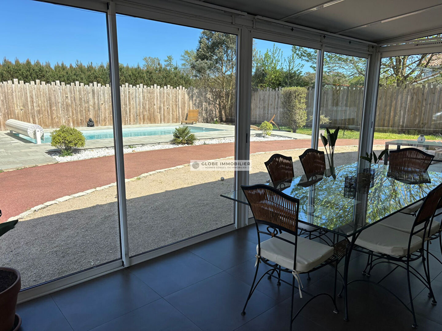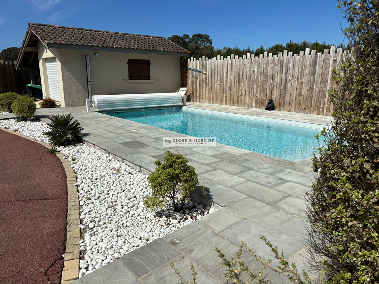 A deux pas de Soustons et au calme, maison familiale de 188 m² , entièrement rénovée entre 2021 et 2023 sur une parcelle de 1500 m2 de terrain sans vis-à-vis. Grande pièce de vie avec insert et terrasse orientée Sud, cuisine équipée semi-ouverte donnant sur véranda isolée et grande terrasse ombragée, trois chambres, salle d'eau, cellier, buanderie, garage isolé et carrelé. A l'étage : trois grandes chambres climatisées, balcon, salle d'eau. Jardin paysager, dépendance de 20 m2 prolongée par un abri, piscine chauffée, douche extérieure, grande terrasse en pierre d'Inde. Portail électrique, panneaux photovoltaïques avec contrat de revente, forage. Mme Caroline GIRET (E.I) 06 74 92 21 76 (4.39 % honoraires TTC à la charge de l'acquéreur.)